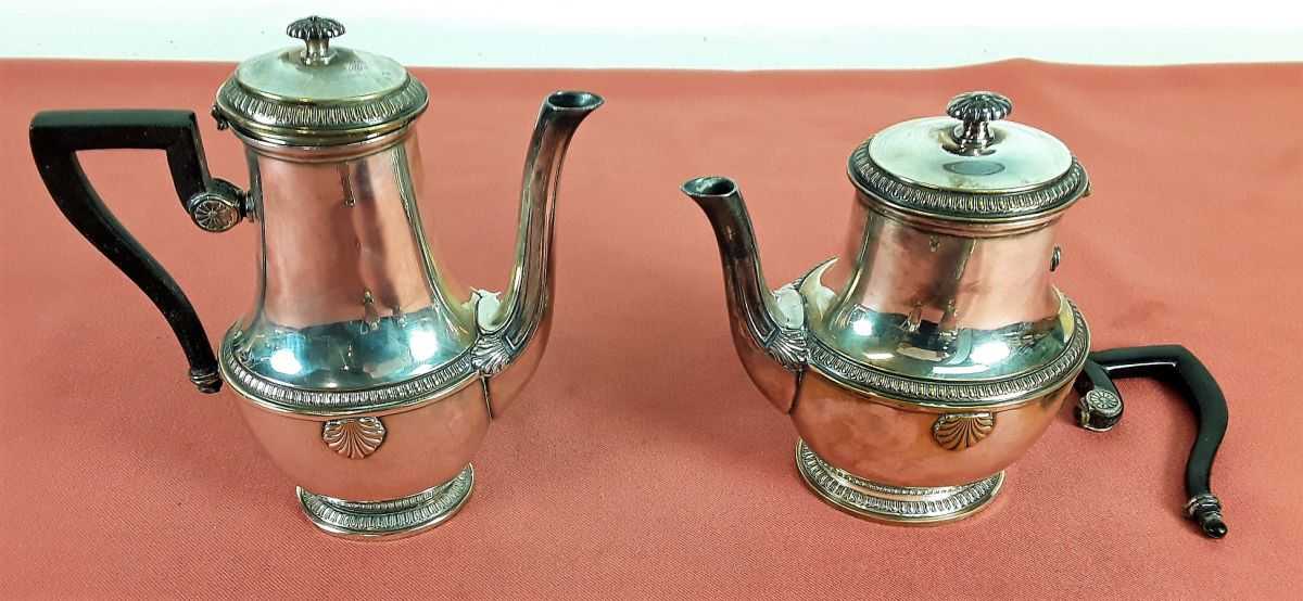 JUEGO DE CAFÉ. METAL PLATEADO. ESPAÑA. CIRCA 1950. ESTADO, NECESITA RESTAURACIÓN EL MANGO DE LA CAFETERA GRANDE Y LAS 2 BISAGRAS DE LAS TAPAS. MEDIDAS DE LA CAFETERA GRANDE: 21 X 10 X 24 CM. MEDIDAS DE LA CAFETERA MEDIANA: 24 X 10 X 20,5 CM.. MEDIDAS DE LA LECHERA: 12 X 7 X 10,5 CM. MEDIDAS DEL AZUCARERO: 15 X 10 X 15 CM. VER IMÁGENES PARA COMPROBAR ESTADO REAL. LAS IMÁGENES FORMAN PARTE DE LA DESCRIPCIÓN.