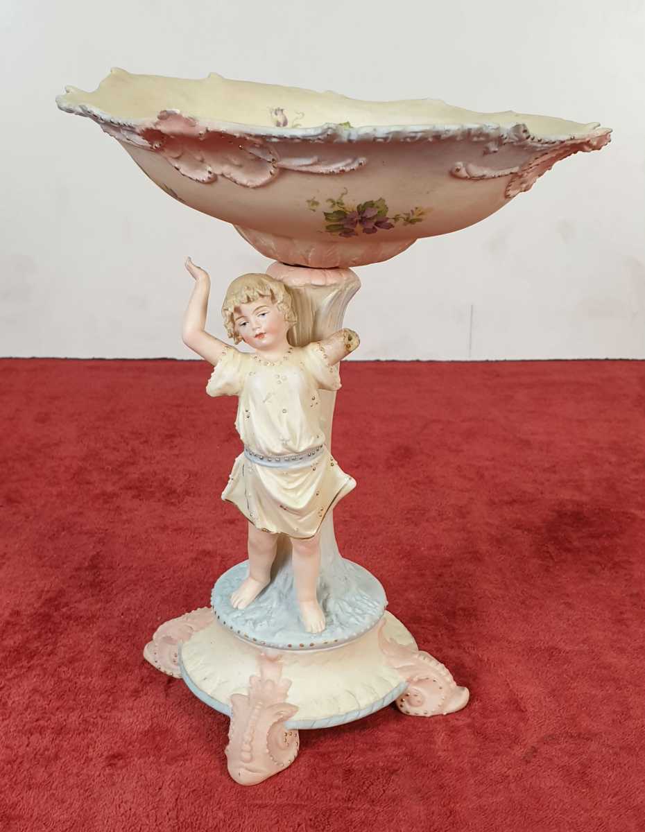 CENTRO DE MESA EN PORCELANA. BISCUIT. DECORADO A MANO. ALEMANIA. SIGLO XX. DECORADO CON MOTIVOS FLORALES. EL CENTRO DE MESA NECESITA RESTAURACIÓN. PRESENTA ROTURA DEL BRAZO IZQUIERDO DEL NIÑO. SE INCLUYE PIEZA DEL BRAZO PARA SU RESTAURACION. EN LAS IMAGENES SE PUEDEN APRECIAR LOS DETALLES.