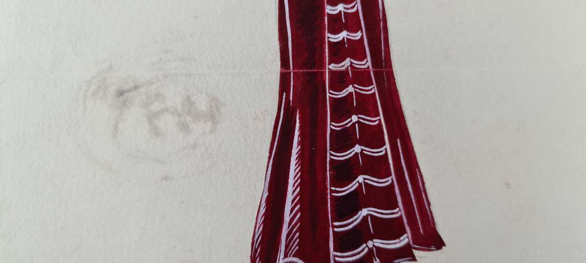 VESTIDO DE MODA. IGNACIO GIL SALA. DIBUJO A TINTA SOBRE PAPEL. SIGLO XX. IGNACIO GIL SALA, PINTOR Y DIBUJANTE ESPAÑOL NACIDO EN BARCELONA EN 1913 Y FALLECIDO EN 2003. FORMADO EN LA ESCUELA DE BELLAS ARTES DE LA LLOTJA DE BARCELONA. EN EL REVERSO SE PUEDEN APRECIAR BOCETOS DEL MISMO AUTOR. EN LAS IMAGENES SE PUEDEN APRECIAR LOS DETALLES.