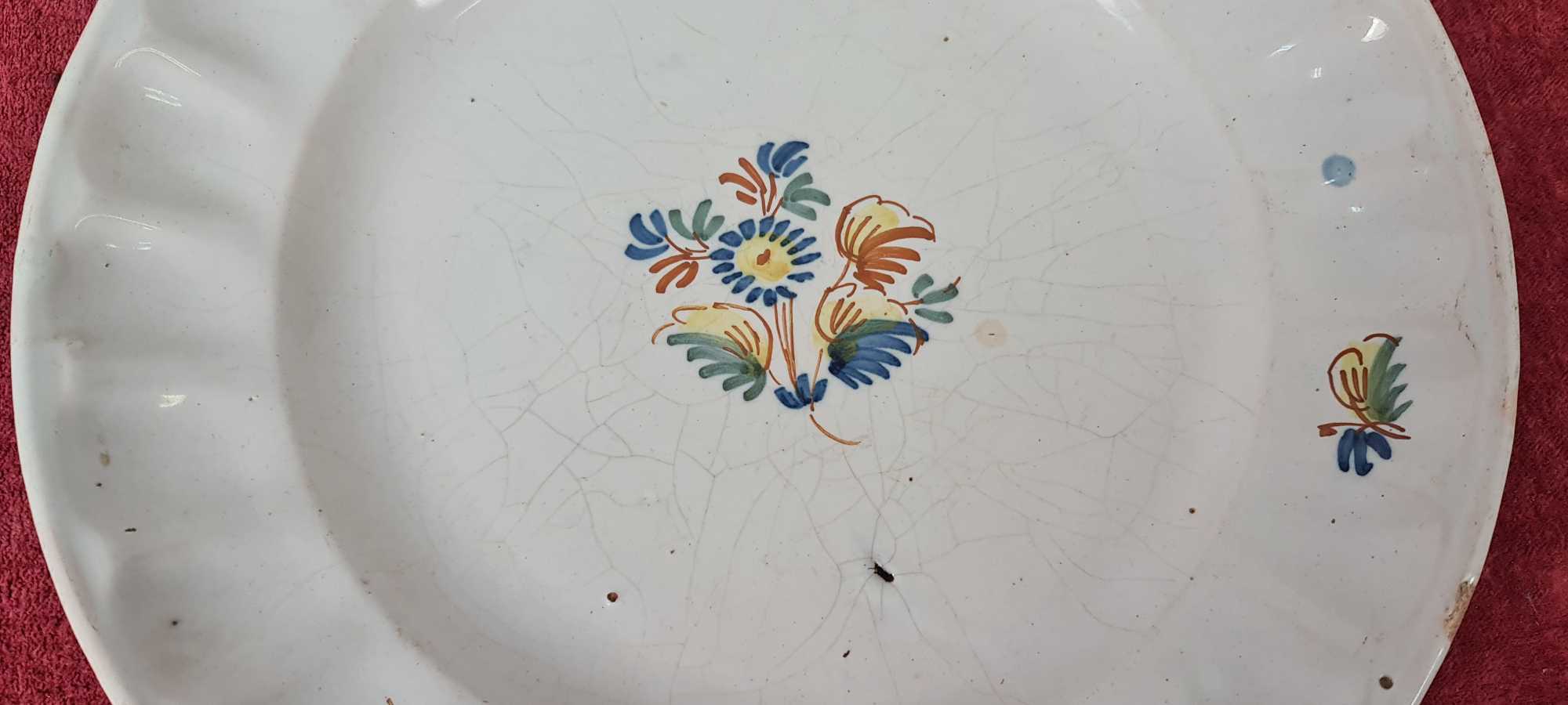 PLATO DE ALCORA. ESTILO POPULAR. SERIE CACHARRERO. 3ª ÉPOCA. ESPAÑA. XVIII-XIX PLATOS EN CERÁMICA ESMALADA. DECORADA A MANO CON MOTIVOS FLORALES. SERIE CACHARRERO. ESTA SERIE SE CARACTERIZA POR SU DECORACION CON RAMILLETES DE FRUTOS, HIGOS Y PERAS EN RAMILLETE, CON HOJAS PEQUEÑAS Y COLORES MUY SENCILLOS. PRESENTA VARIAS FALTAS EN ESMALTE SIN AFECTAR A LA POLICROMIA. EN LAS IMAGENES SE PUEDEN APRECIAR LOS DETALLES.
