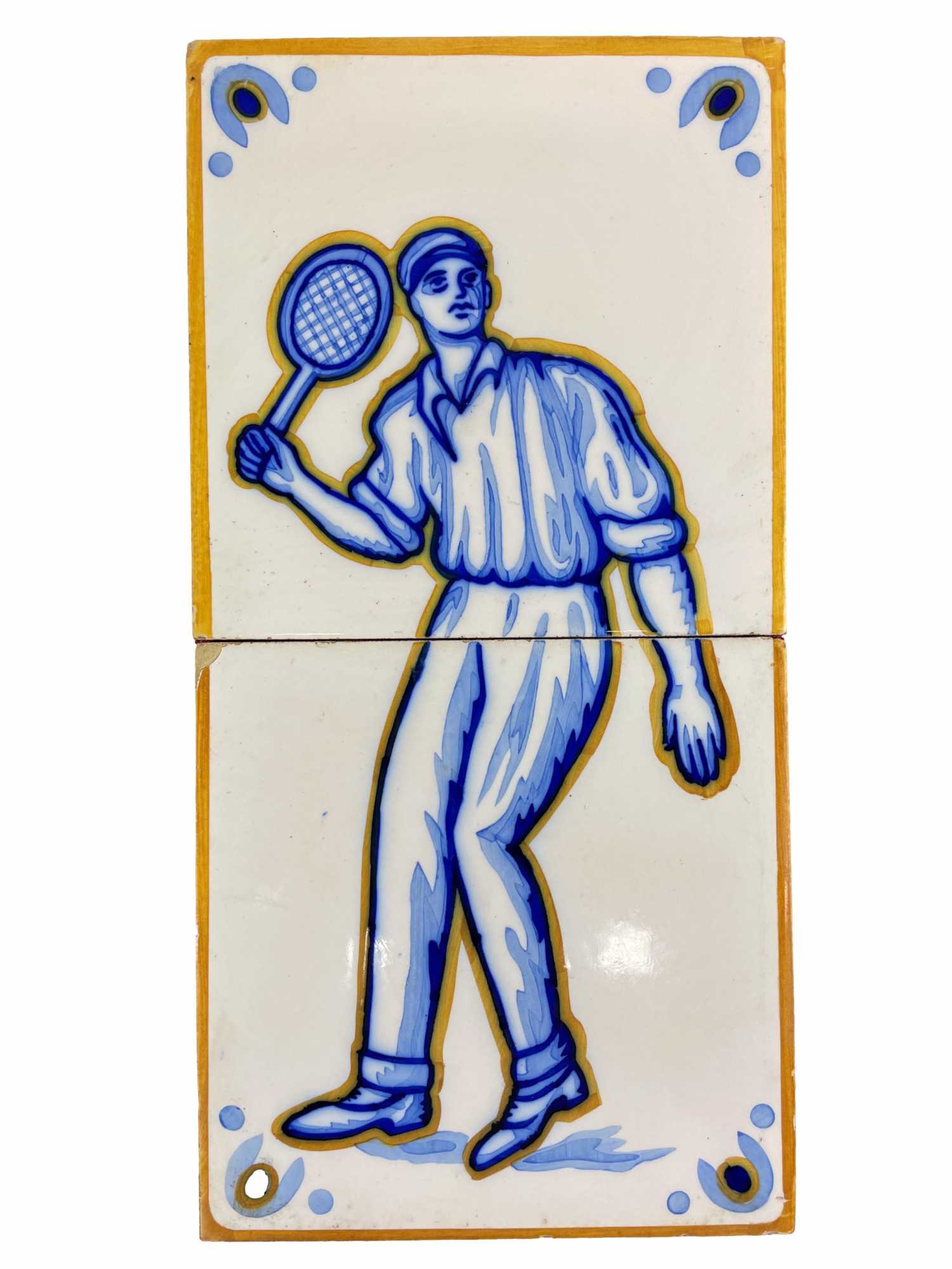 PAR DE AZULEJOS. JUGADOR DE BATMINTON. MODERNISTA. PINTADO A MANO. CIRCA 1920S