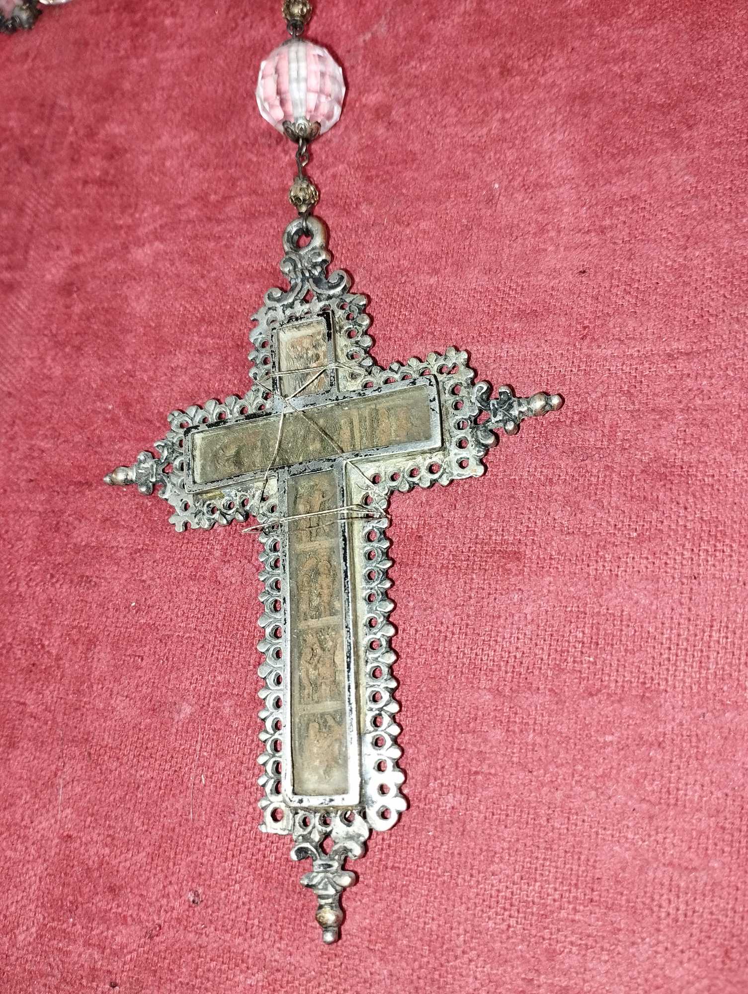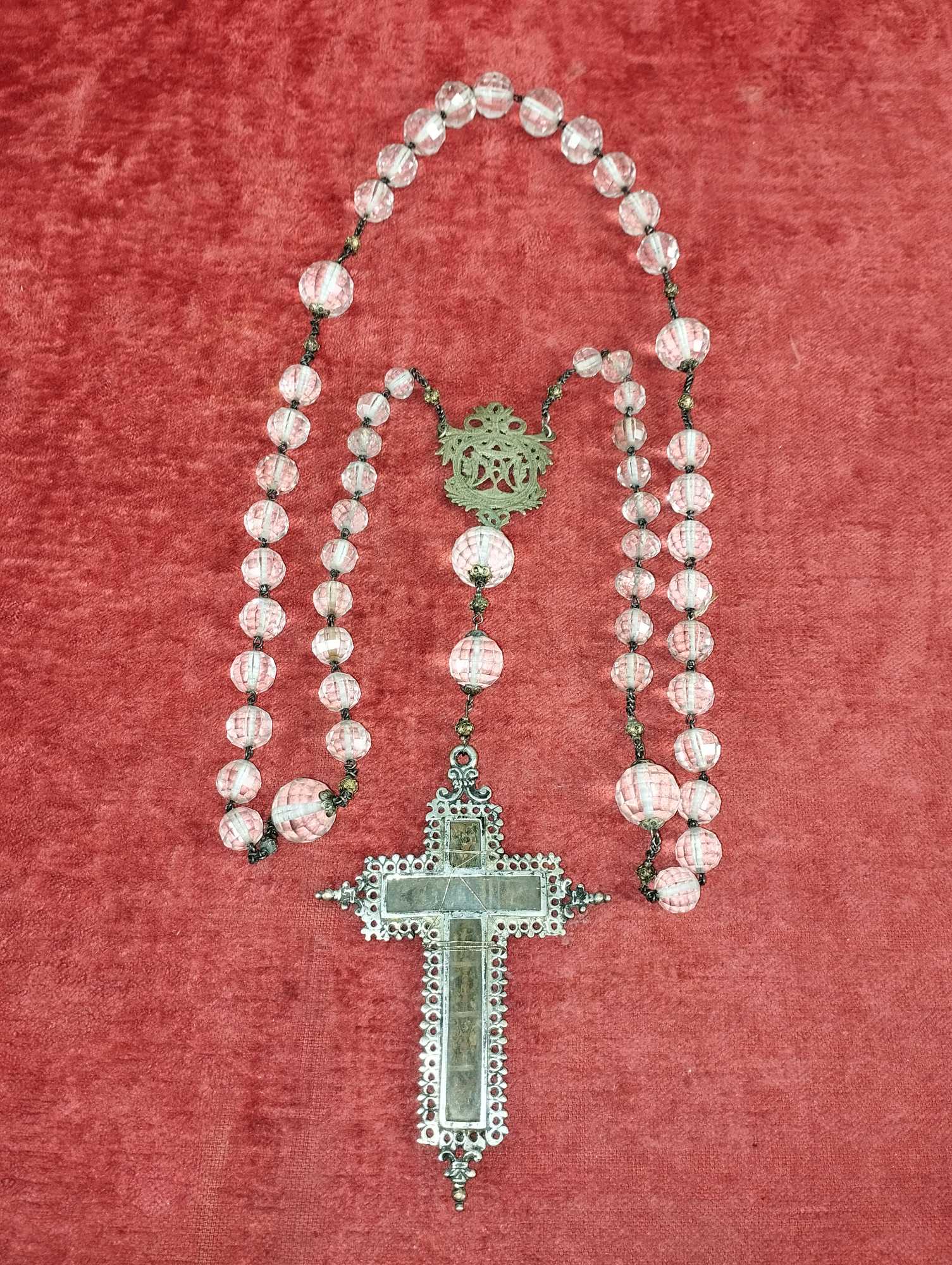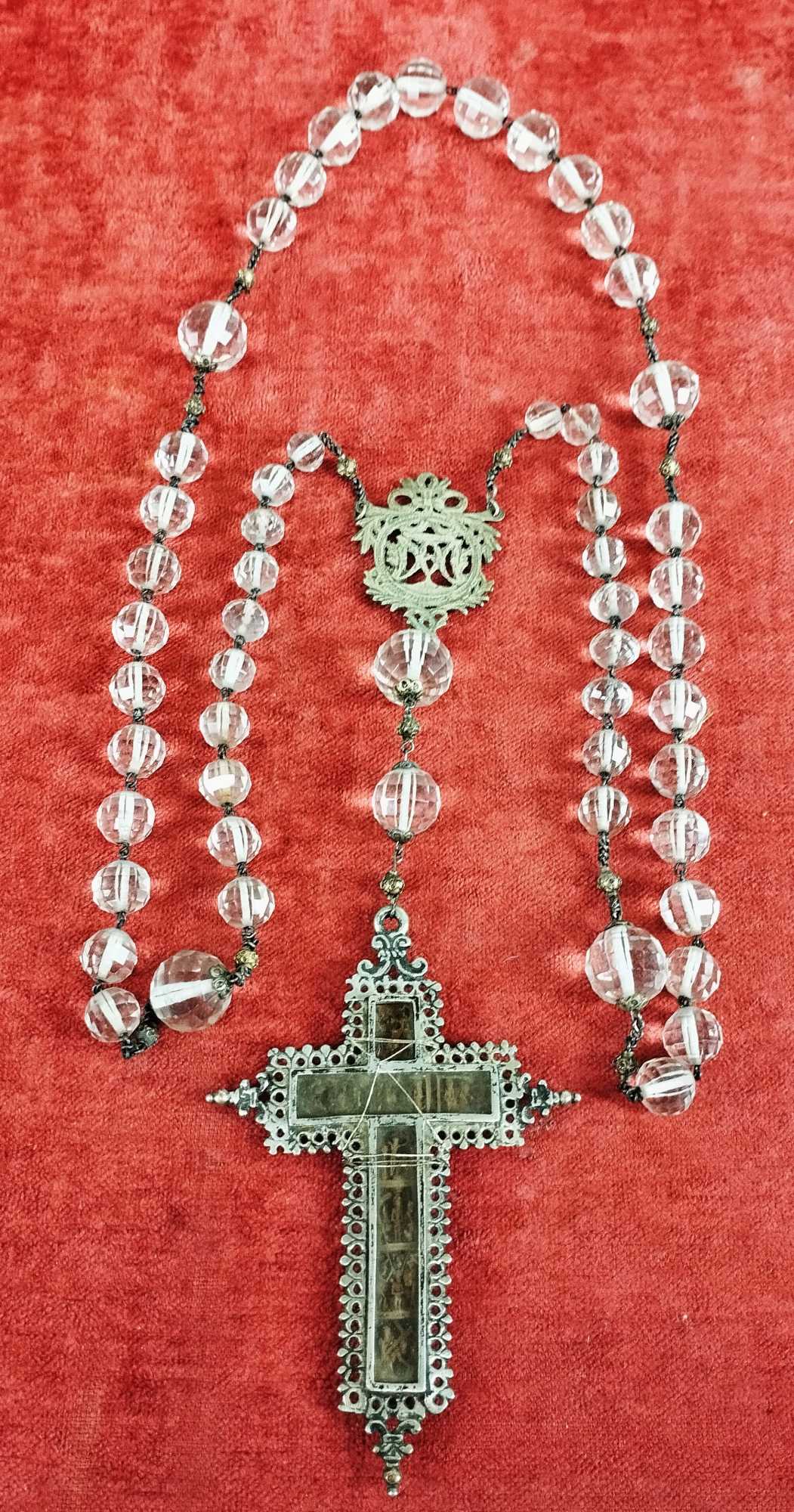 EXCEPCIONAL ROSARIO EN PLATA Y CRISTAL. CRUZ CON VIA CRUCIS. ESPAÑA XVII-XVIII