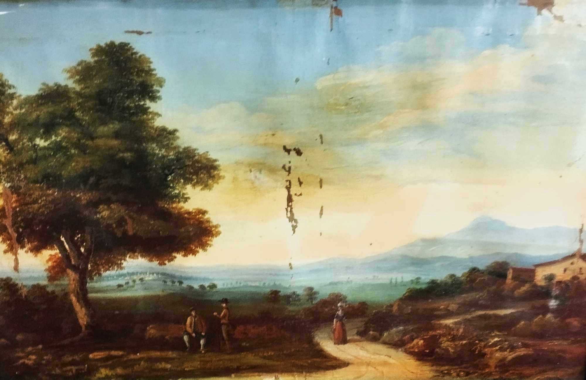 VIAJEROS EN EL CAMPO. ANÓNIMO. ÓLEO SOBRE LIENZO. ESPAÑA. SIGLO XVIII-XIX