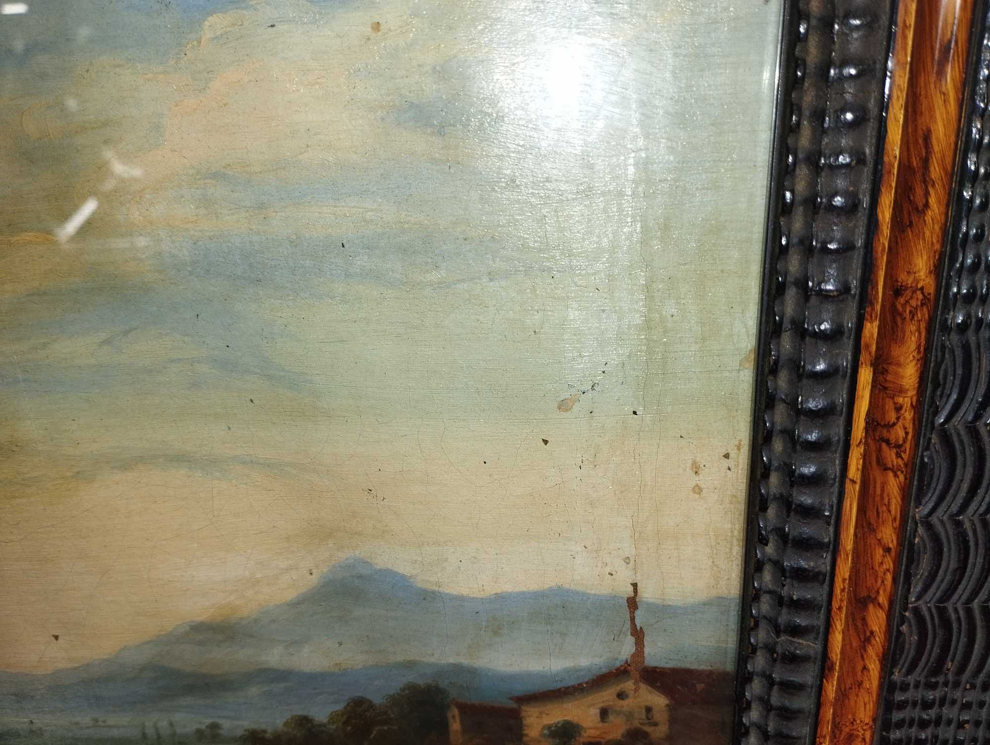 MEDIDAS APROX. CM. EXTERIOR MARCO: 55X41 SÓLO PINTURA: 42X28 PINTURA CON RALLADOS Y EROSIONES. ALGUNAS PÉRDIDAS. VER LAS IMÁGENES. ALGUNAS ROTURAS Y RESTAURACIONES EN EL LIENZO. LIENZO CON ONDULACIONES. MARCO MODERNO. CON RALLADOS Y DESPERFECTOS.