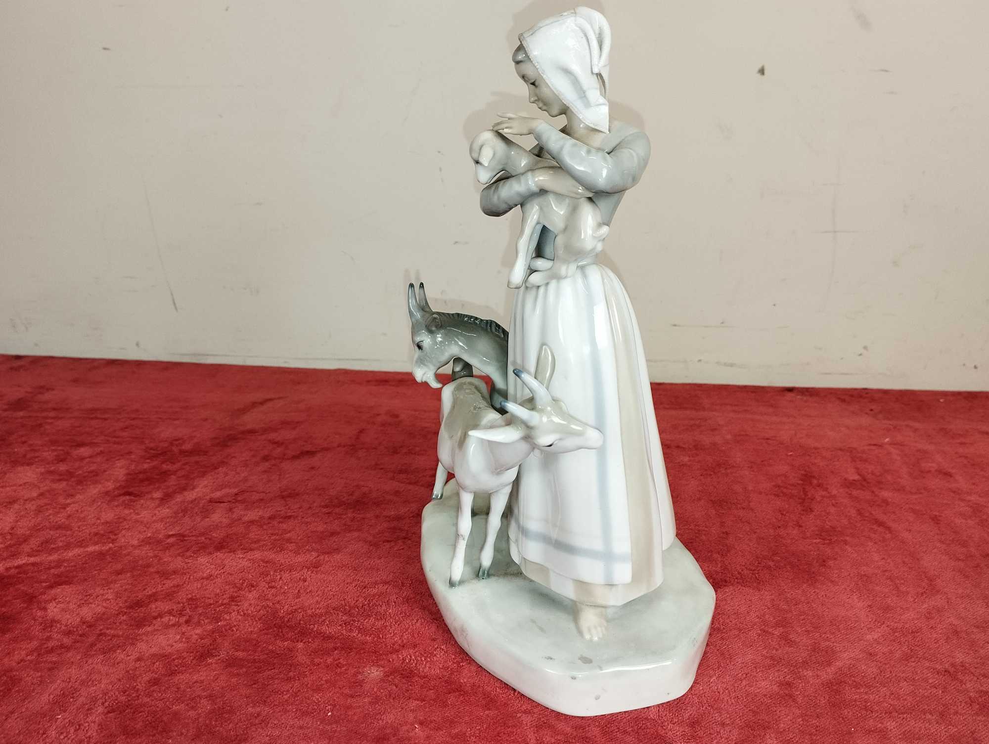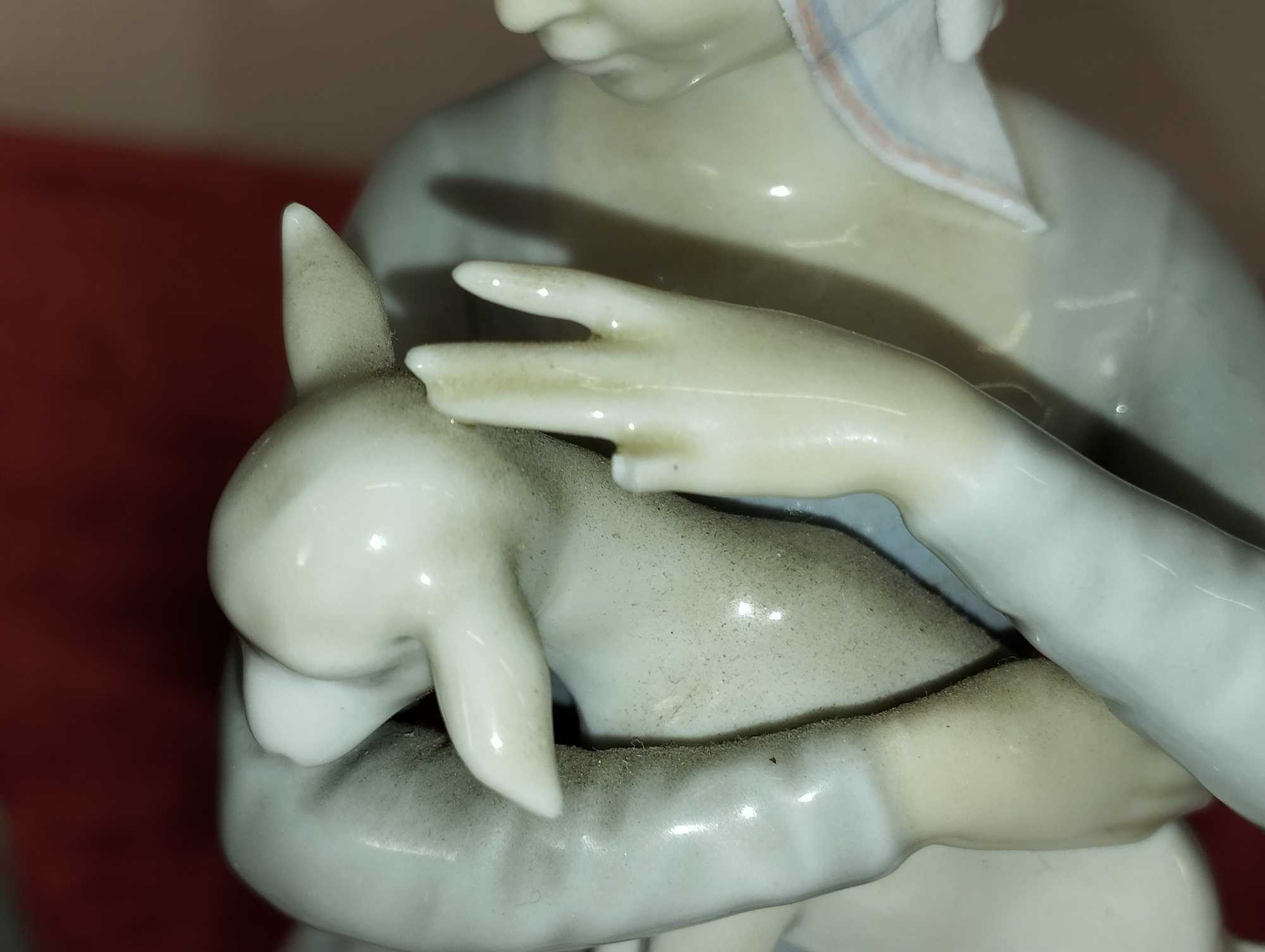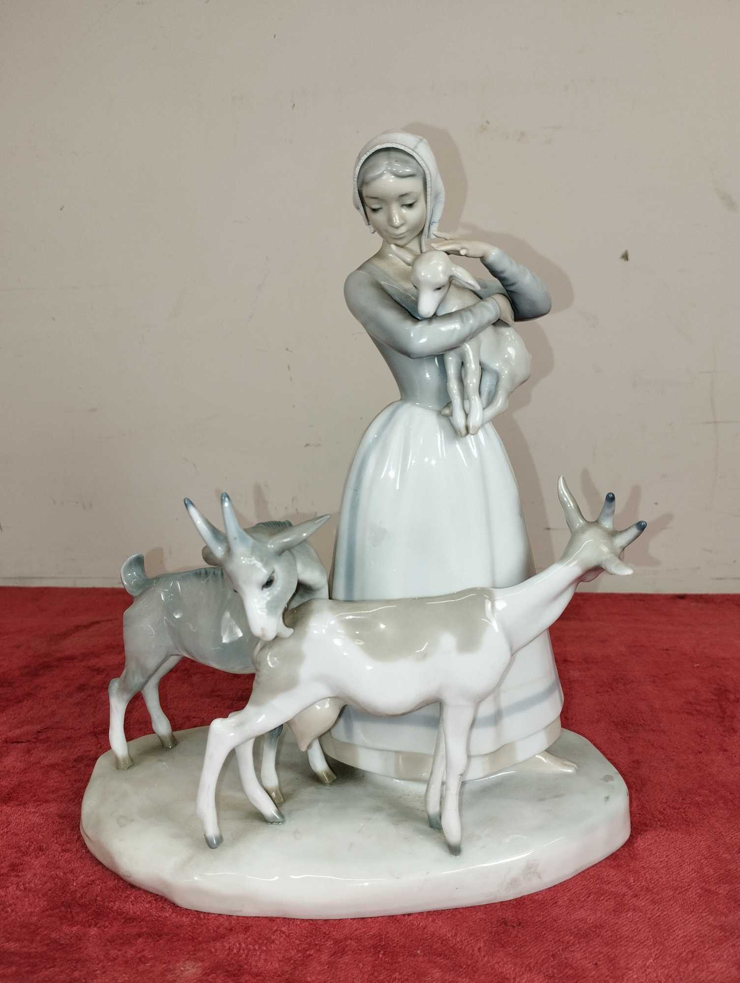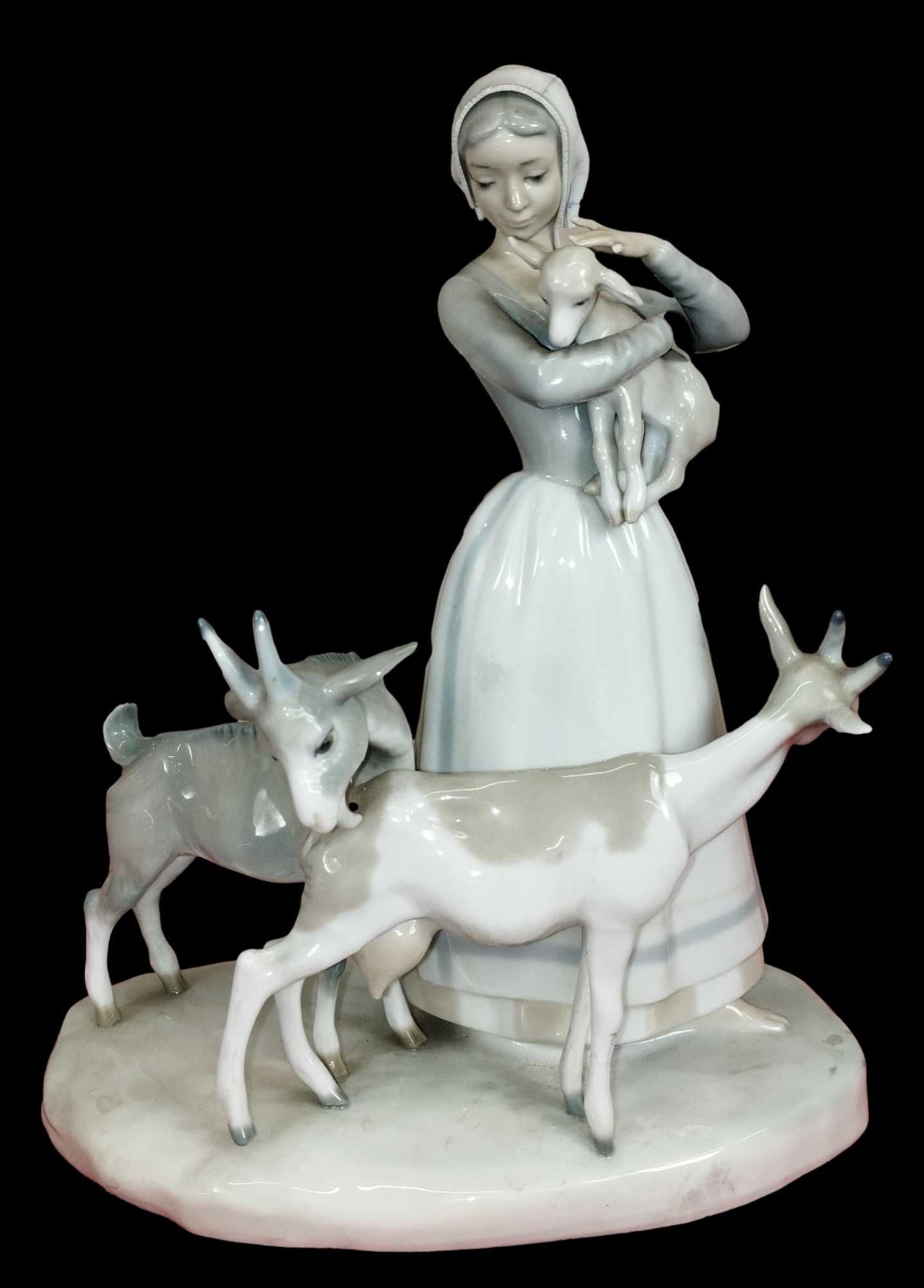 CHICA Y CABRAS. PORCELANA ESMALTADA. LLADRÓ. ESPAÑA. SIGLO XX