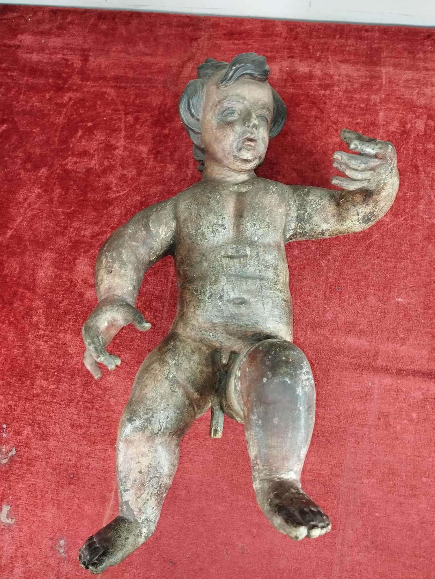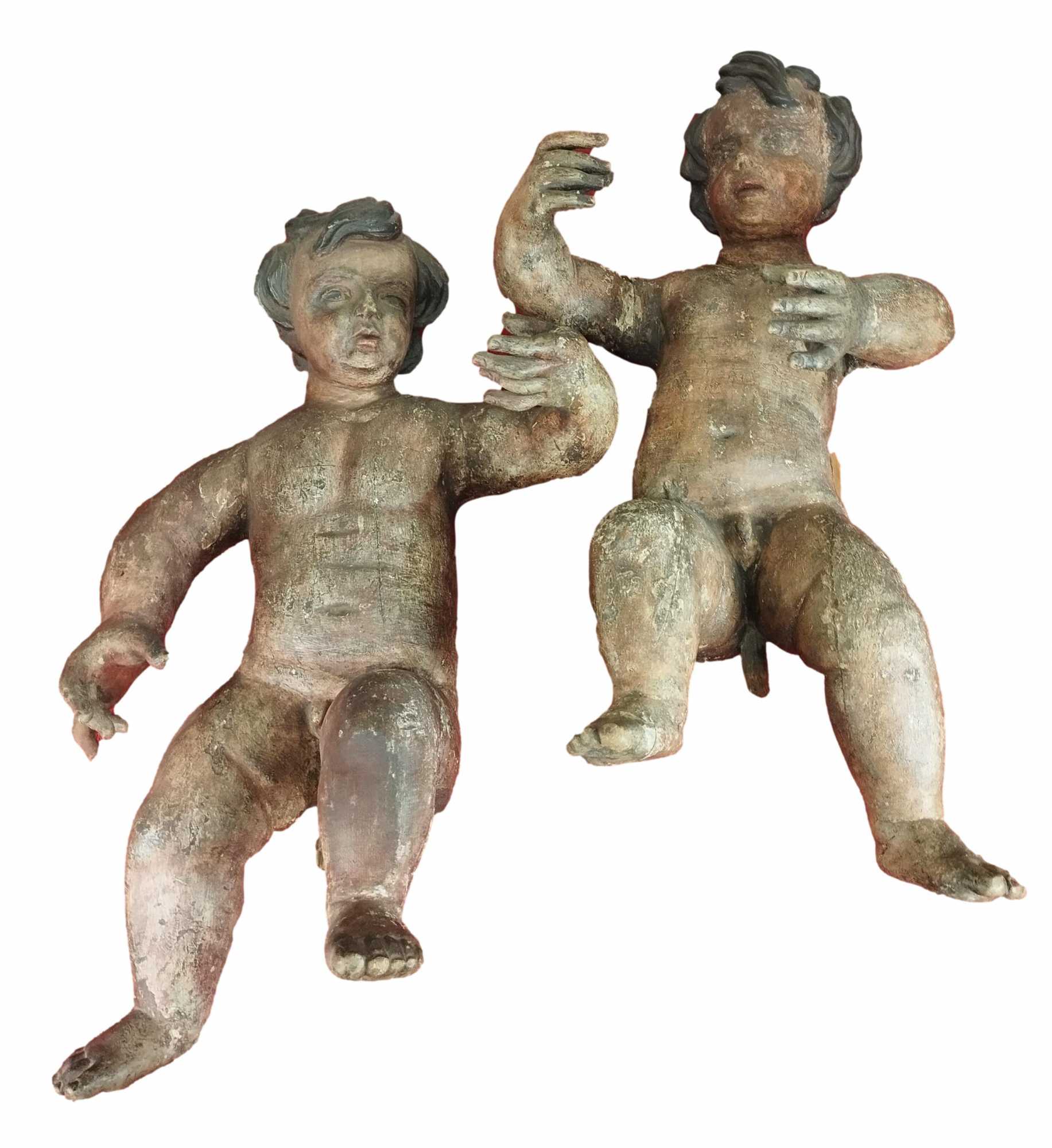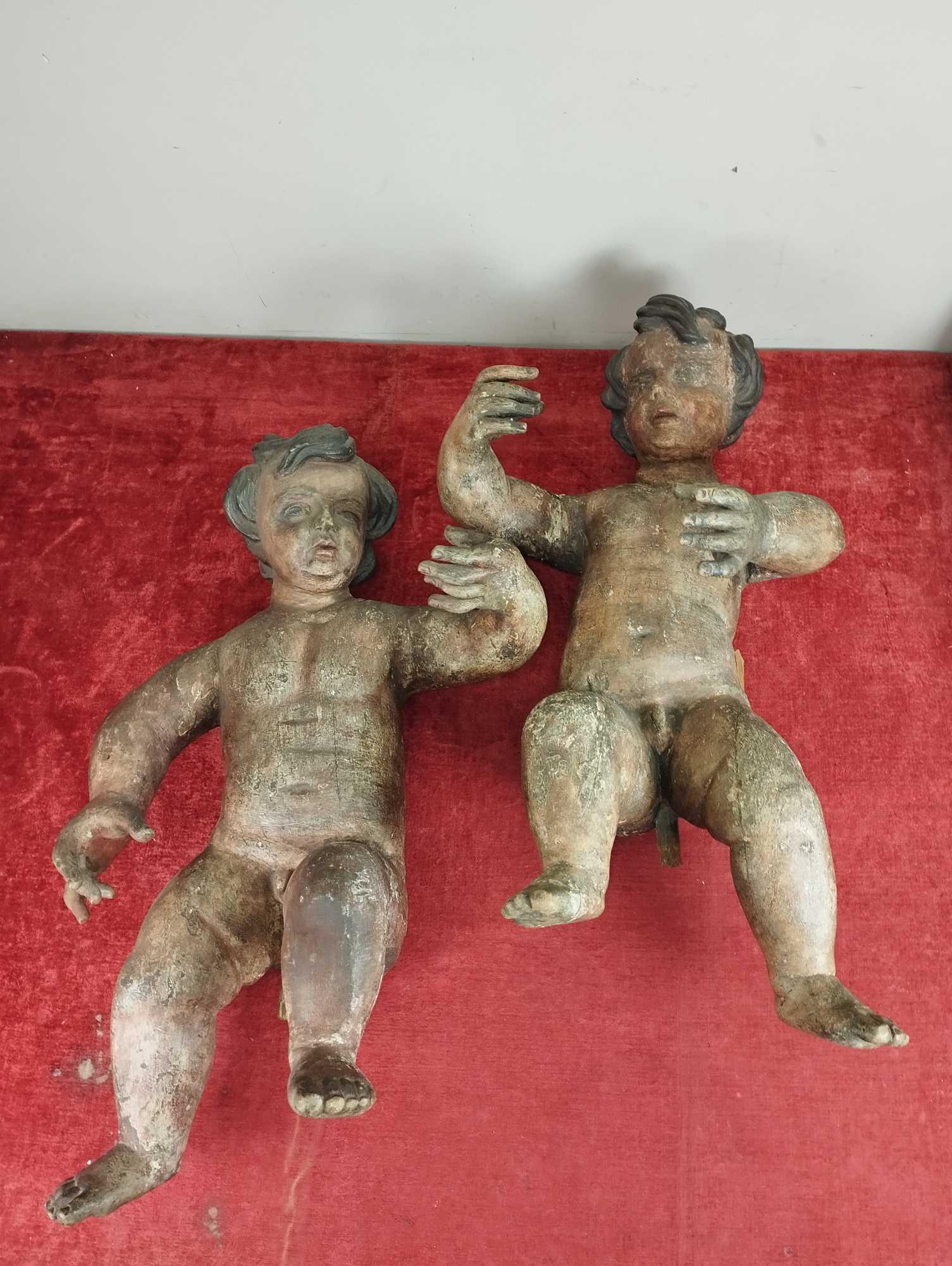 PAREJA DE ANGELOTES. MADERA TALLADA Y POLICROMADA. ESPAÑA. SIGLO XVIII-XIX