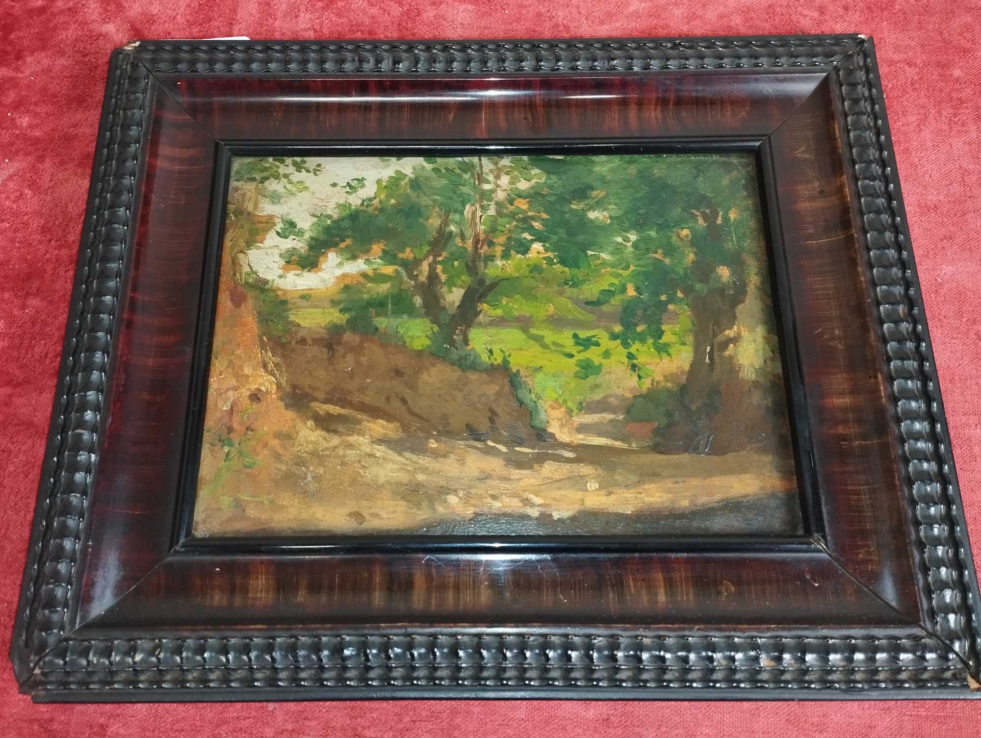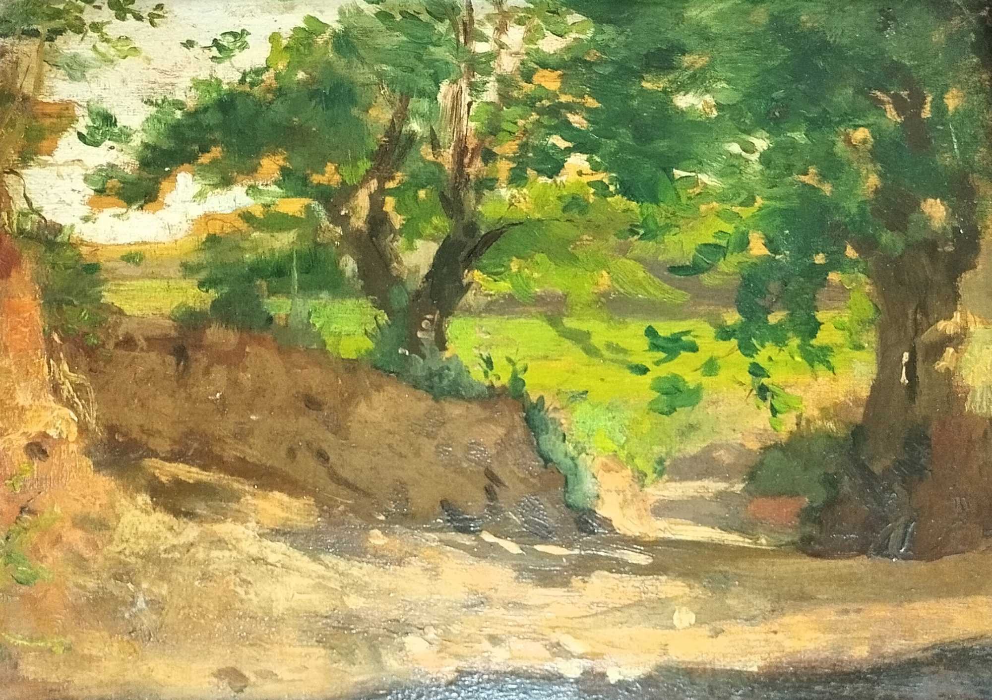 CLARO EN EL BOSQUE. FIRMADO BUXO (?). ÓLEO SOBRE CARTÓN. ESPAÑA. SIGLO XIX(?)