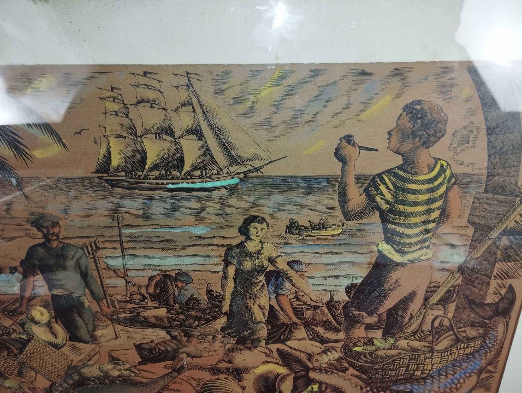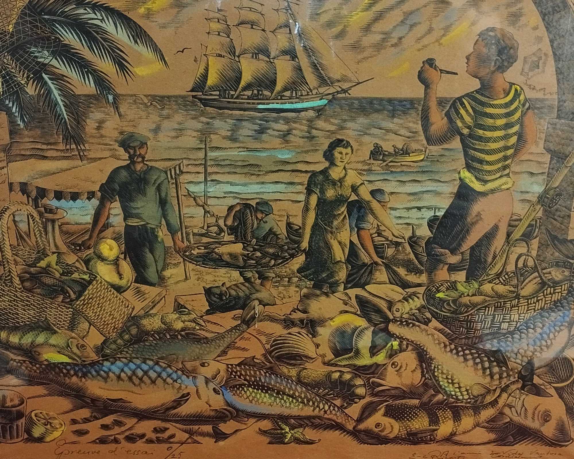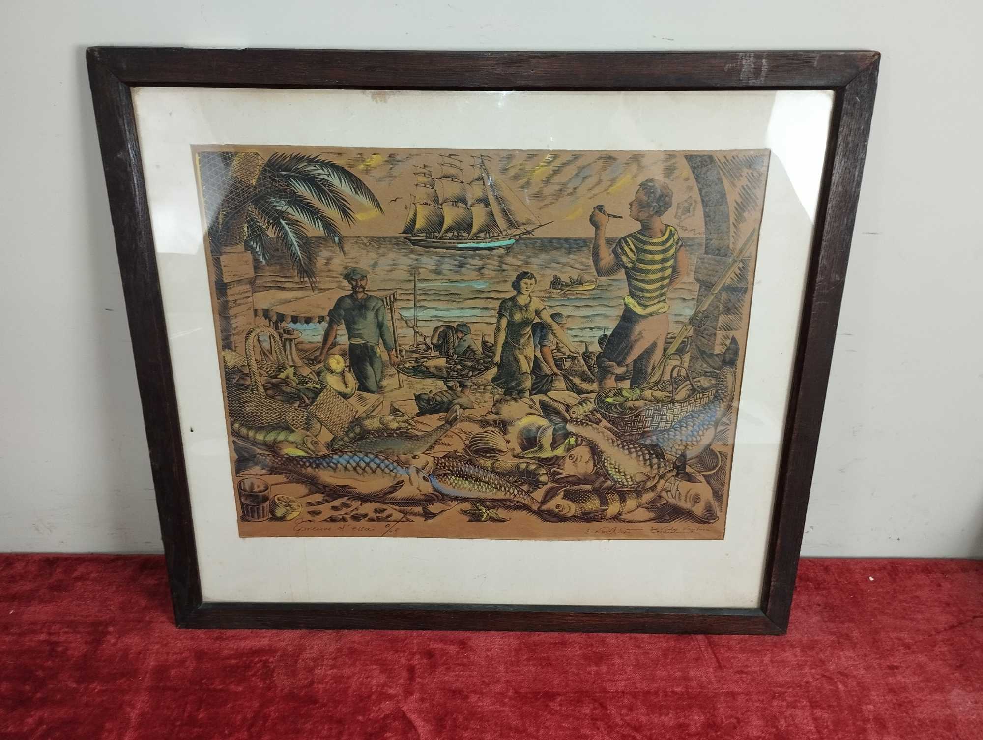 MEDIDAS APROX. CM.: EXT MARCO: 52X47 SÓLO AGUAFUERTE: 31X40 PAPEL AMARILLEADO. SIN FALTAS. CON FIRMA Y DEDICATORIA AUTÓGRAFAS. EJEMPLAR EPREUVE ESSAI NUMERADO A MANO 0-25 MARCO CON EROSIONES GENERALES Bio: ENRIC CRISTÒFOR RICART I NIN (VILLANOVA I GELTRÚ, CATALUÑA, ESPAÑA; 1 DE NOVIEMBRE DE 1893 – 11 DE MARZO DE 1960) FUE UN GRABADOR Y PINTOR ESPAÑOL. A LA EDAD DE ONCE AÑOS, SU PADRE LO INSCRIBIÓ EN LA ESCUELA DE ARTE DE FRANCESC D’ASSÍS GALÍ. EN 1914, JUNTAMENTE CON EL PINTOR VILANOVENSE RAFAEL SALA, REALIZÓ UNA ESTANCIA DE SEIS MESES EN FLORENCIA. AL REGRESAR, COMPLETÓ SU FORMACIÓN EN LA ESCUELA DE ARTES Y OFICIOS. DURANTE LA PRIMERA GUERRA MUNDIAL, BARCELONA ACOGIÓ A ARTISTAS EXTRANJEROS QUE HUÍAN DEL CONFLICTO Y SE ORGANIZARON DIFERENTES ACTIVIDADES ARTÍSTICAS Y LITERARIAS QUE PERMITIERON A RICART ESTAR EN CONTACTO CON LAS VANGUARDIAS. EN EL INVIERNO DE 1920, RICART VIAJÓ A PARÍS, DONDE CONVIVIÓ CON LOS ARTISTAS CATALANES QUE RESIDÍAN EN LA CAPITAL FRANCESA. EN 1926, SE ESTABLECIÓ DEFINITIVAMENTE EN VILANOVA, DONDE INICIÓ UNA ESTRECHA AMISTAD CON JOAQUÍN MIR.