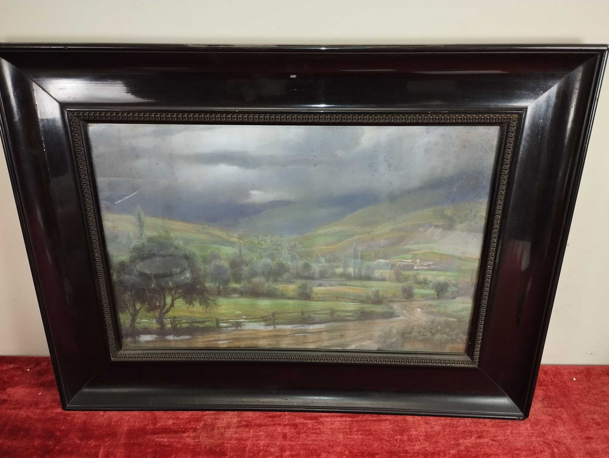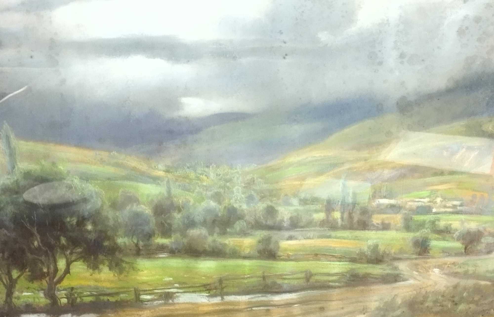 MEDIDAS APROX. CM.: EXT. MARCO: 48X63 SÓLO PINTURA: 31X47 PAPEL SIN ROTURAS. CON MANCHAS DE HUMEDAD. FIRMA AUTÓGRAFA. MARCO CON RALLADOS Y EROSIONES.