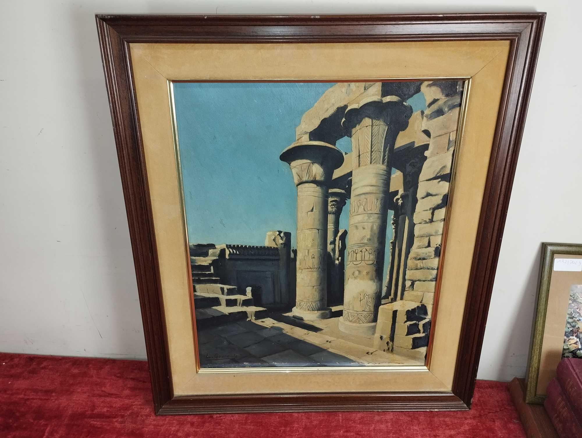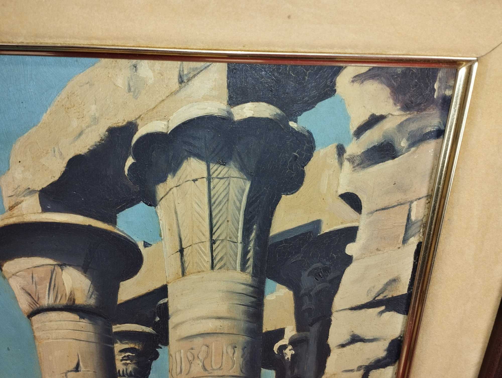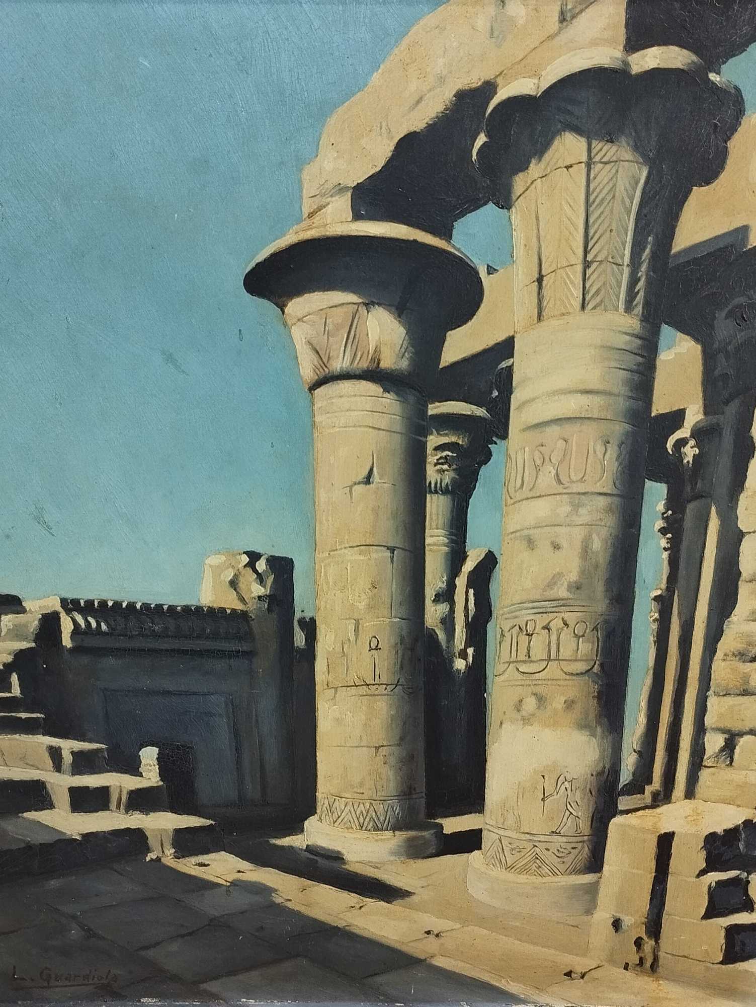 EL TEMPLO DE KOM OMBO, FIRMADO L. GUARDIOLA. ÓLEO SOBRE TABLEX. ESPAÑA. SIGLO XX