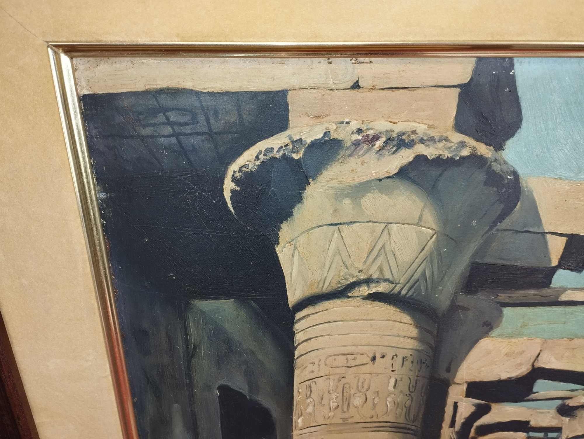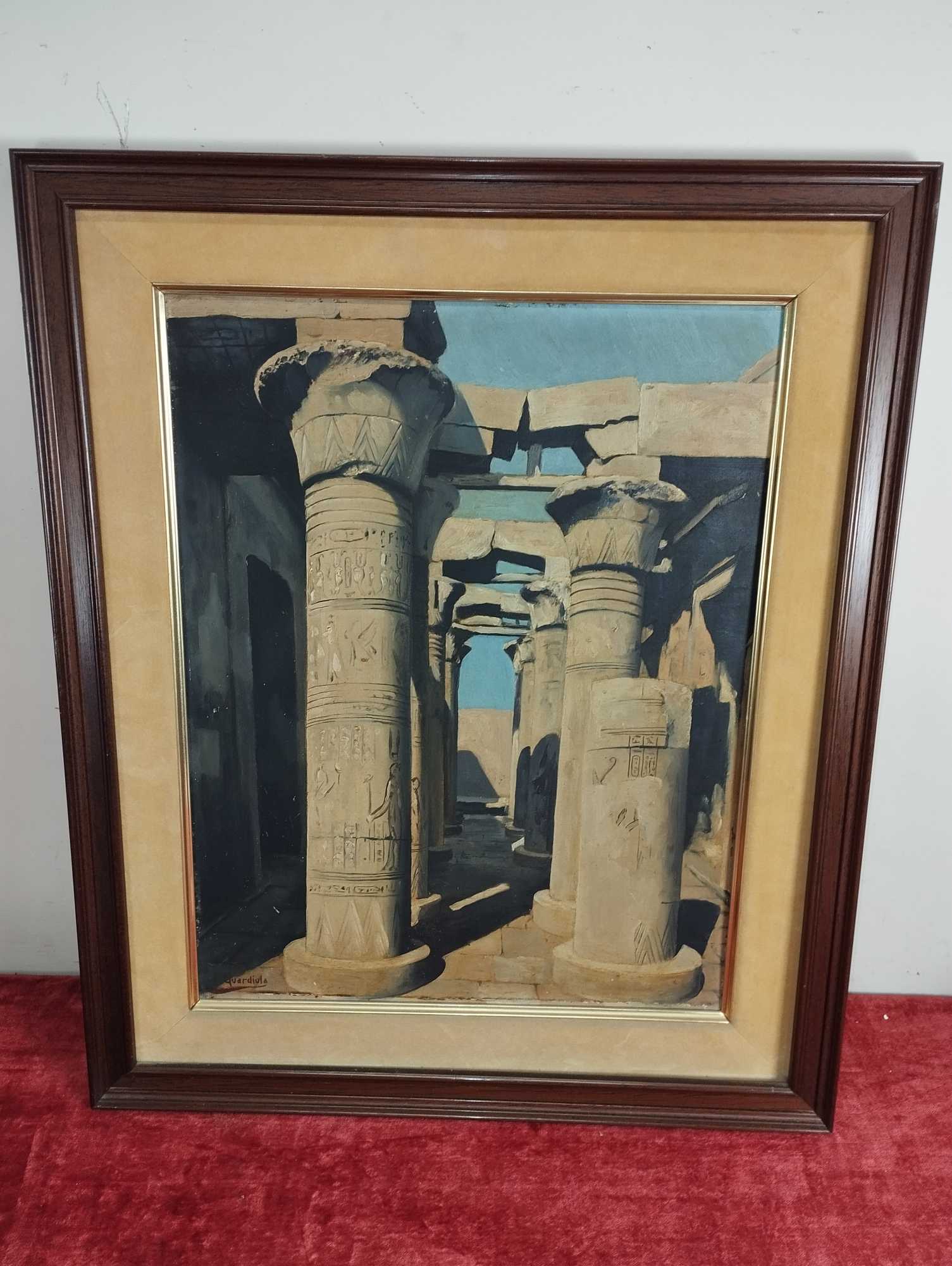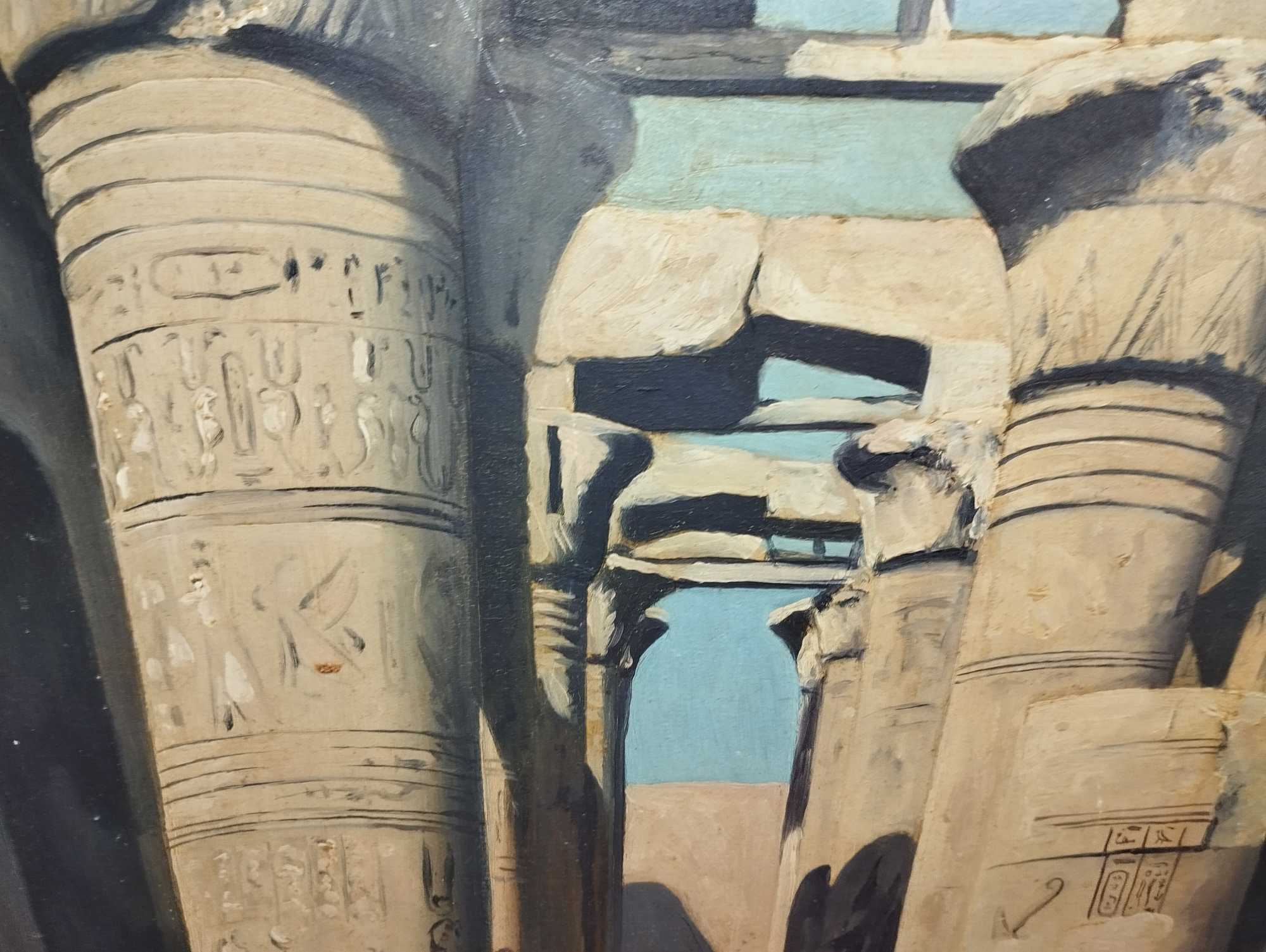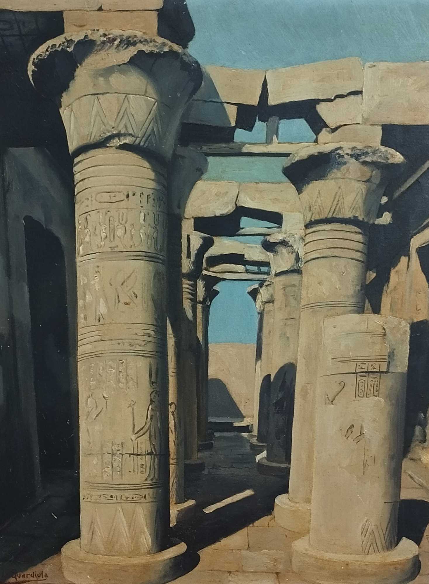 EL TEMPLO DE KOM OMBO. FIRMADO L. GUARDIOLA. ÓLEO SOBRE TABLEX. ESPAÑA. SIGLO XX