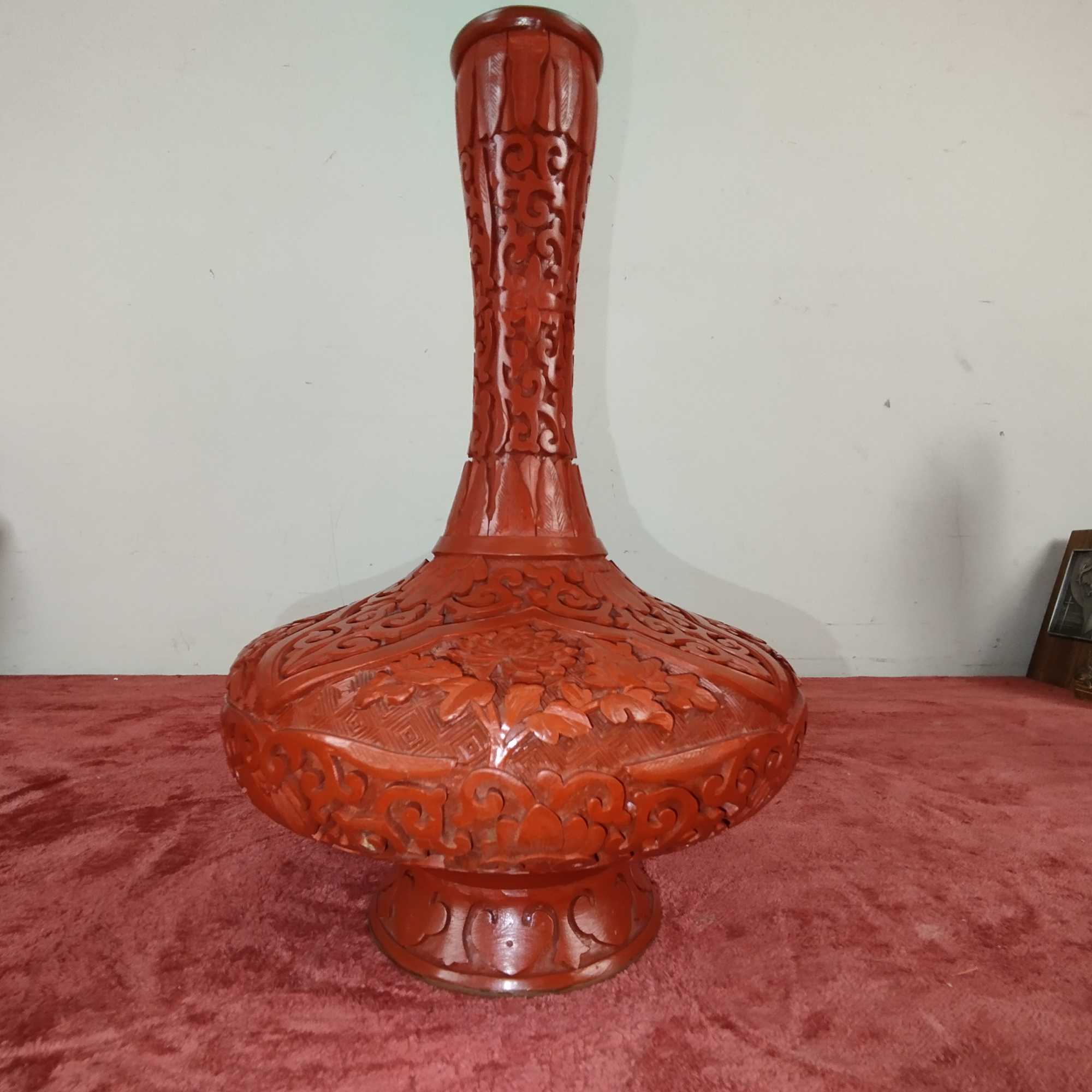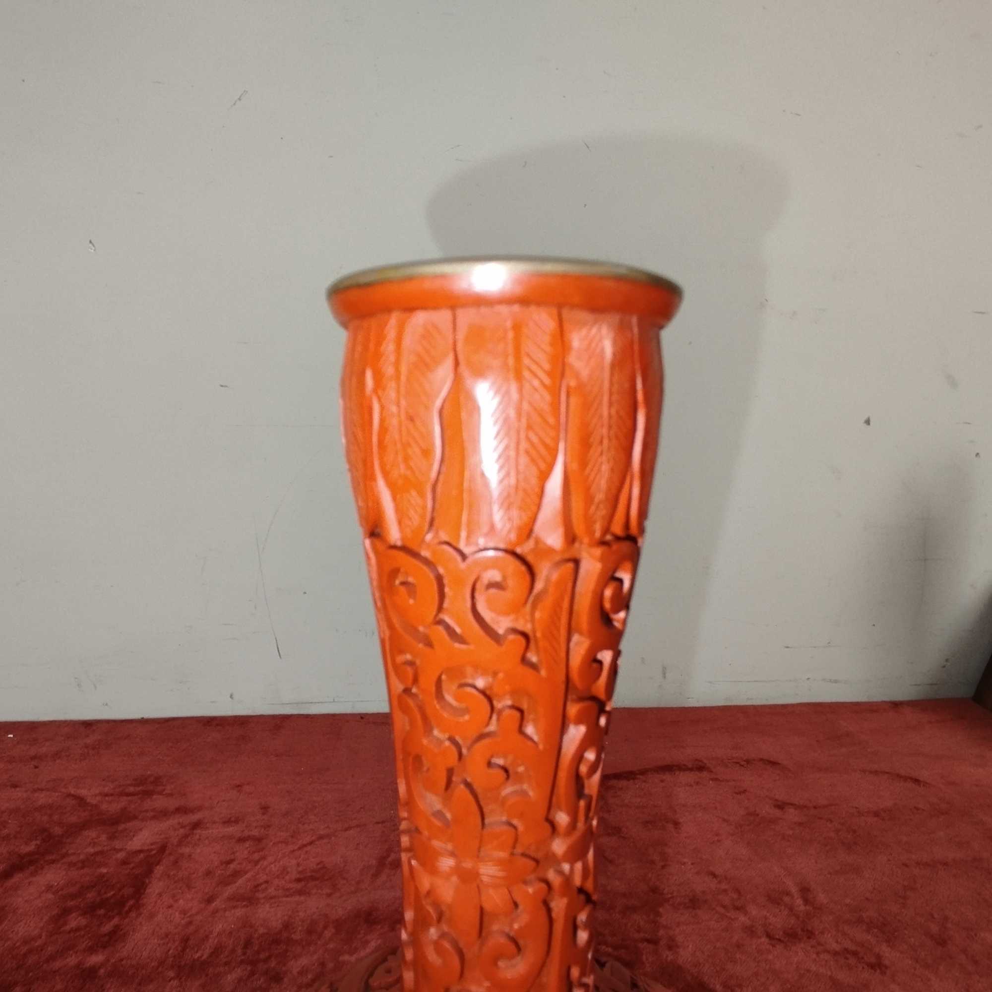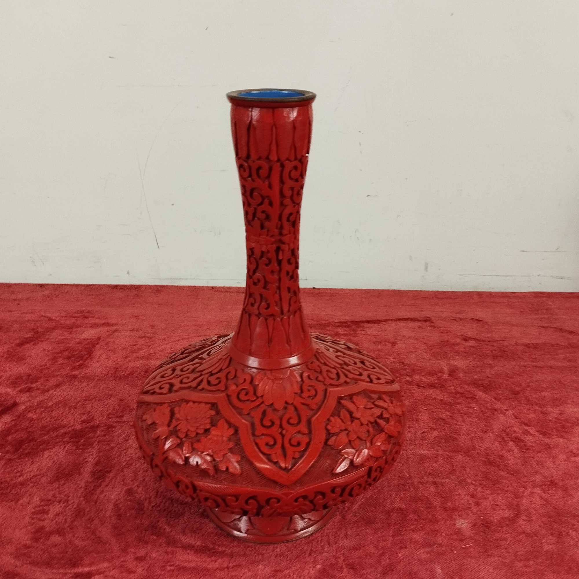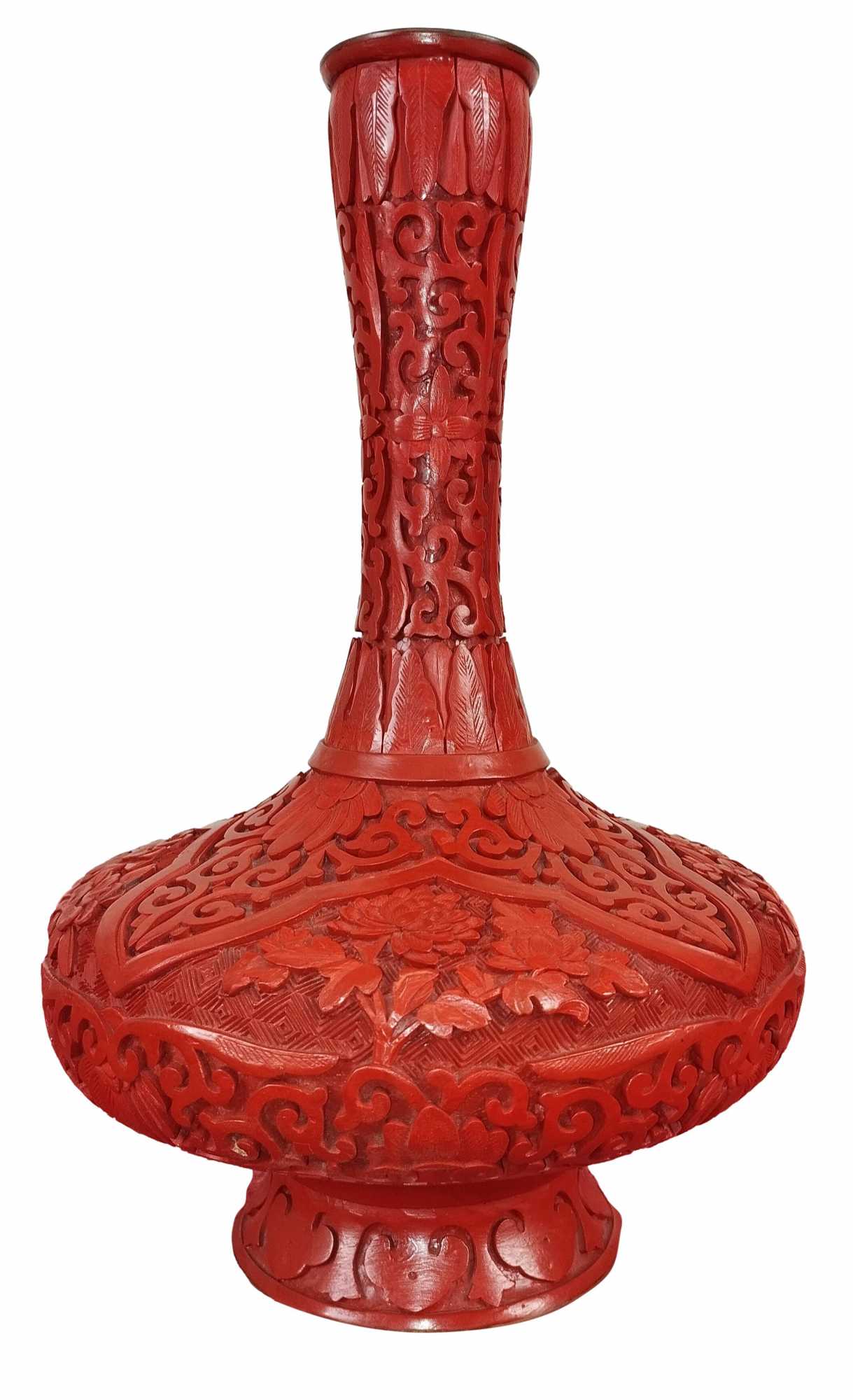 JARRÓN CHINO EN LACA TALLADA A MANO. CHINA. CIRCA 1950
