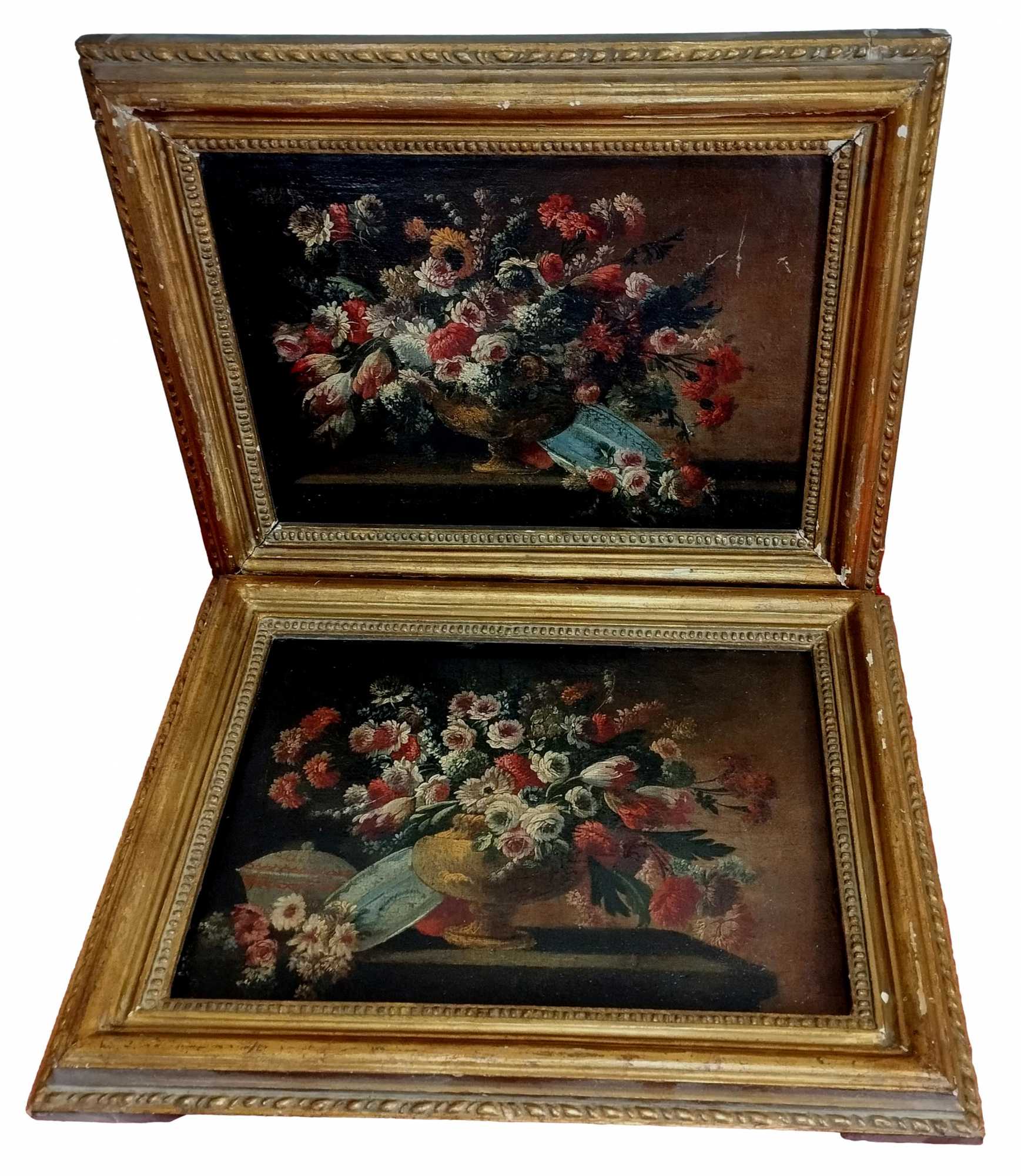 PAREJA DE BODEGONES DE FLORES. DE ESTILO BARROCO. ÓLEO – LIENZO. FRANCIA. XIX-XX