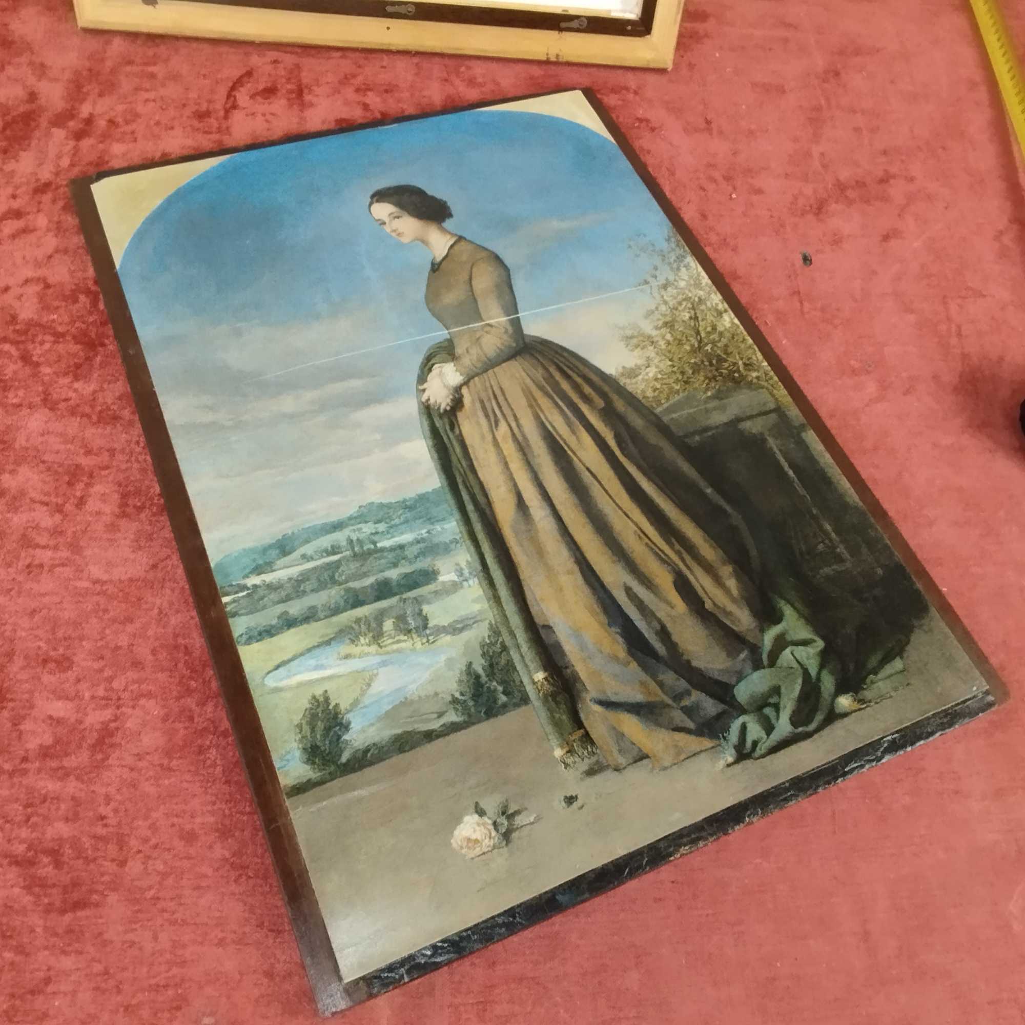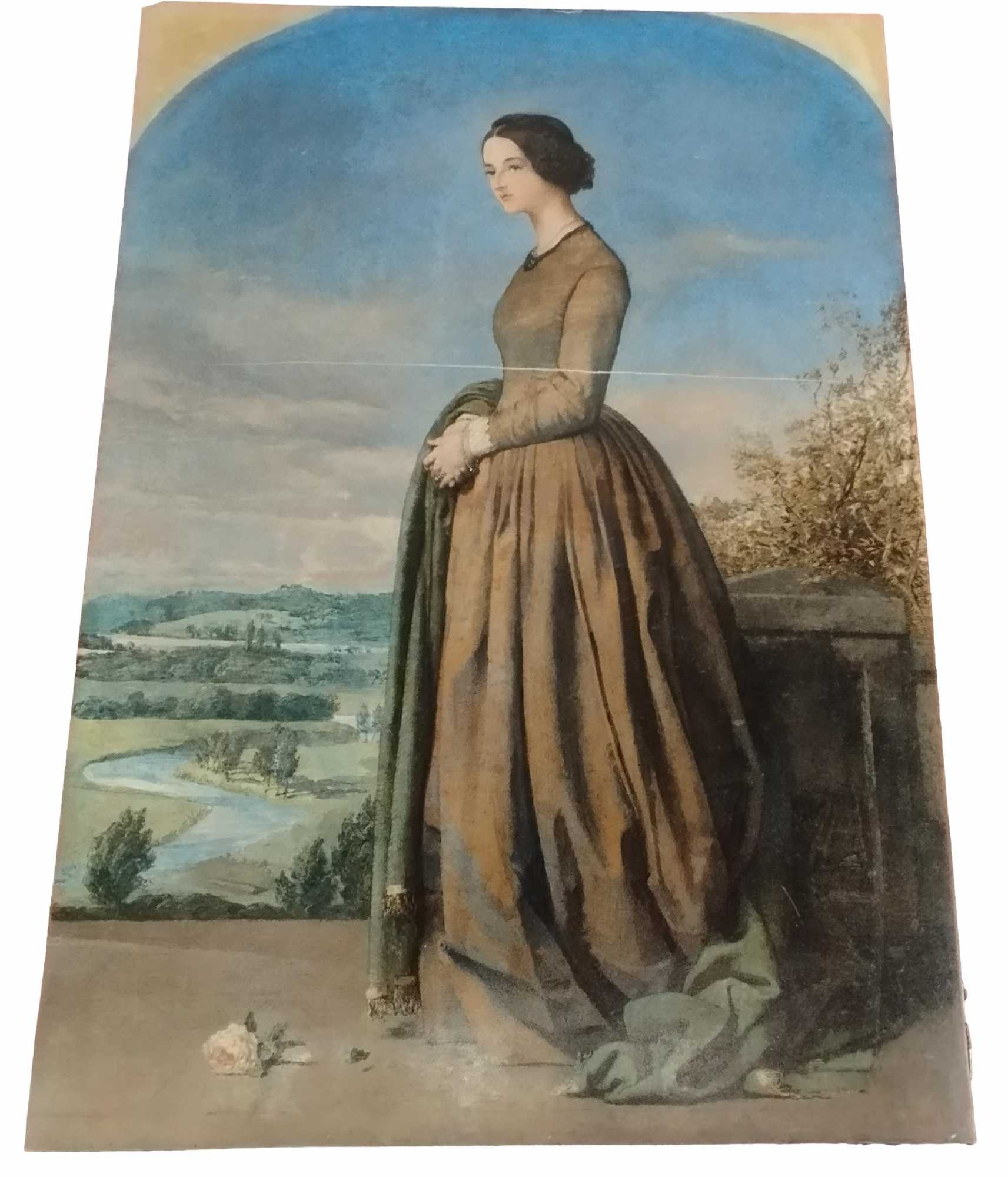 MEDIDAS APROX. CM.: EXTERIOR MARCO: 41X54 SÓLO PINTURA: 31.5X45 BUEN ESTADO GENERAL. SIN PÉRDIDAS EN LA PINTURA. ALGUNAS FISURAS TRANSVERSALES LEVES EROSIONES GENERALES MANCHAS DE POLVO Y SUCIEDAD LEVES DESPORTILLADOS PERIMETRALES EN LA PINTURA. MARCO CON RALLADOS Y EROSIONES. LA PINTURA NO TIENE FIRMA. CON ETIQUETA ATRIBUTIVA, DONDE SE CITA A LA RETRATADA COMO LA SEÑORITA D. COUTS MARJORIBANKS, Y ATRIBUYE LA AUTORÍA DEL CUADRO A ROBERT THORBURN NOTA BIOGRÁFICA A medida que la fotografía comenzó a reemplazar la pintura de miniaturas, Thorburn se adaptó y se dedicó a la pintura al óleo, exhibiendo retratos y otros temas en la Real Academia. A pesar de la disminución de su fama en años posteriores, su legado perdura a través de sus obras y su contribución a la pintura de miniaturas en el siglo XIX. Robert Thorburn falleció en Tunbridge Wells en 1885 a la edad de 67 años. A medida que la fotografía comenzó a reemplazar la pintura de miniaturas, Thorburn se adaptó y se dedicó a la pintura al óleo, exhibiendo retratos y otros temas en la Real Academia. A pesar de la disminución de su fama en años posteriores, su legado perdura a través de sus obras y su contribución a la pintura de miniaturas en el siglo XIX. Robert Thorburn falleció en Tunbridge Wells en 1885 a la edad de 67 años.