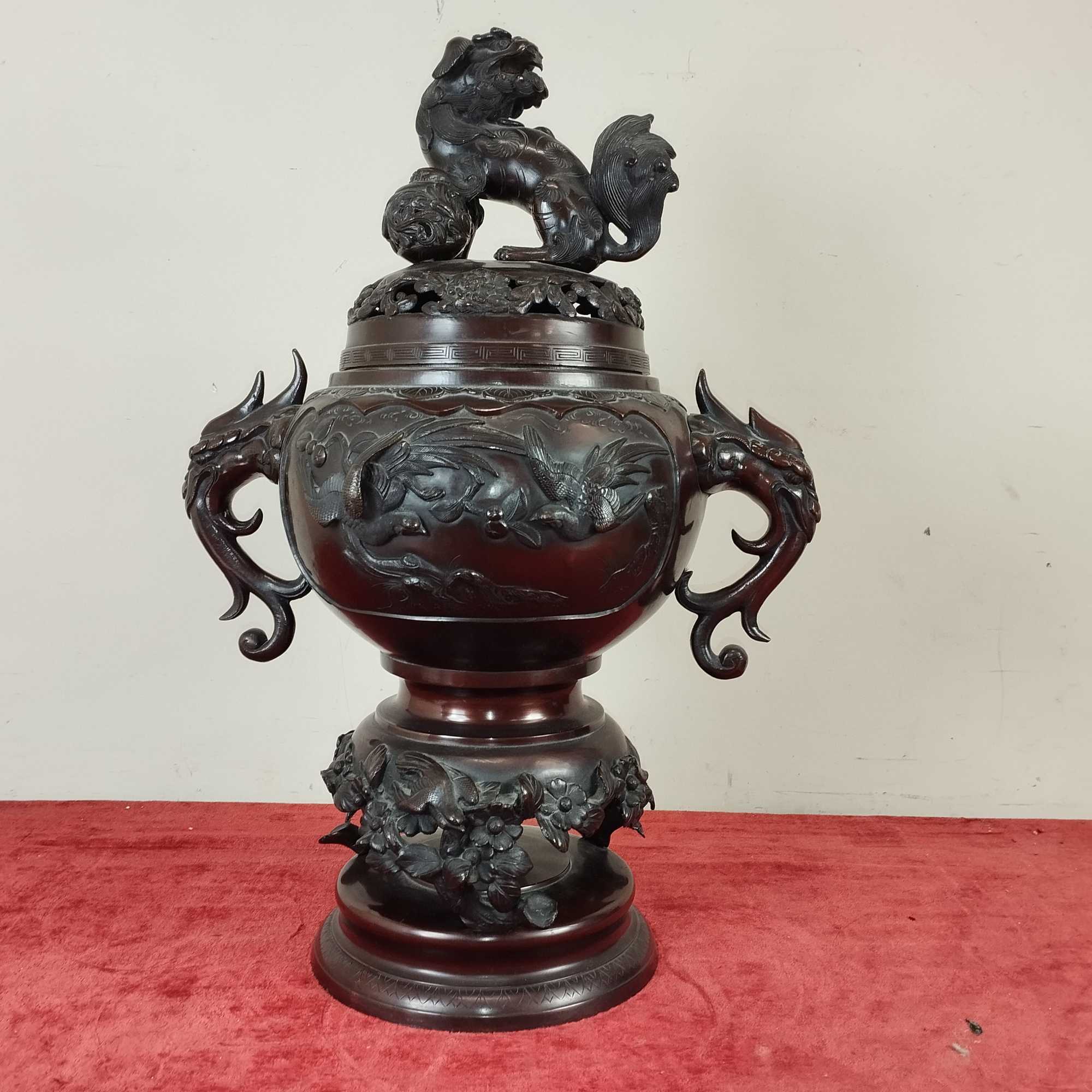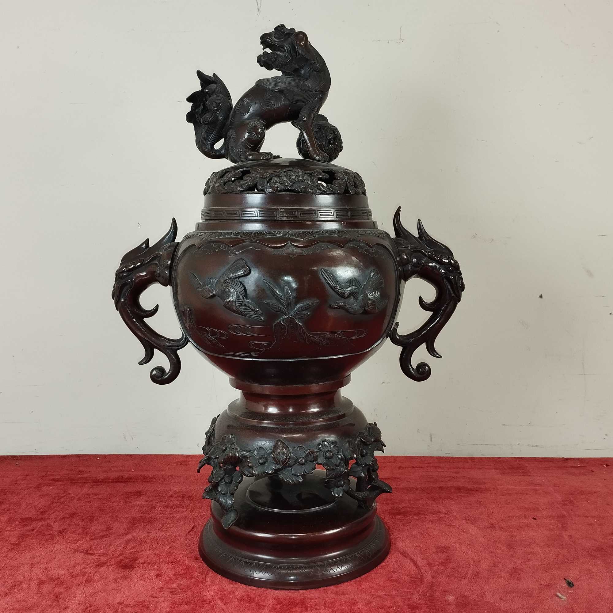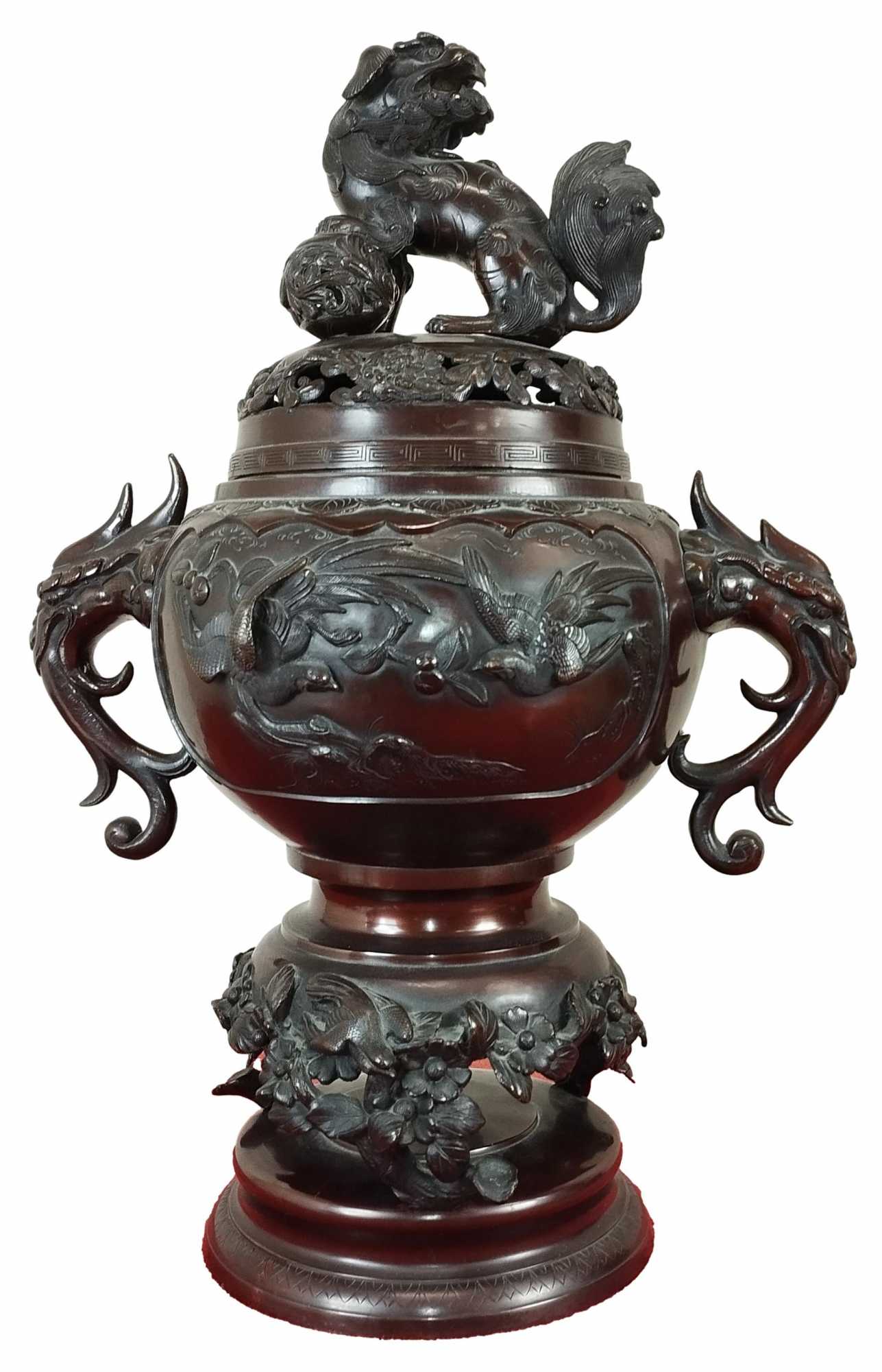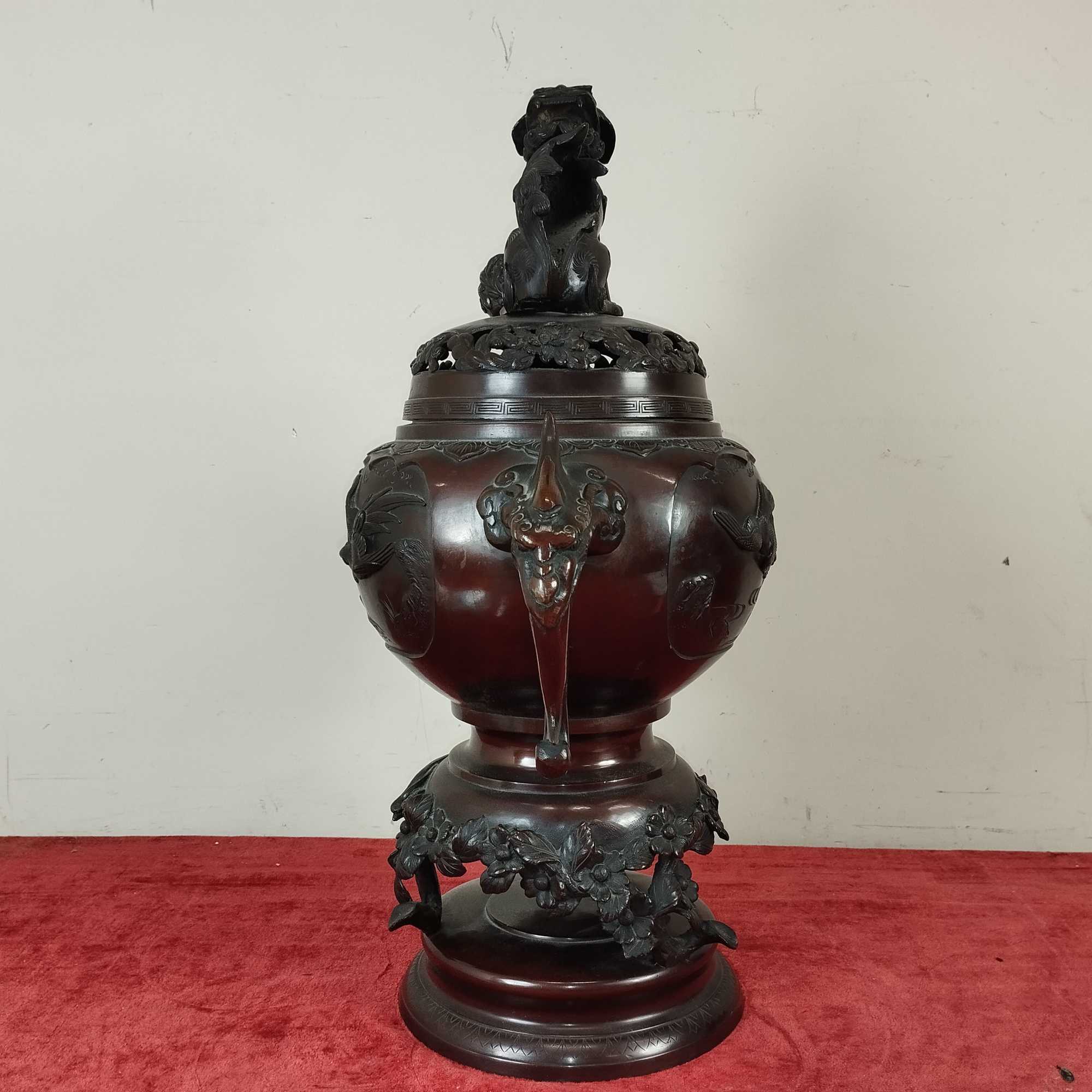 EXCEPCIONAL INCENSARIO DE PIE CHINO. COBRE CINCELADO. CHINA. FINALES XIX