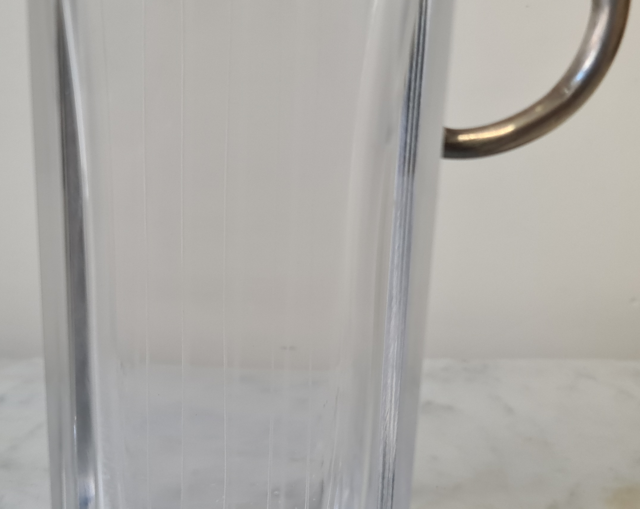JARRA DE CRISTAL TALLADO. ASA Y CUELLO DE PLATA PUNZONADA. CIRCA 1950.
