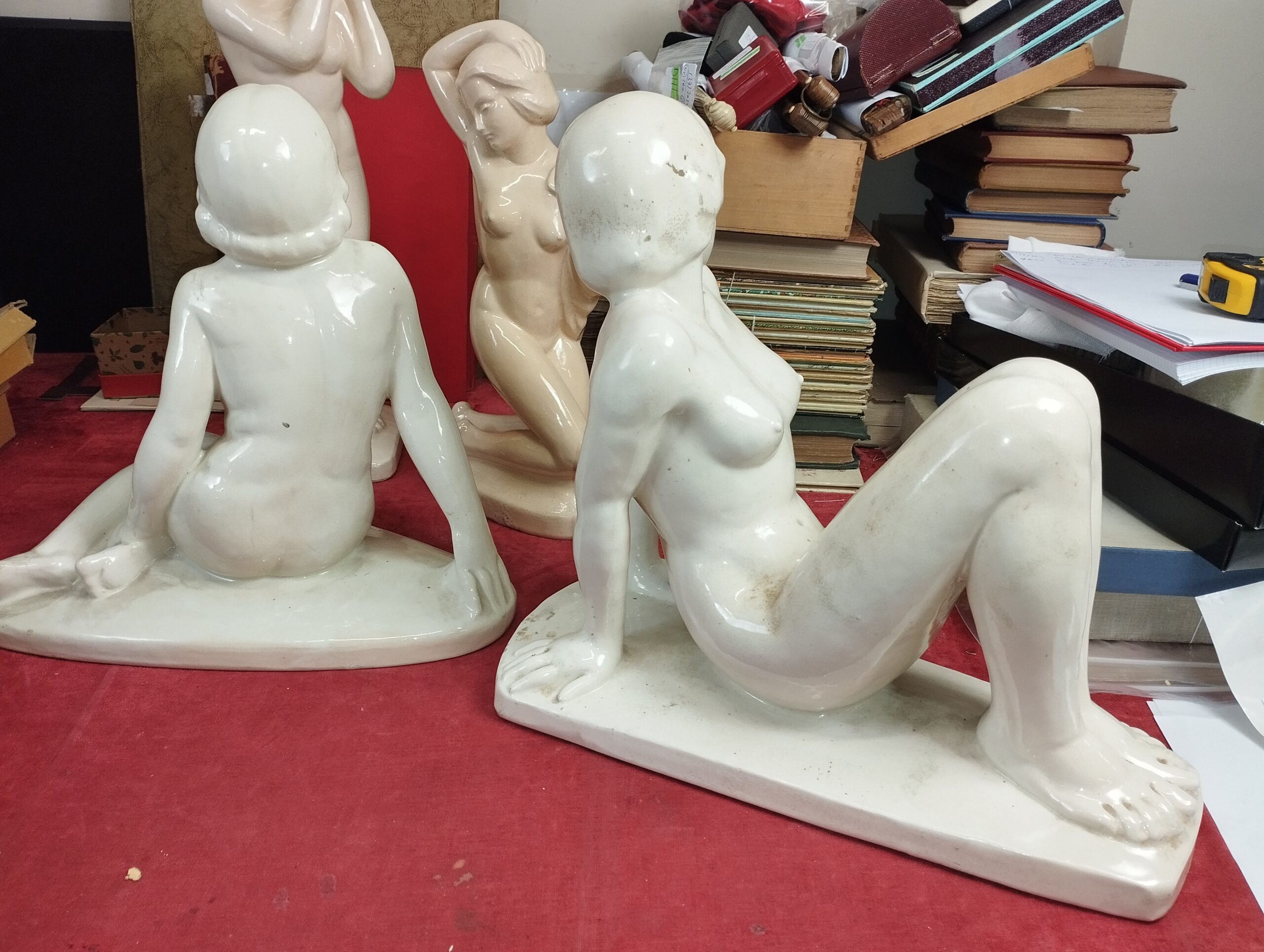 PUJOL. CMT. ESCULTURAS FEMENINAS NOVECENTISTAS. LOZA BLANCA ESMALTADA. ESPAÑA. XX