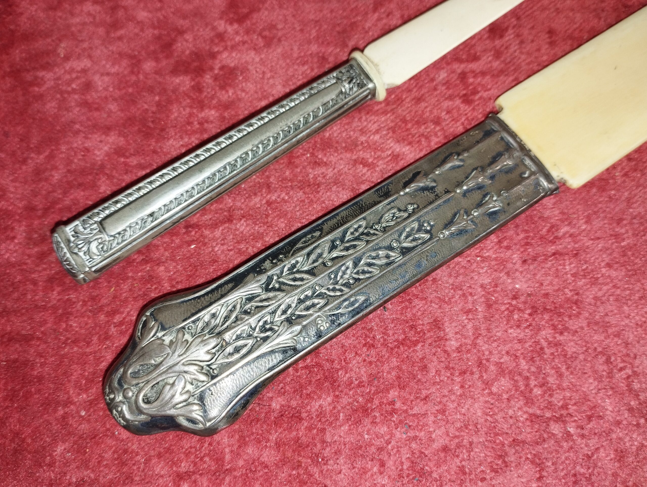 2 ANTIGUOS ABRECARTAS. PLATA CINCELADA. HUESO TALLADO. ESPAÑA. SIGLO XIX