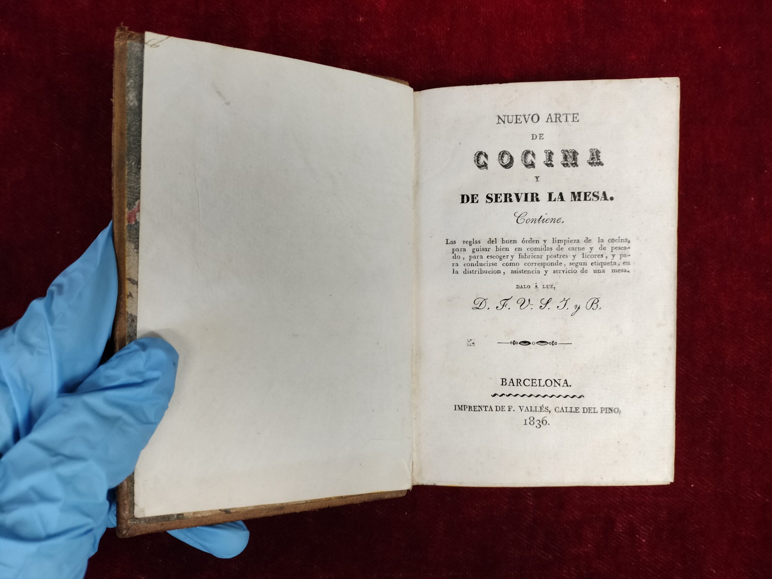 NUEVO ARTE DE COCINA Y DE SERVIR LA MESA. DIVIDIDO EN TRES LIBROS. BARCELONA. IMP F. VALLÉS, 1836