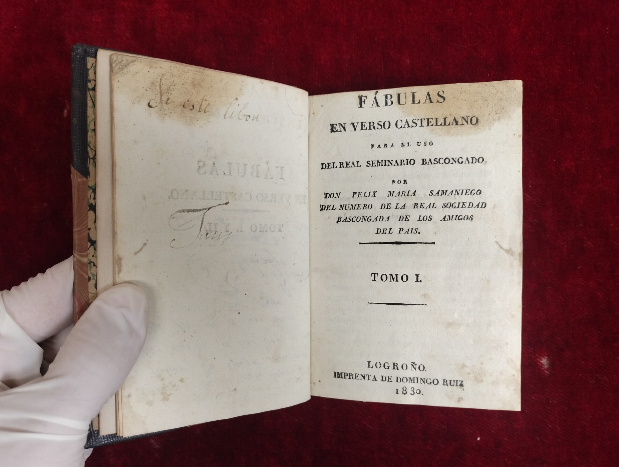 FÁBULAS EN VERSO CASTELLANO. FÉLIX MARIA SAMANIEGO. TOMOS I Y II. LOGROÑO. DOMINGO RUIZ, 1830.