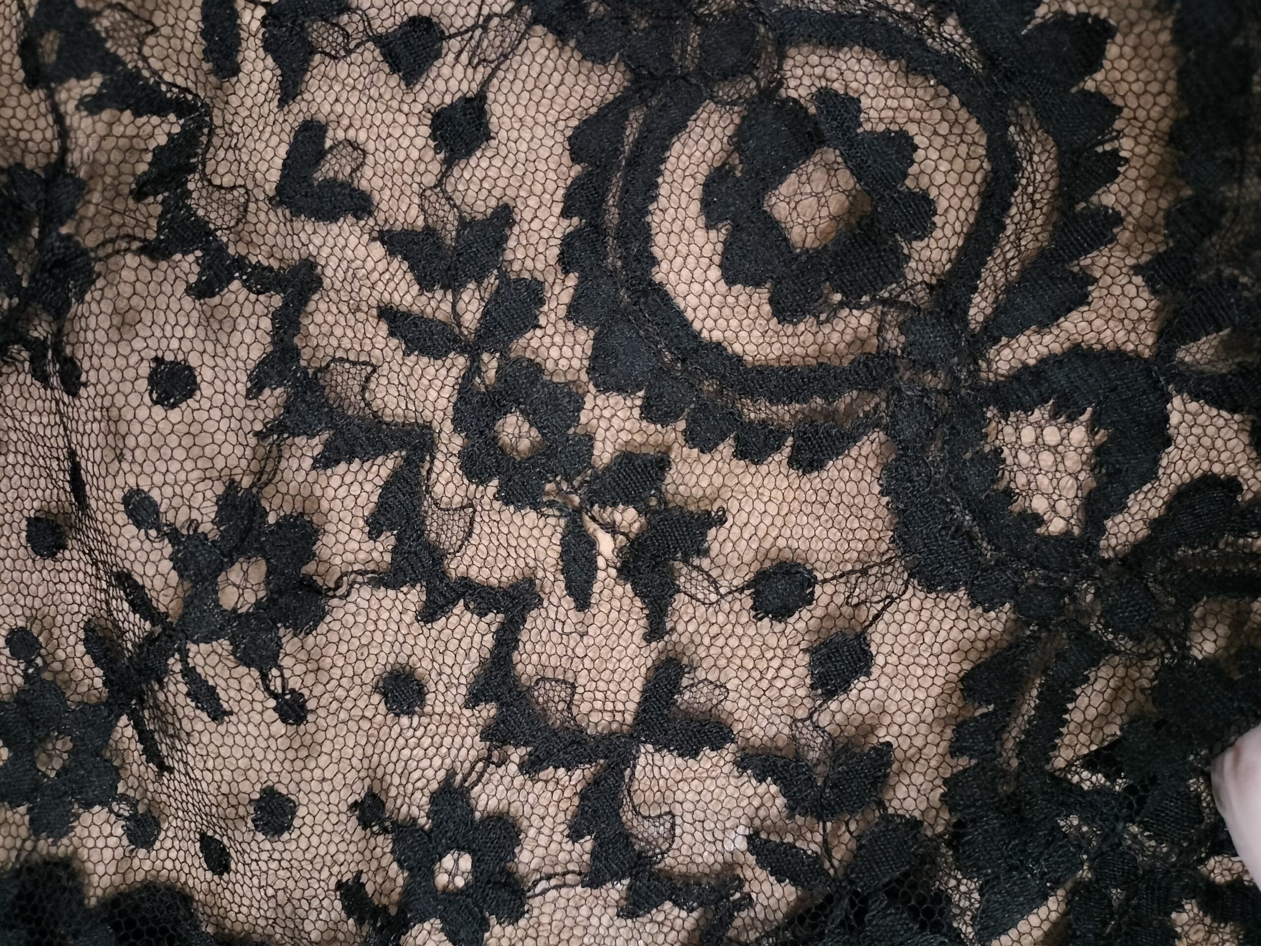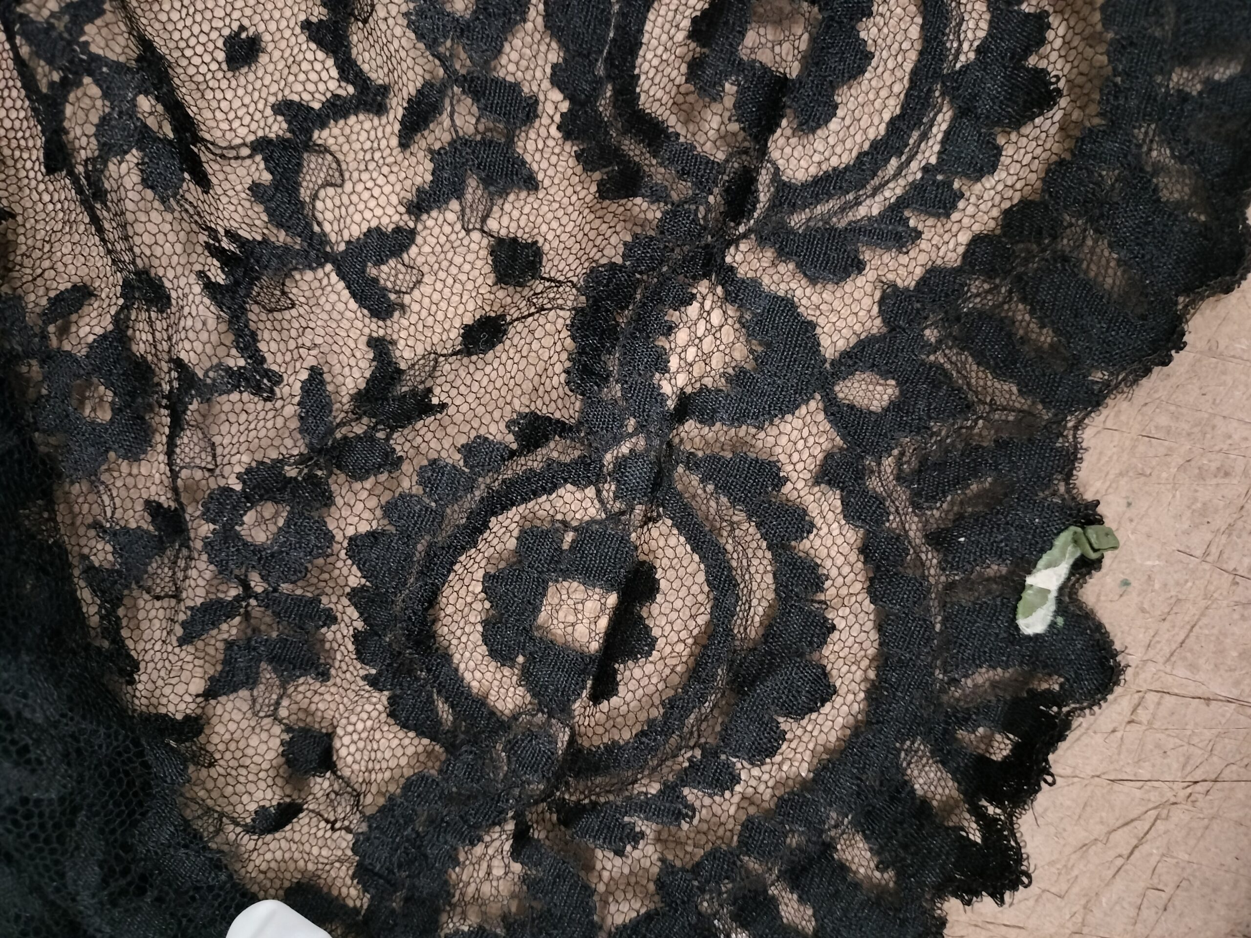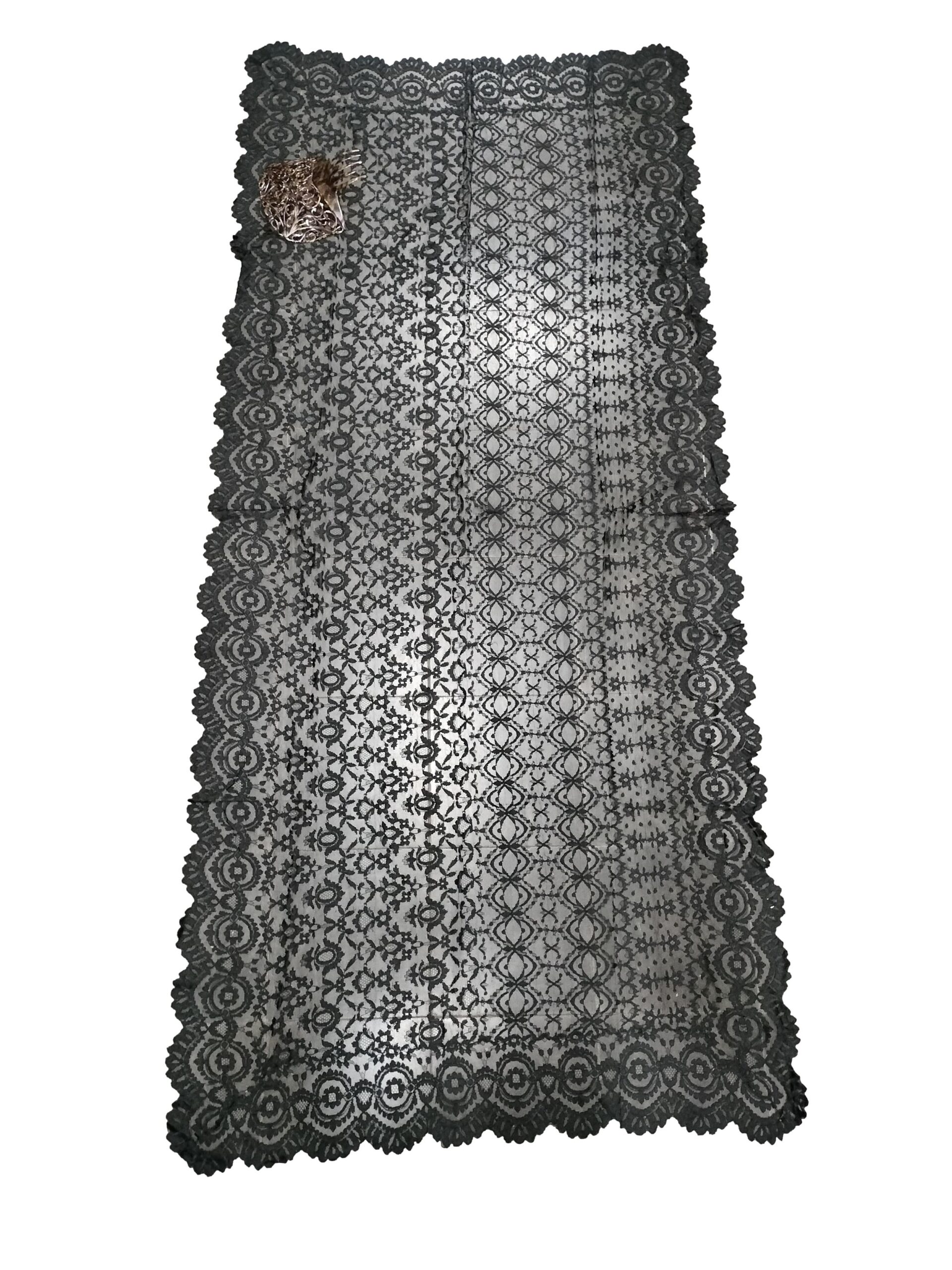 MANTILLA RECTANGULAR Y PEINETA. 211 X 93. ENCAJE SEMIMANUAL. TUL. ESPAÑA. XIX-XX