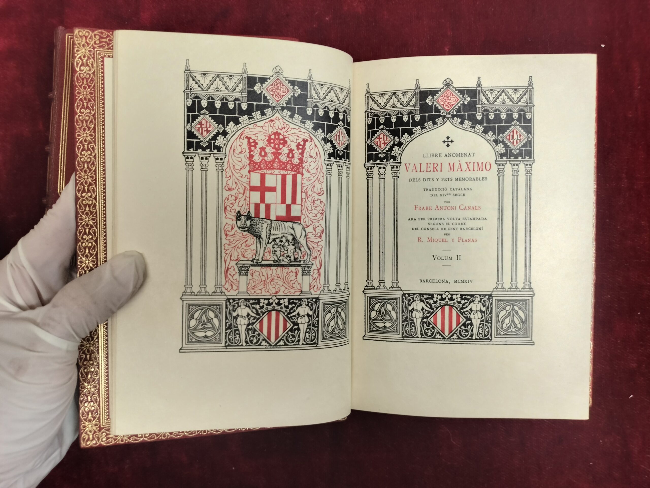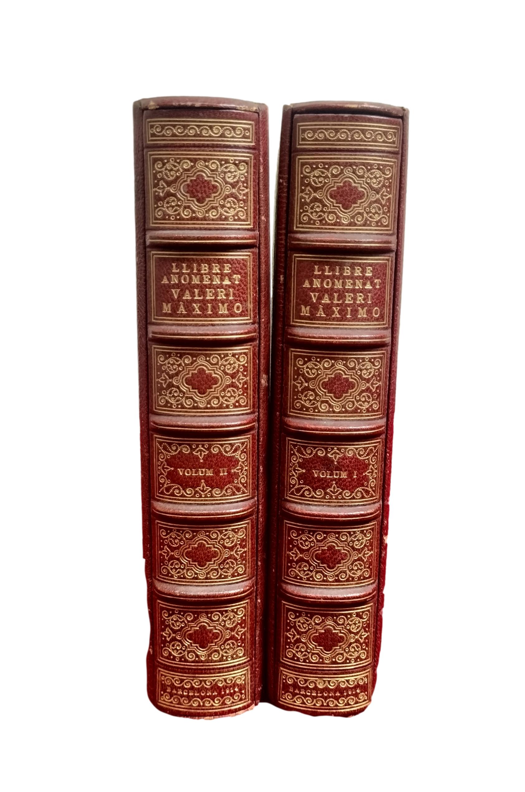 VER LAS IMÁGENES PARA COMPROBAR EL ESTADO REAL LAS IMÁGENES FORMAN PARTE DE LA DESCRIPCIÓN LLIBRE ANOMENAT VALERI MÀXIMO.  BIBLIOTECA CATALANA. DIR. R. MIQUEL Y PLANAS. TRADUCIDO POR ANTONIO CANALS.  2 VOLÚMENES.  EXQUISITA ENCUADERNACIÓN EN PIEL Y FILIGRANAS EN DORADO. SOBRECUBIERTA EN CARTÓN.  PÁG NUMERADAS.  CANTOS DORADOS.  CATALÁN. PRIMER TOMO 309 PÁG; SEGUNDO TOMO 380 BUEN ESTADO GENERAL, DESGASTES PROPIOS DEL TIEMPO. VER IMÁGENES