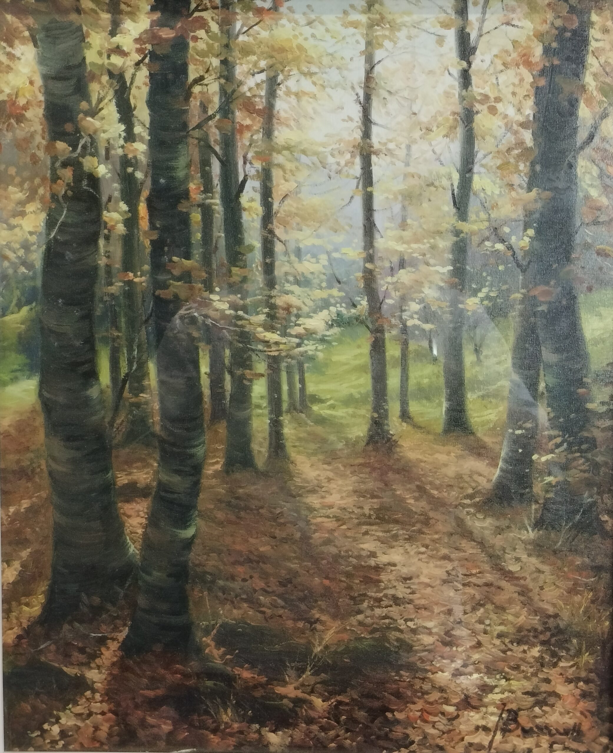 JOAN BURRULL. PAISAJE DE BOSQUE. FIRMADO. ÓLEO SOBRE LIENZO. ESPAÑA. XX