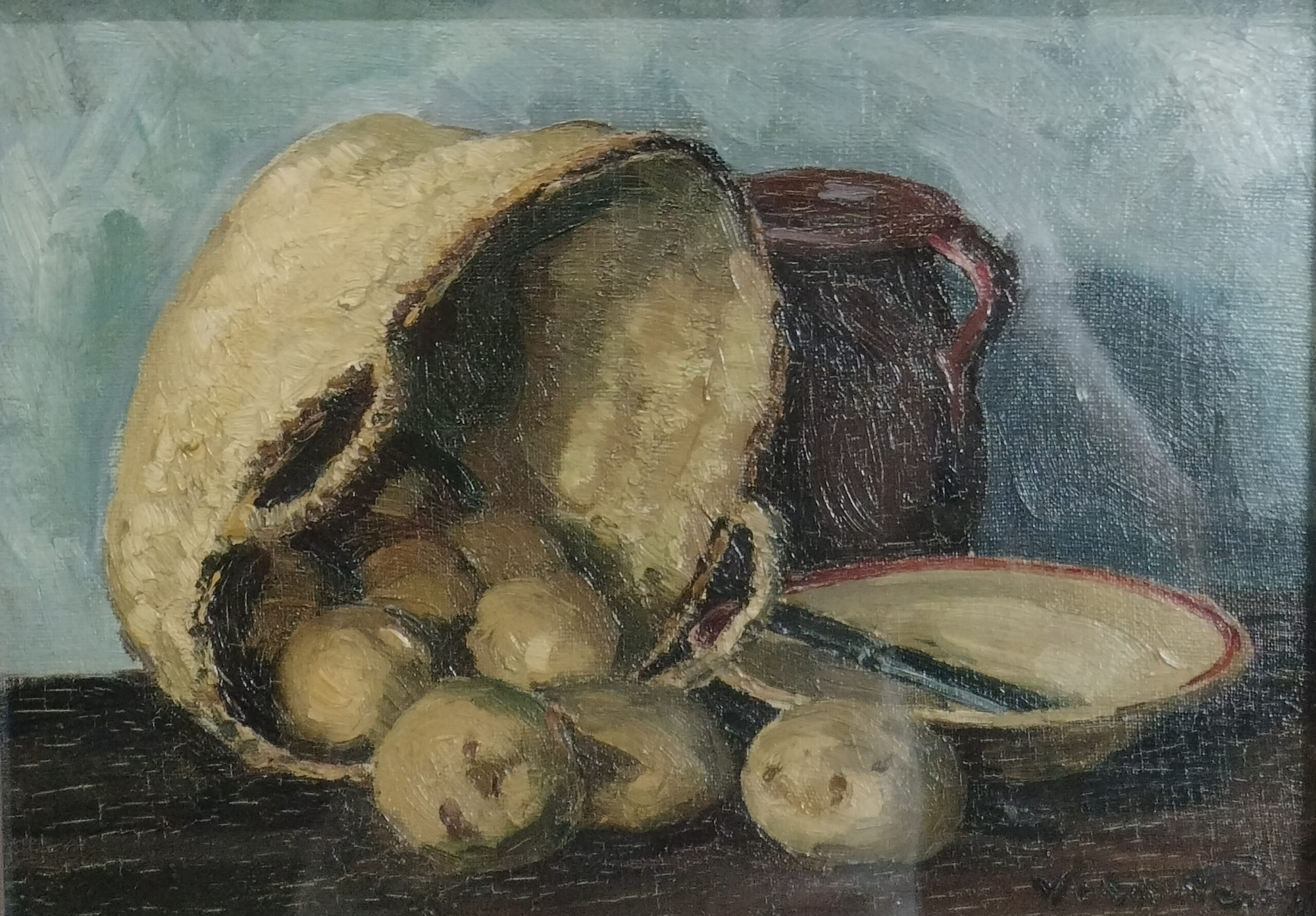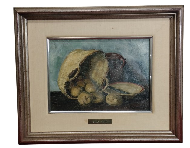 JOAN VILA-PUIG. BODEGÓN DE LA CESTA. ÓLEO SOBRE LIENZO. ESPAÑA. XX