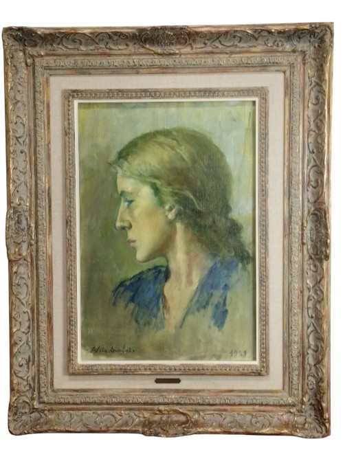 ANTONI VILA I ARRUFAT. RETRATO DE MUJER DE PERFIL. ÓLEO SOBRE LIENZO. ESPAÑA. 1981