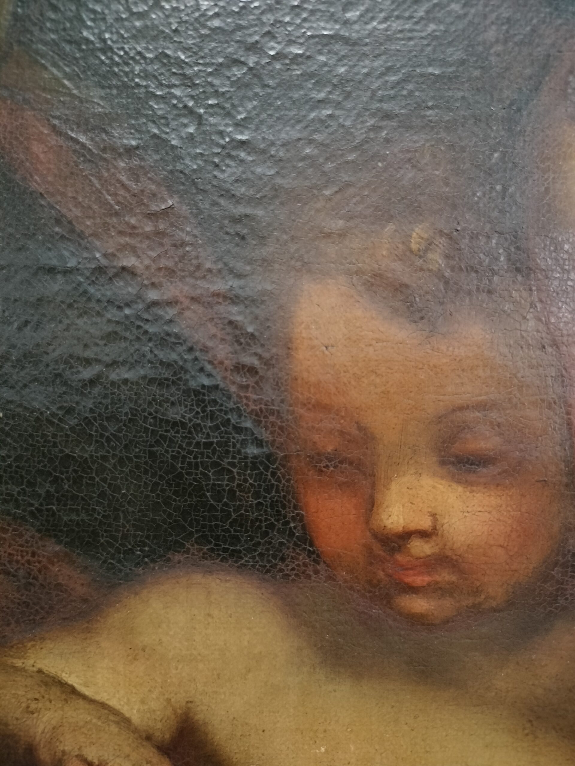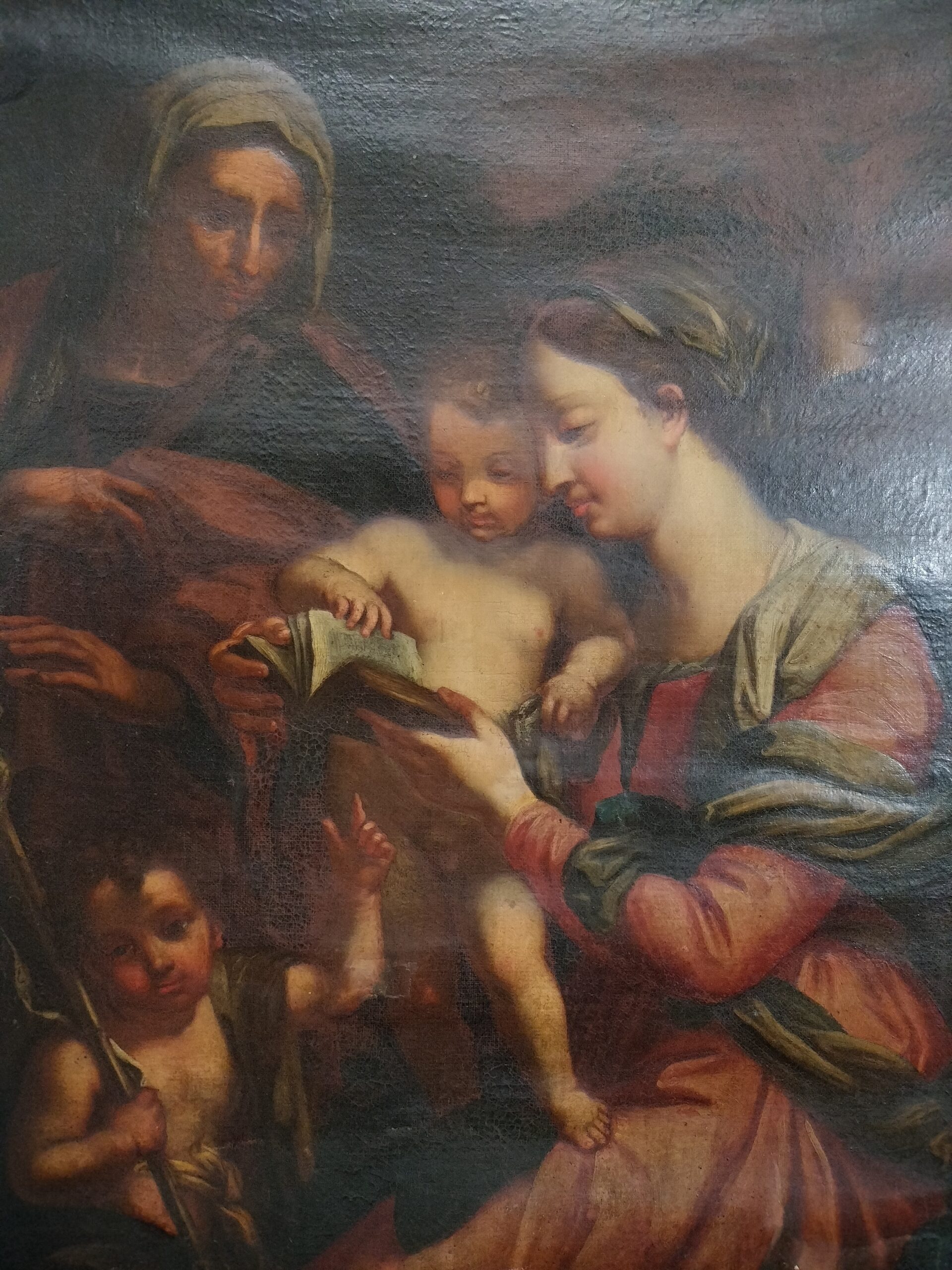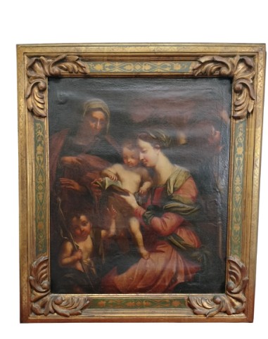 VER IMÁGENES PARA COMPROBAR EL ESTADO REAL. LAS IMÁGENES FORMAN PARTE DE LA DESCRIPCIÓN. VIRGEN CON EL NIÑO, SANTA ANA Y SAN JUAN BAUTISTA. ICONOGRAFÍA CLÁSICA DEL RENACIMIENTO TARDÍO Y EL BARROCO. ESTILO CARACTERÍSTICO DEL BARROCO TEMPRANO O PLENO: COLORES OCRES, TEATRALIDAD Y CLAROSCURO. SE APRECIA CIERTO CLASICISMO EN LOS ROSTROS. SIN FIRMAR. MARCO DE MADERA DORADA, CON ROTURAS, SUCIEDAD Y DESPORTILLAMIENTOS PREVIAMENTE RESTAURADO, APRECIABLE PRINCIPALMENTE EN LOS RECORTES DE LA PARTE POSTERIOR. CRAQUELADO Y ABOMBAMIENTO. VER IMÁGENES. MEDIDAS APROX: MARCO: 83,5 X 98 SOLO PINTURA: 61,5 X 74
