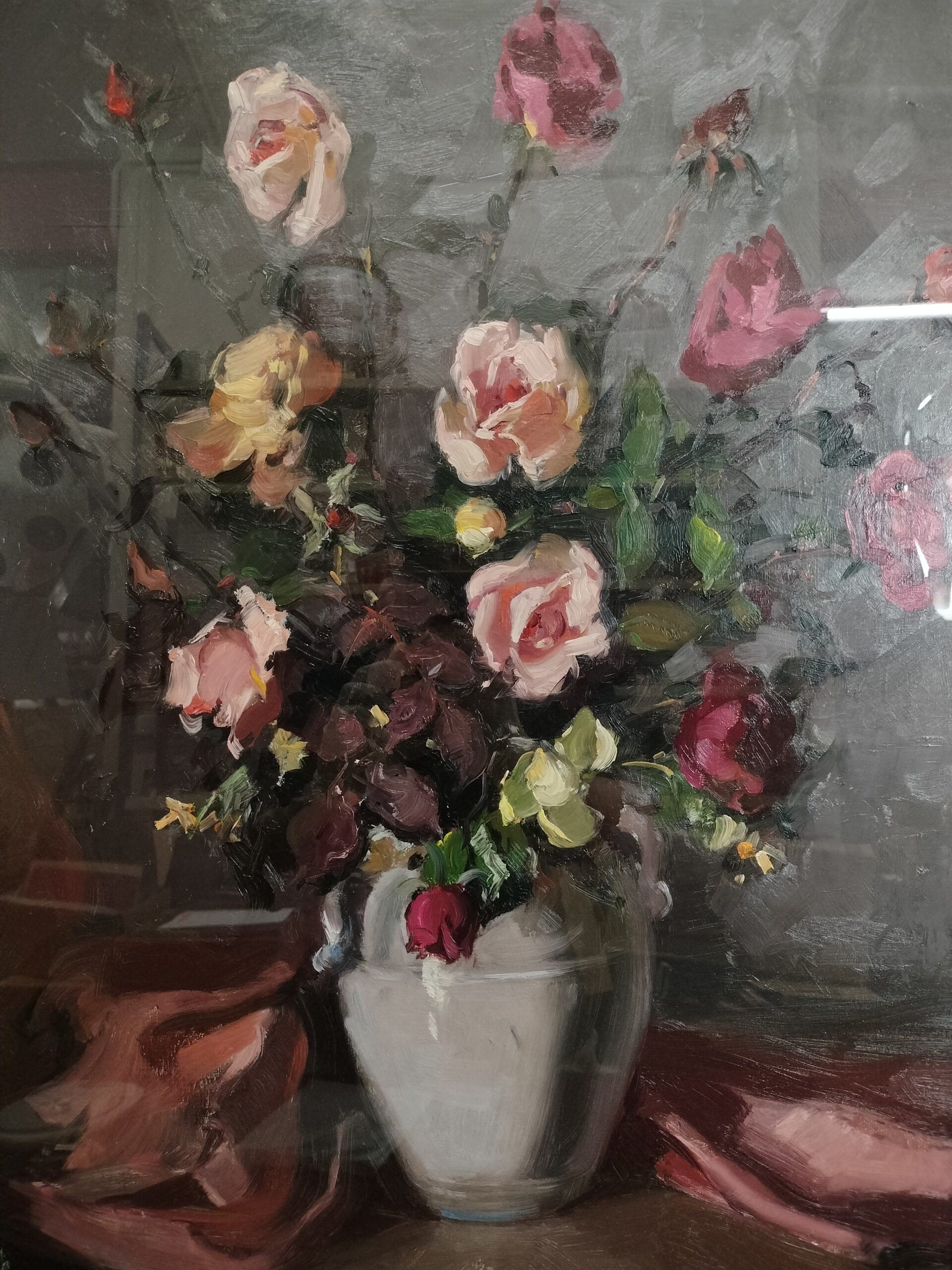 VER IMÁGENES PARA COMPROBAR EL ESTADO REAL.  LAS IMÁGENES FORMAN PARTE DE LA DESCRIPCIÓN.  JARRÓN CON FLORES.  FIRMADO R. ROCA RICART.  ÓLEO SOBRE LIENZO,  MARCO DE MADERA, CON VIDRIO PROTECTOR.  BUEN ESTADO GENERAL, VER IMÁGENES.  MEDIDAS APROX:  MARCO: 75 X 94,5 SOLO PINTURA: 48,5 X 68,5 RAIMON ROCA RICART, PINTOR NACIDO EN VIC ( BARCELONA ) EN 1917 Y FALLECIDO EN BARCELONA EN 2022. FROMADO EN LA ESCUELA DE ARTES Y OFICIOS DE SABADELL. CONTINUÓ SU FORMACIÓN EN LA ESCUELA DE BELLAS ARTES DE BARCELONA LA LLOTJA DONDE FUE AMIGO Y DISCIPULO DE ANTONI VILA ARRUFAT.     RAIMON ROCA RICART, PINTOR NACIDO EN VIC ( BARCELONA ) EN 1917 Y FALLECIDO EN BARCELONA EN 2022. FROMADO EN LA ESCUELA DE ARTES Y OFICIOS DE SABADELL. CONTINUÓ SU FORMACIÓN EN LA ESCUELA DE BELLAS ARTES DE BARCELONA LA LLOTJA DONDE FUE AMIGO Y DISCIPULO DE ANTONI VILA ARRUFAT.