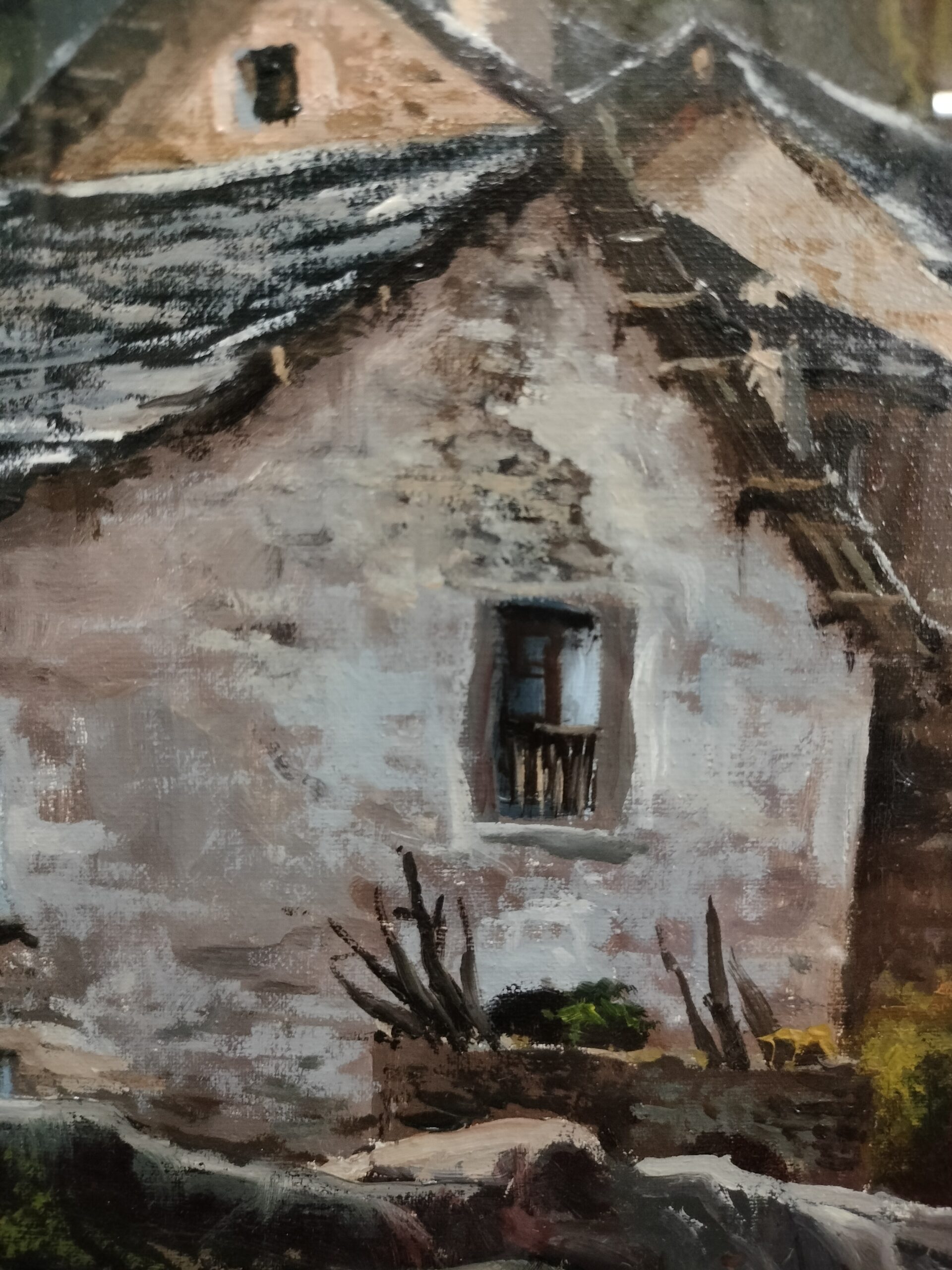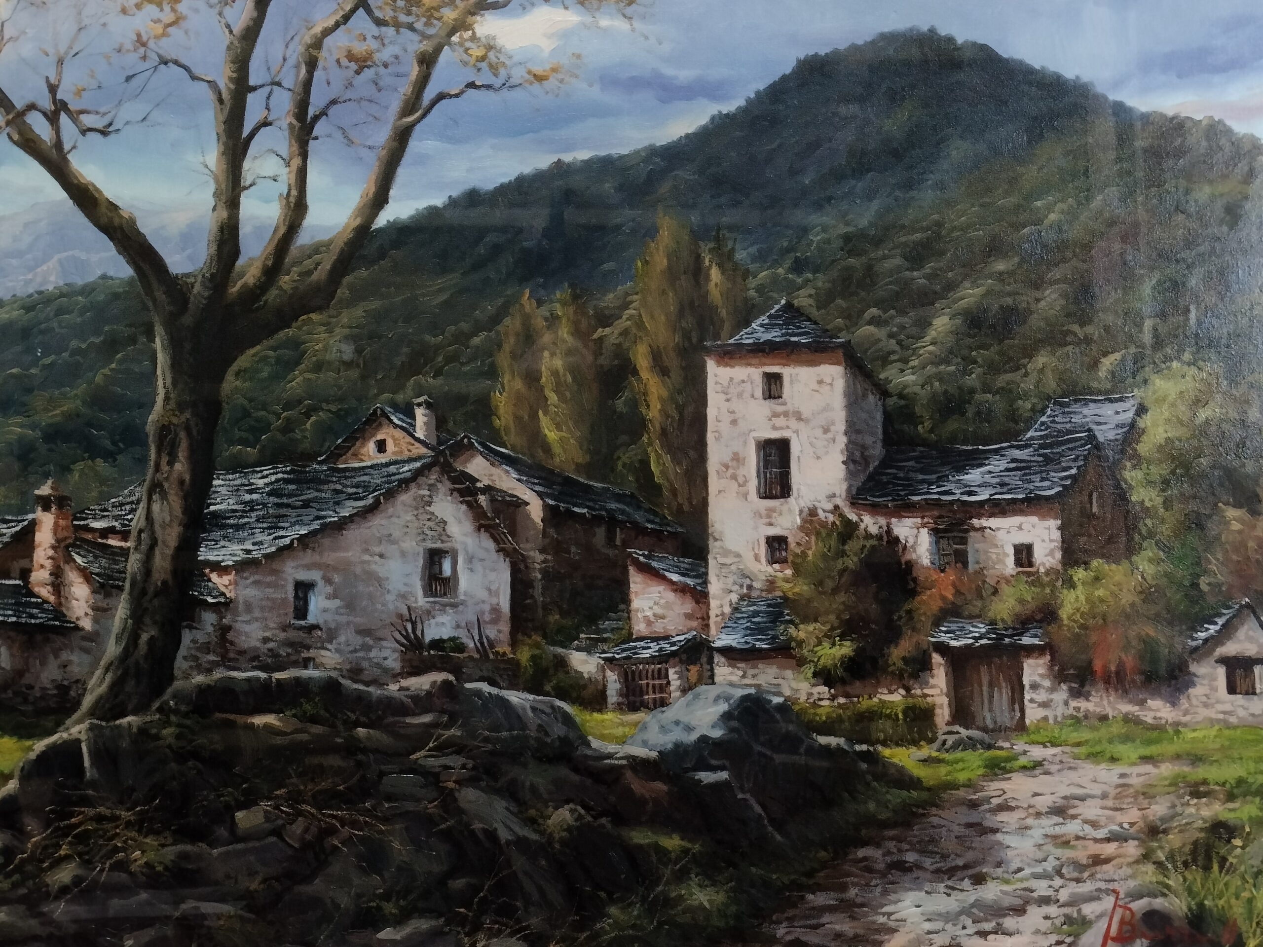 JOAN BURRULL. CAMINO HACIA EL PUEBLO. ÓLEO SOBRE LIENZO. ESPAÑA. SIGLO XX