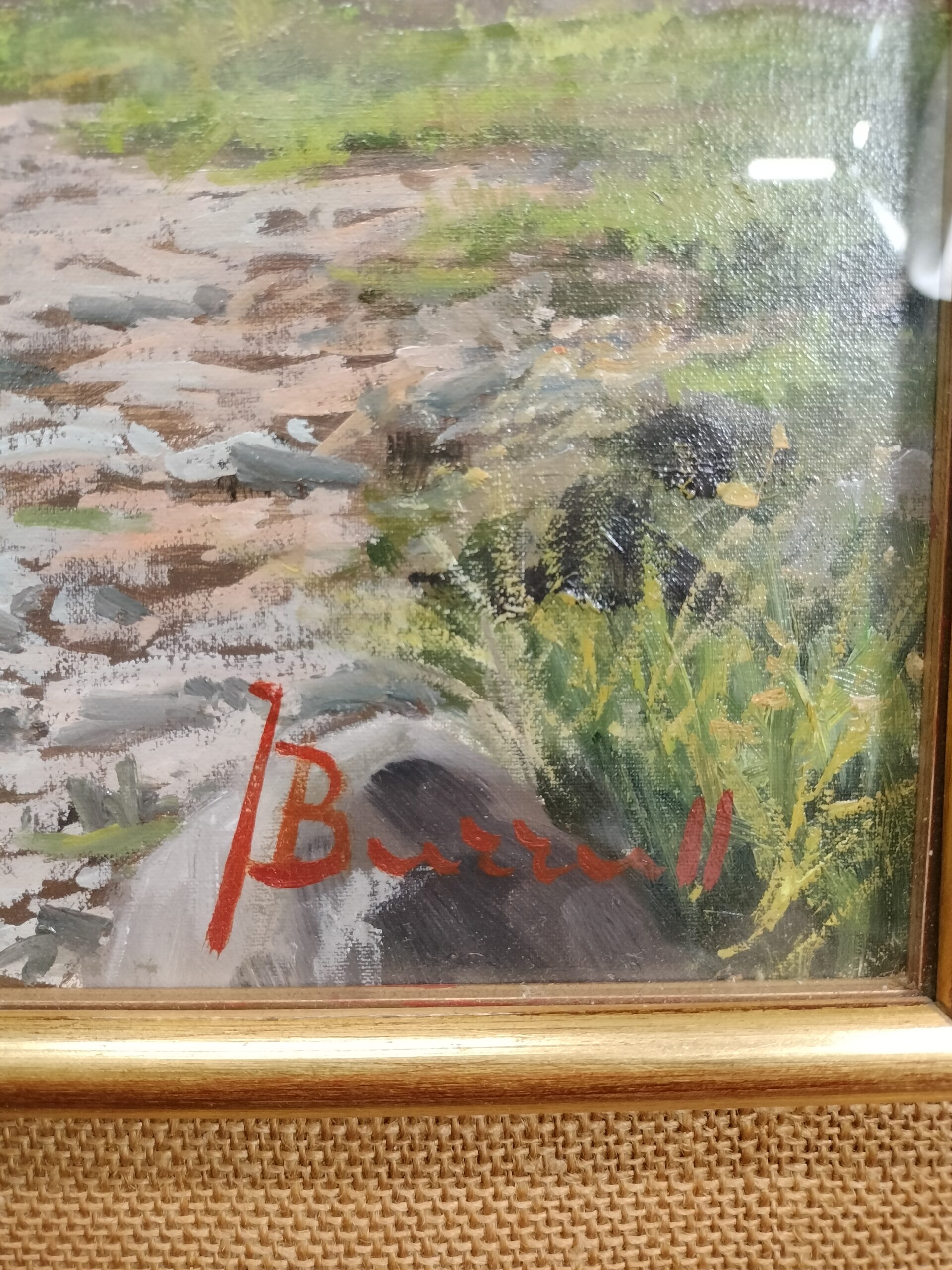 VER IMÁGENES PARA COMPROBAR EL ESTADO REAL. LAS IMÁGENES FORMAN PARTE DE LA DESCRIPCIÓN. FIRMADO J. BURRULL. VIDRIO PROTECTOR. MARCO DE MADERA Y TELA. BUEN ESTADO GENERAL, VER IMÁGENES. MEDIDAS APROX: MARCO: 106,5 X 87,5 PINTURA: 71,5 X 52,5