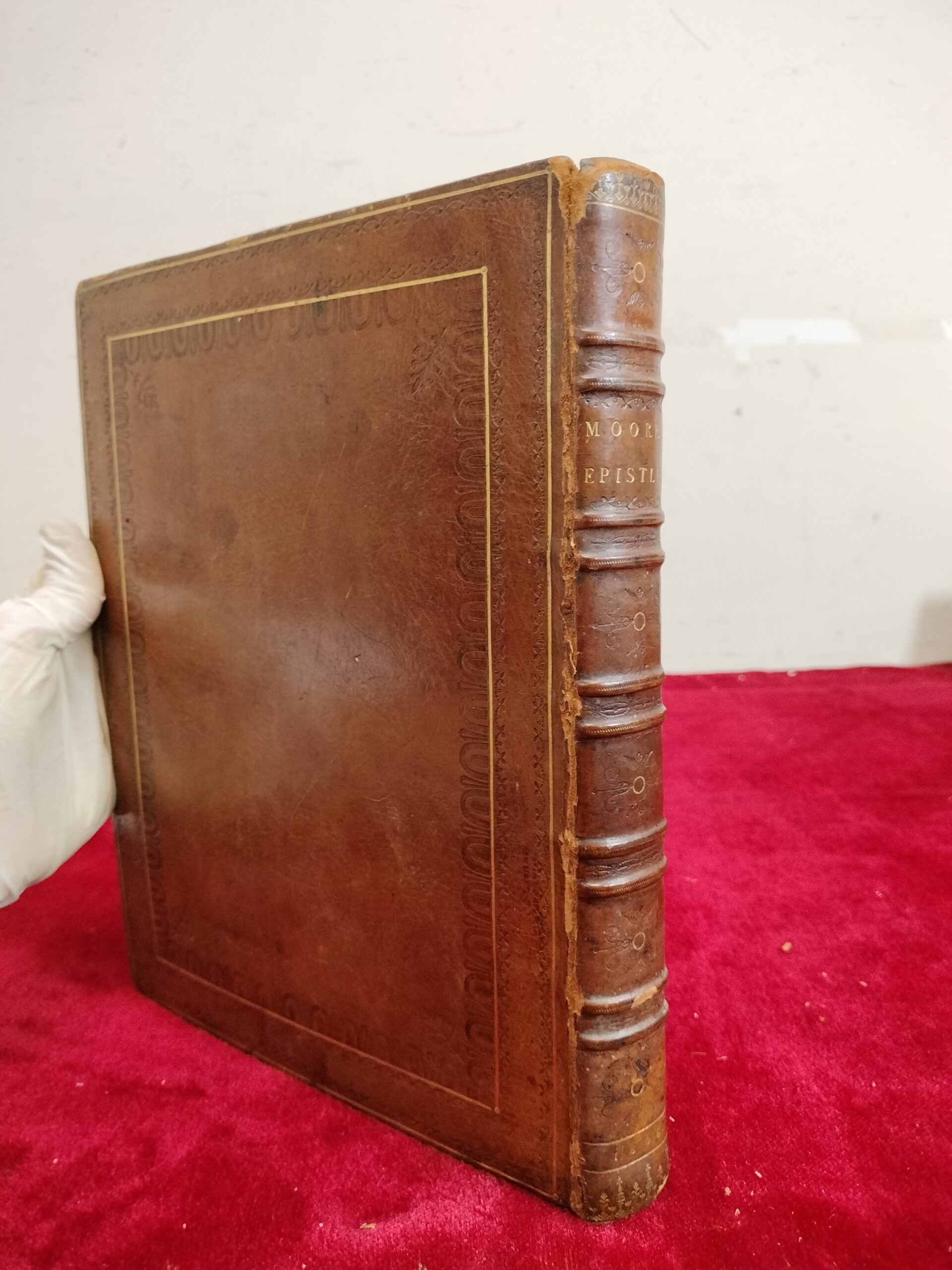 VER IMÁGENES PARA COMPROBAR EL ESTADO REAL. LAS IMÁGENES FORMAN PARTE DE LA DESCRIPCIÓN. ENCUADERNACIÓN EN PIEL. CUBIERTA DESPRENDIDA. LOMO CON NERVIOS. FILIGRANAS EN DORADO. EPISTLES, ODES AND OTHER POEMS. BY THOMAS MOORE. EN INGLÉS. CANTOS DECORADOS AL AGUA. 341 PÁGINAS. FRONTISPICIO CON GRABADO, CON RESTOS DE ÓXIDO Y HUMEDAD