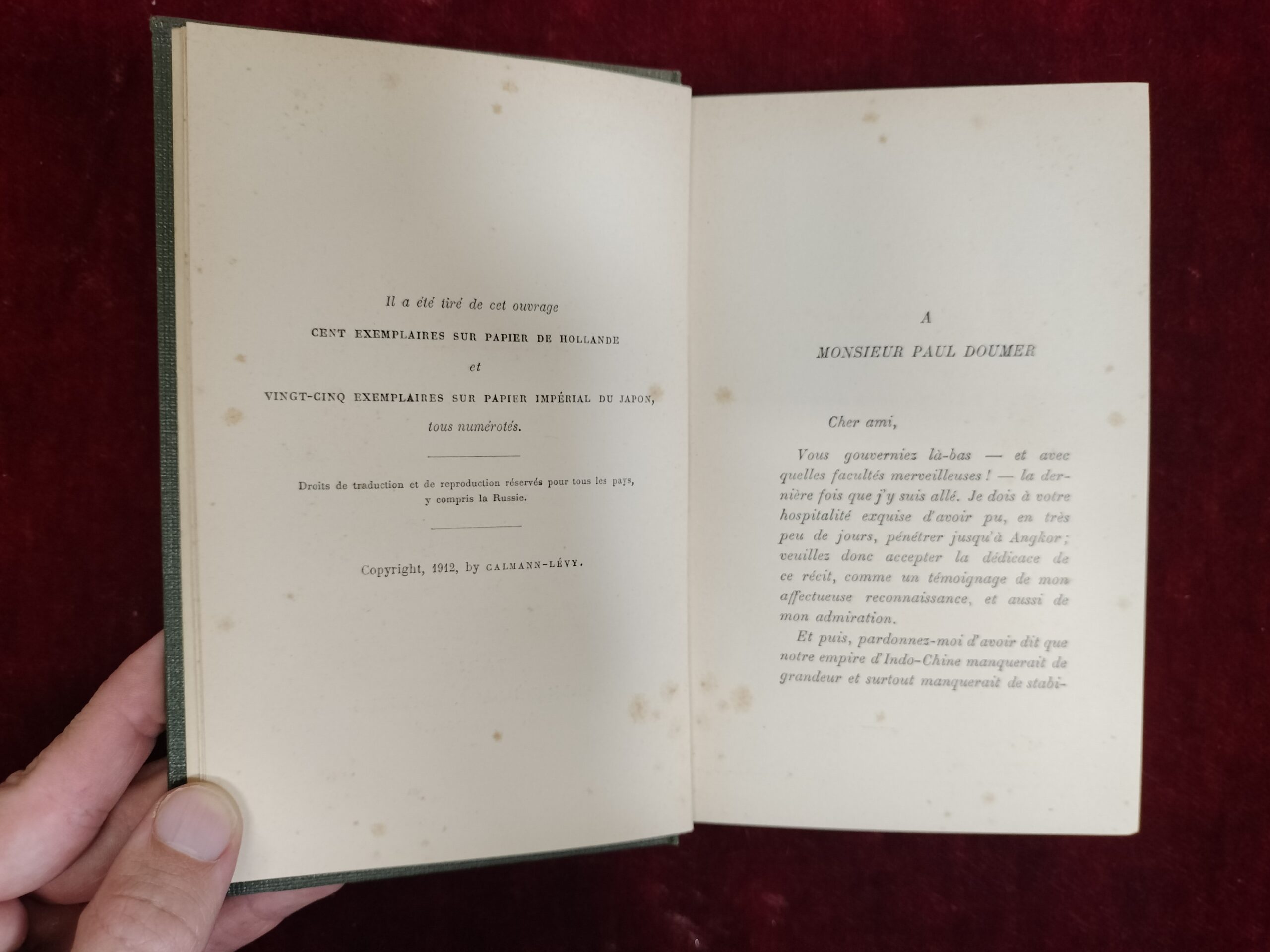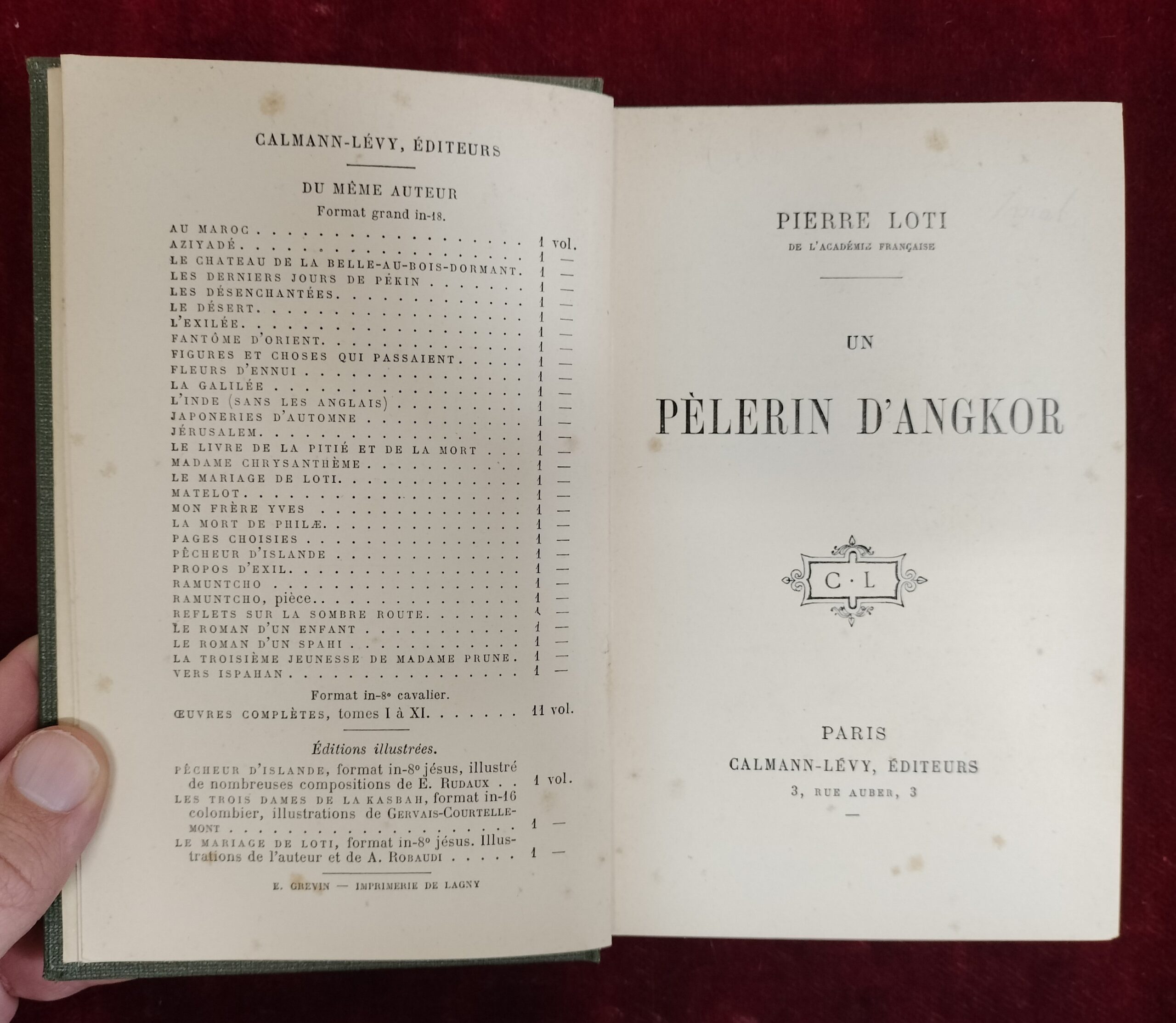 VER IMÁGENES PARA COMPROBAR EL ESTADO REAL. LAS IMÁGENES FORMAN PARTE DE LA DESCRIPCIÓN. UN PÈLERIN D’ANGKOR. P. LOTTI. EDICIÓN DE 1912. CALMANN-LÉVY. ENCUADERNACIÓN EN TELA EDITORIAL. PÁGINAS CON PEQUEÑAS MANCHAS DE ÓXIDO. VER IMÁGENES. 234 PÁGINAS. EDICIÓN RARA.