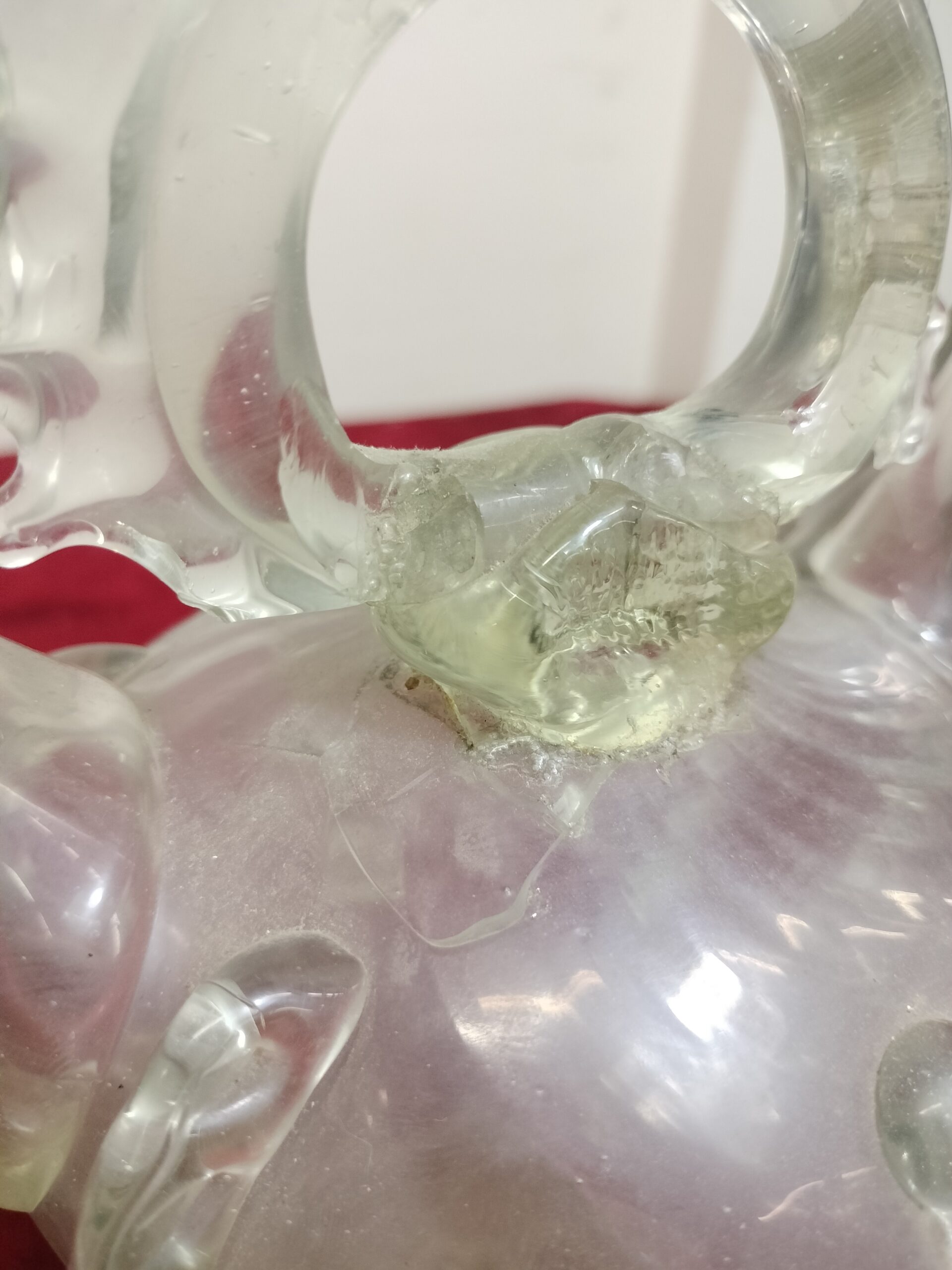 VER IMÁGENES PARA COMPROBAR EL ESTADO REAL. LAS IMÁGENES FORMAN PARTE DE LA DESCRIPCIÓN. ALMARRAJA DE VIDRIO SOPLADO. ESCUELA CATALANA. XIX-XX PRESENTA FRACTURAS. LA PARTE SUPERIOR HA SIDO ACOPLADA DE NUEVO CON ADHESIVO. PEQUEÑAS MARCAS DE SUCIEDAD. VER IMÁGENES.