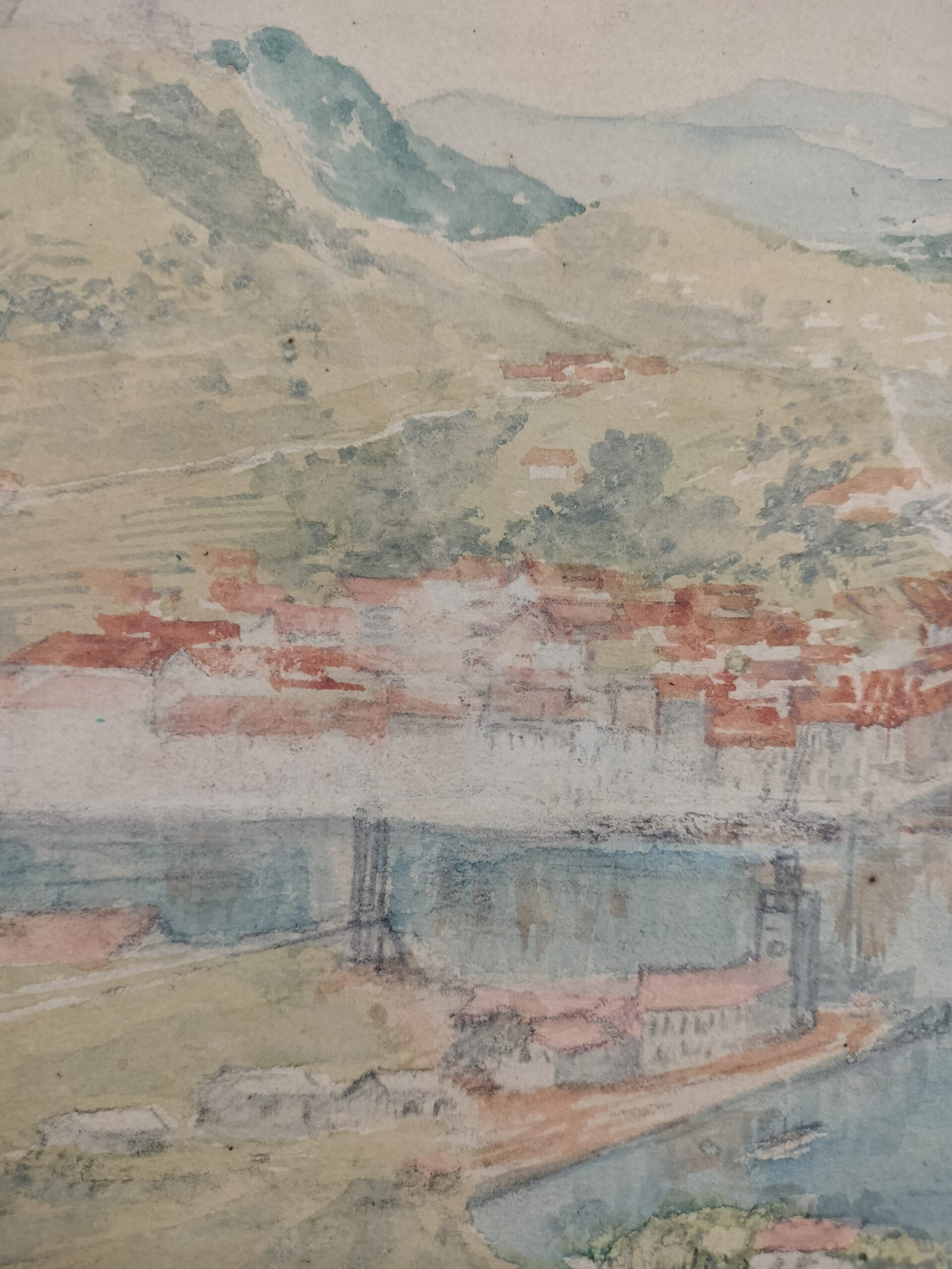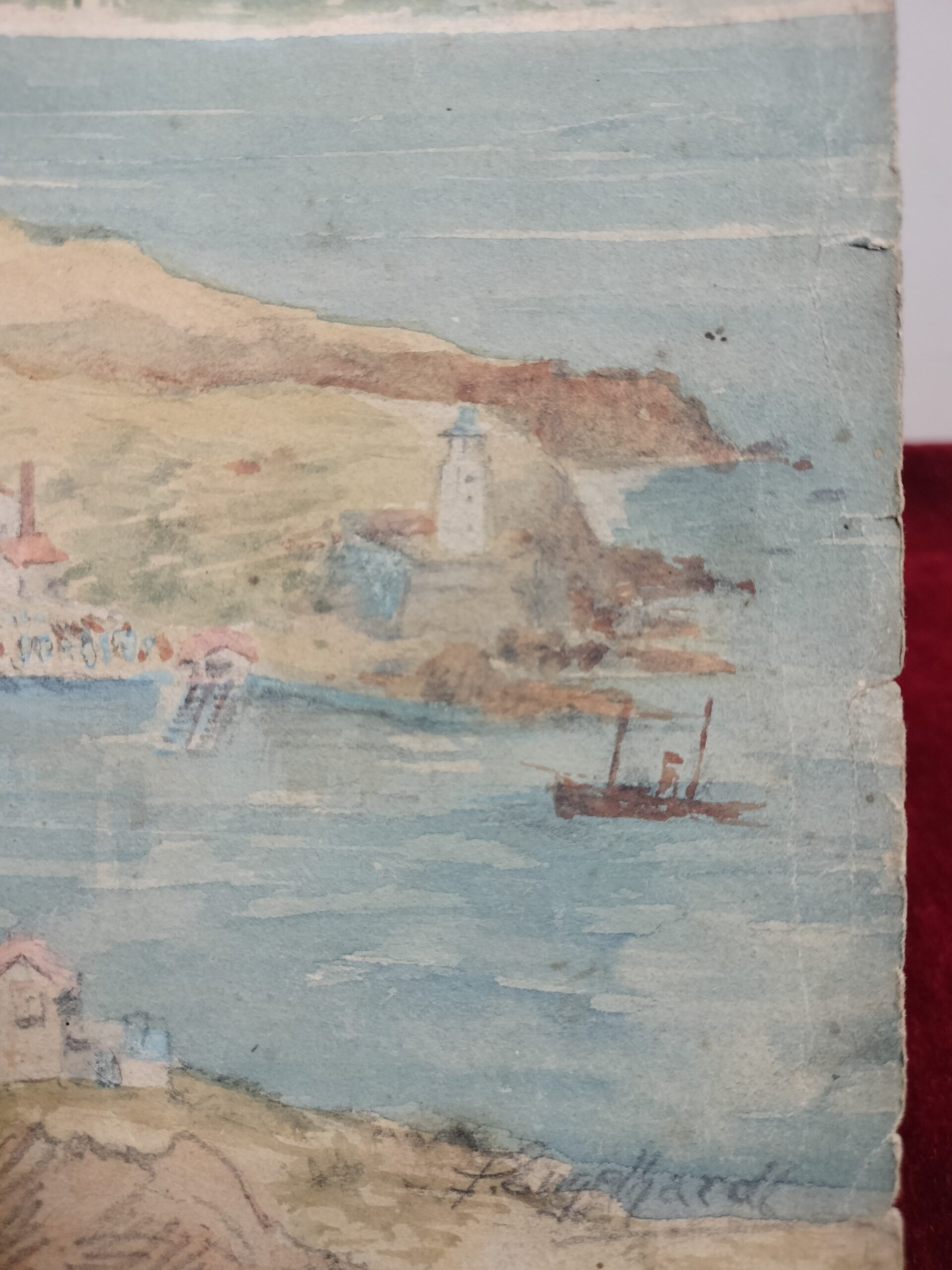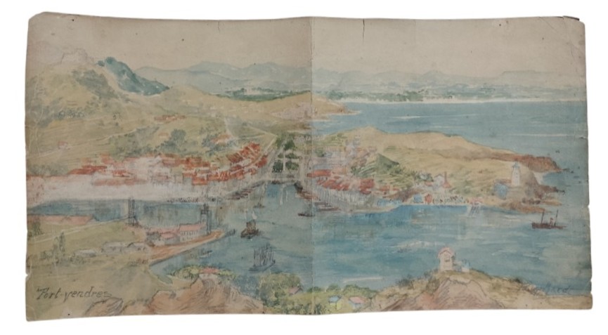 VISTA DE PORT-VENDRES. FIRMA ILEGIBLE. LÁPIZ Y ACUARELA SOBRE PAPEL. SIGLO XX