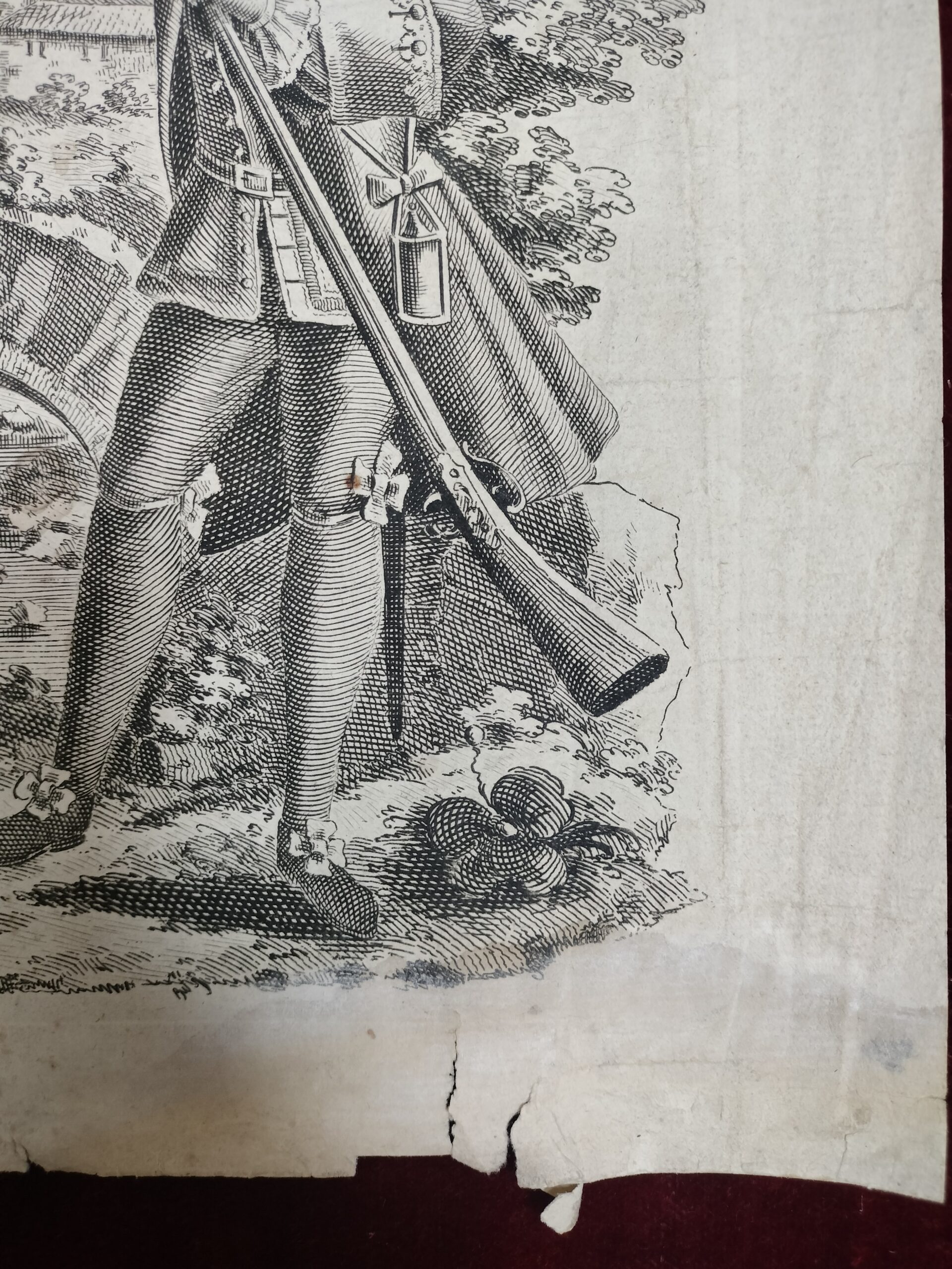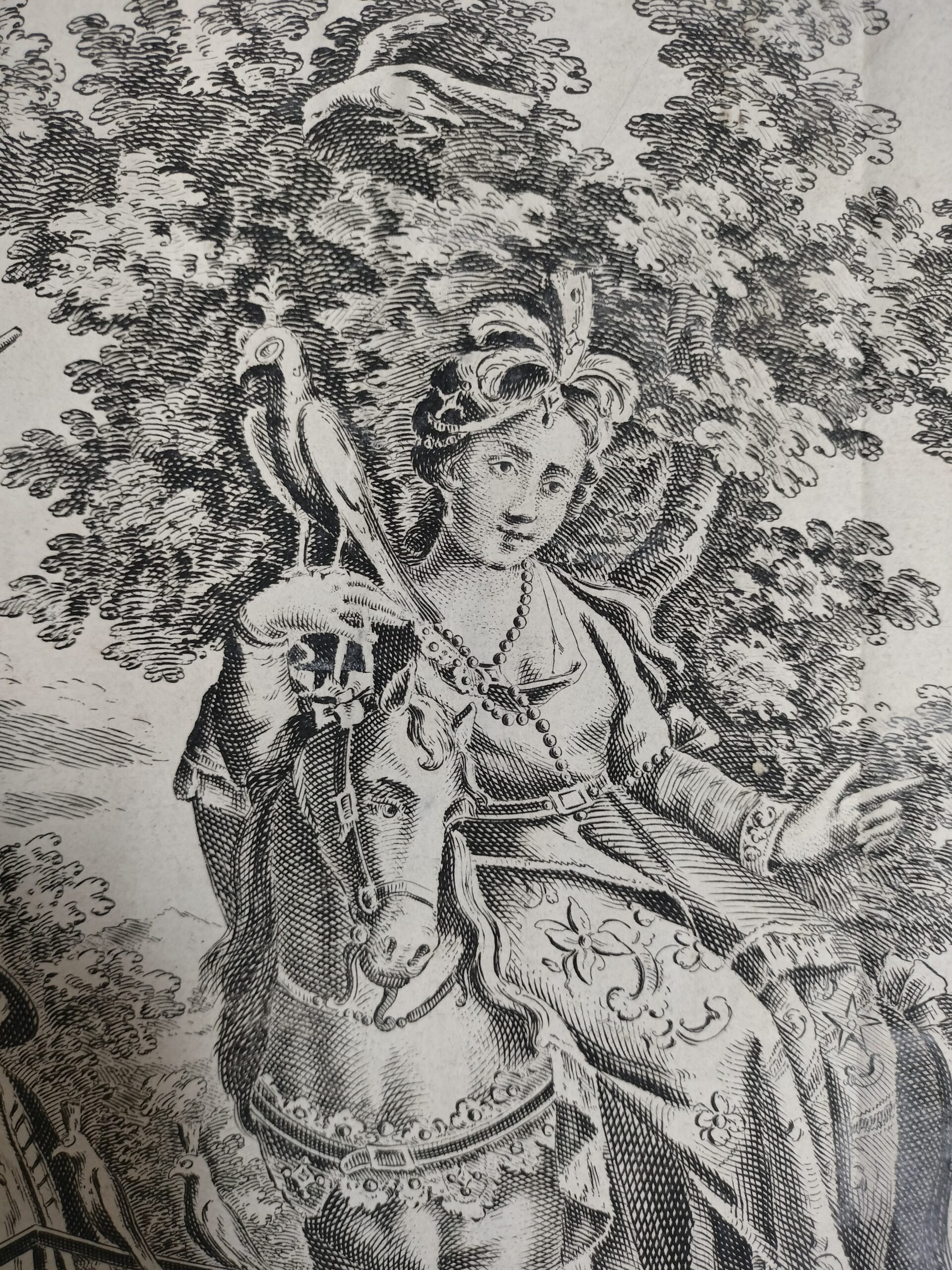 VER IMÁGENES PARA COMPROBAR EL ESTADO REAL. LAS IMÁGENES FORMAN PARTE DE LA DESCRIPCIÓN. LA CAZA DE AVES. VENATIO AVIUM GRABADO CALCOGRÁFICO AL BURIL. SOBRE PAPEL VERJURADO. SIN FIRMAR. ESTADO DE CONSERVACIÓN: PEQUEÑAS EROSIONES Y MANCHAS DE HUMEDAD. DESGASTES EN LOS BORDES. PLIEGUES. PRESENTA UNA MANCHA BLANQUECINA EN EL CABALLO.