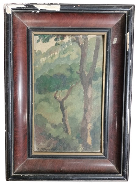 VER IMÁGENES PARA COMPROBAR EL ESTADO REAL. LAS IMÁGENES FORMAN PARTE DE LA DESCRIPCIÓN. ÁRBOLES EN EL TIBIDABO. FIRMADO MORALES. MARCO DE MADERA, CON DESPORTILLAMIENTOS. PRECISA RESTAURACIÓN. CARTÓN DESPRENDIDO DEL MARCO EN LA ESQUINA SUPERIOR DERECHA. ROTURAS Y PÉRDIDAS DE PINTURA. VER IMÁGENES. SIN VIDRIO PROTECTOR. SIN MADERA POSTERIOR. MEDIDAS: 21,5 X 30,5 PINTURA: 13 X 21,5