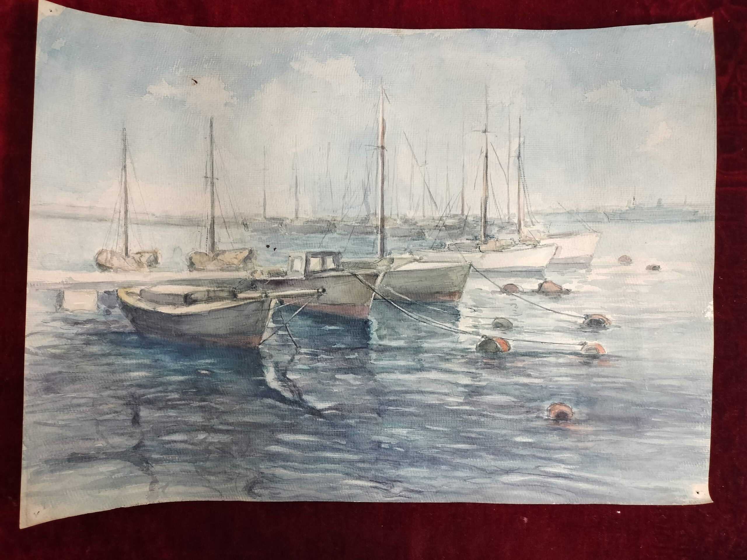 VER IMÁGENES PARA COMPROBAR EL ESTADO REAL. LAS IMÁGENES FORMAN PARTE DE LA DESCRIPCIÓN. EMBARCACIONES EN EL PUERTO. ACUARELA SOBRE PAPEL GRUESO. OBRA SIN ENMARCAR Y SIN FIRMAR. PRESENTA UNA PEQUEÑA MANCHA OSCURA EN EL CENTRO. ALGUNAS MANCHAS EN LOS BORDES. 64,5 X 47