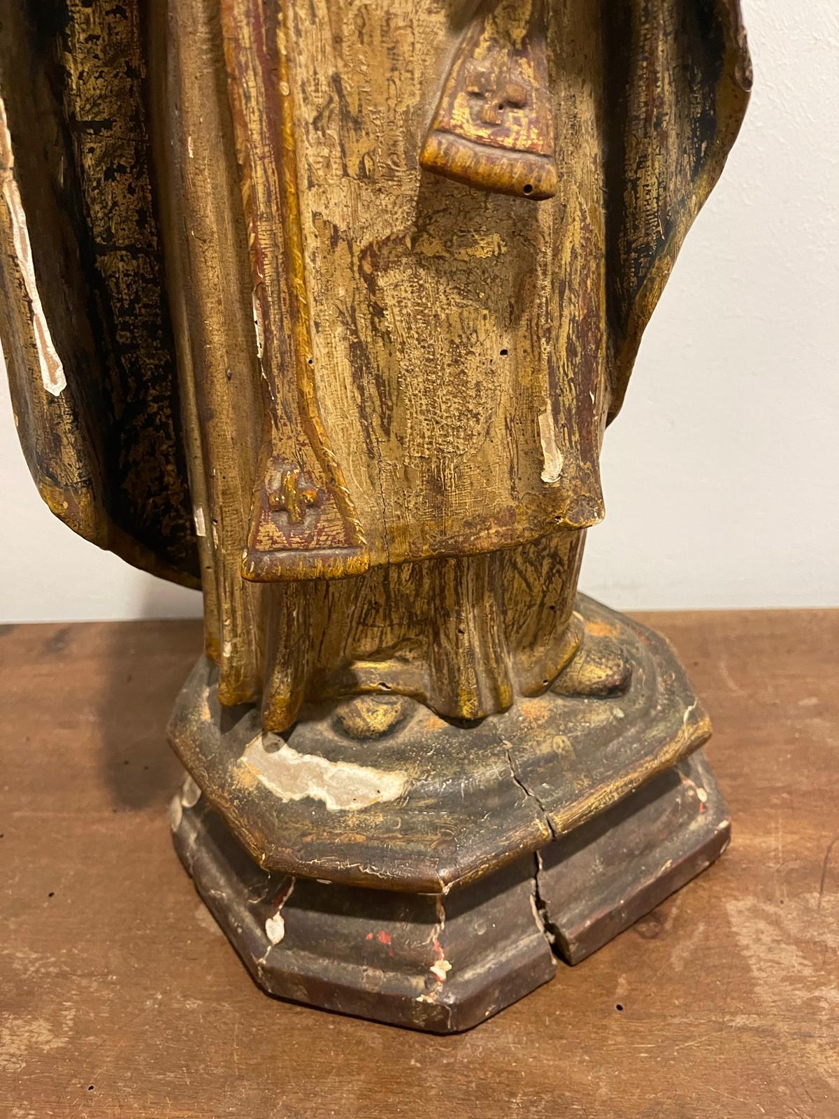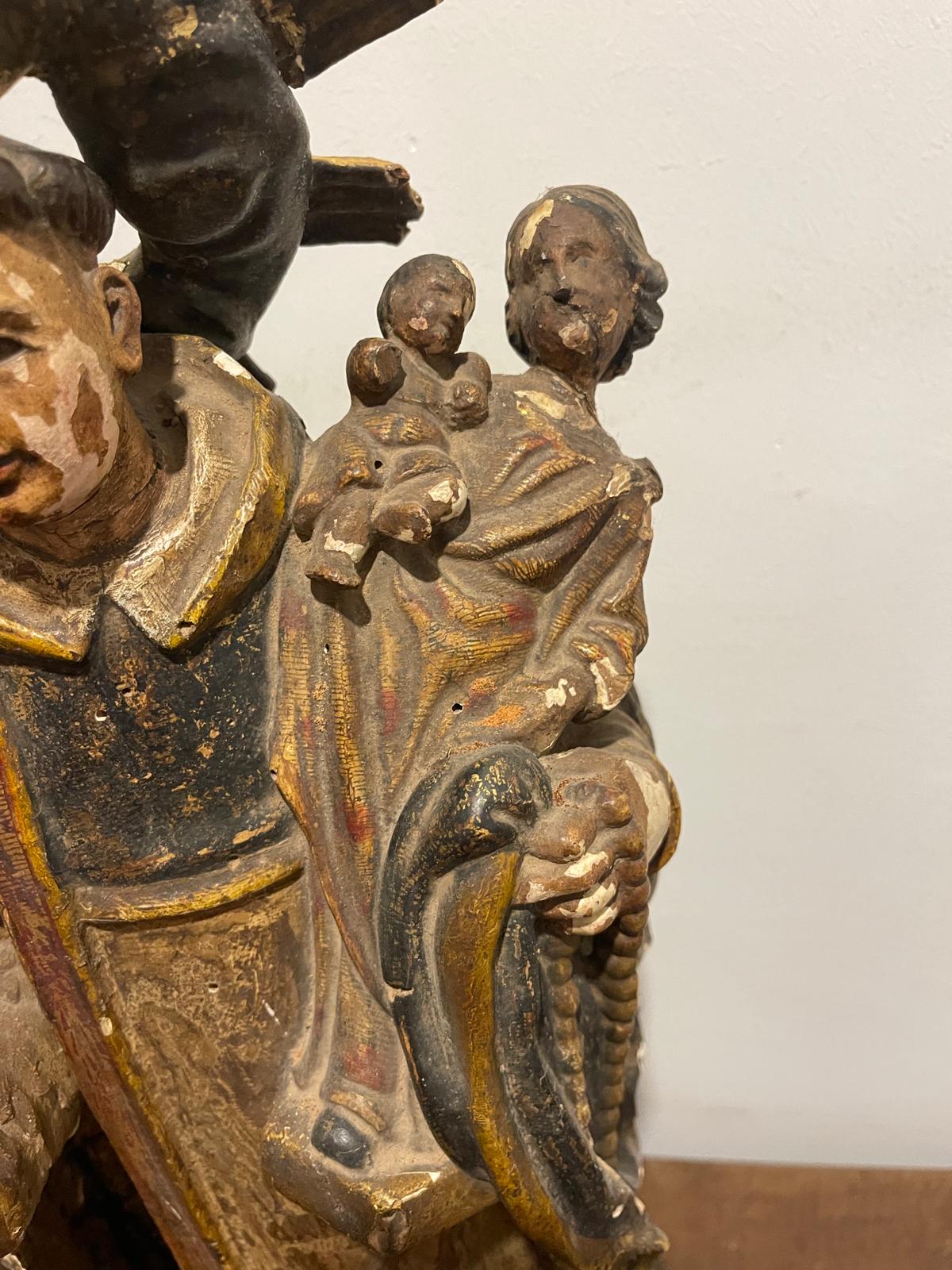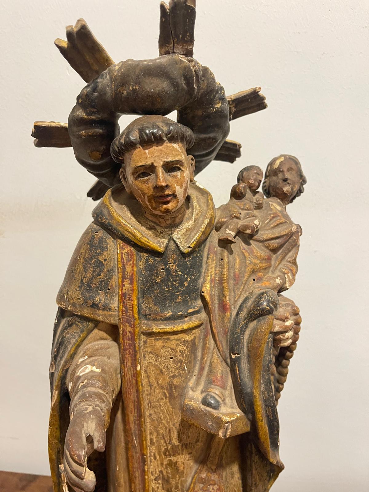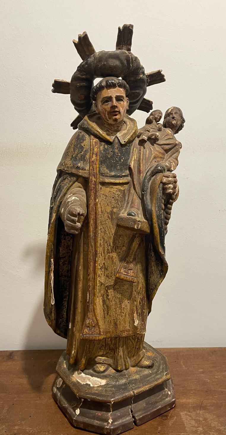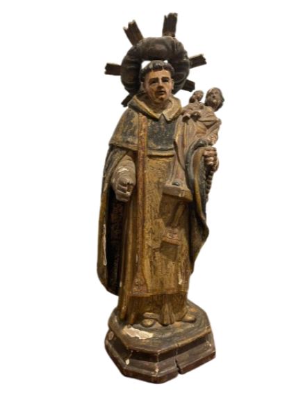 VER LAS IMÁGENES PARA COMPROBAR EL ESTADO REAL. LAS IMÁGENES FORMAN PARTE DE LA DESCRIPCIÓN. SAN JACINTO. TALLA POLICROMADA. SIGLO XVII. ANÓNIMO. SIN FIRMAR. LE FALTA LA CUSTODIA Y DOS DEDOS. PRESENTA EROSIONES Y PÉRDIDA DE PÁTINA. RESTOS DE CARCOMA. DESPORTILLAMIENTOS. VER IMÁGENES EN DETALLE. SOBRE BASE DE MADERA, CON ROTURAS. CORONA DE NUBES REMOVIBLE.