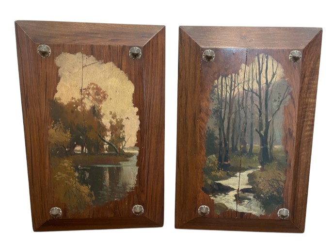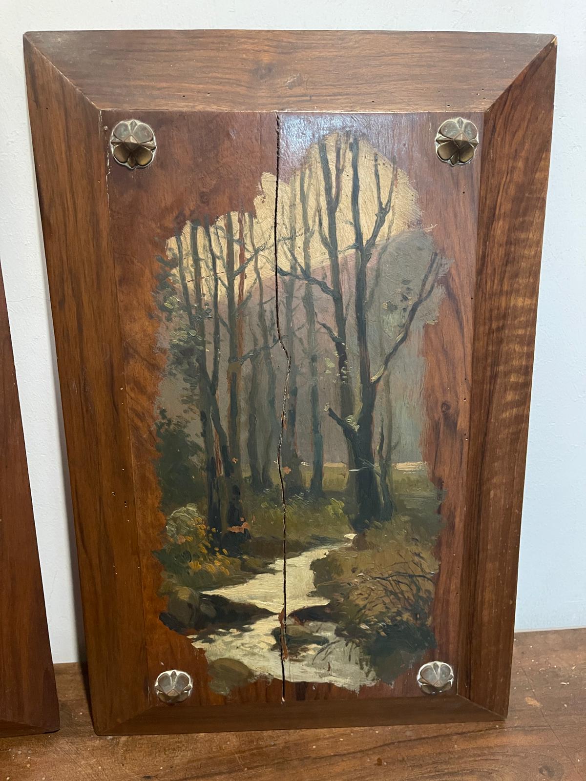 VER IMÁGENES PARA COMPROBAR EL ESTADO REAL. LAS IMÁGENES FORMAN PARTE DE LA DESCRIPCIÓN. PAREJA DE PAISAJES DE BOSQUE. ÓLEO SOBRE MADERA. ESCUELA CATALANA. SIGLO XIX. SIN FIRMAR. AMBOS PRESENTAN UNA ROTURA TRANSVERSAL DE ORIENTACIÓN VERTICAL. LIGERAS PÉRDIDAS DE PÁTINA. 52 X 34