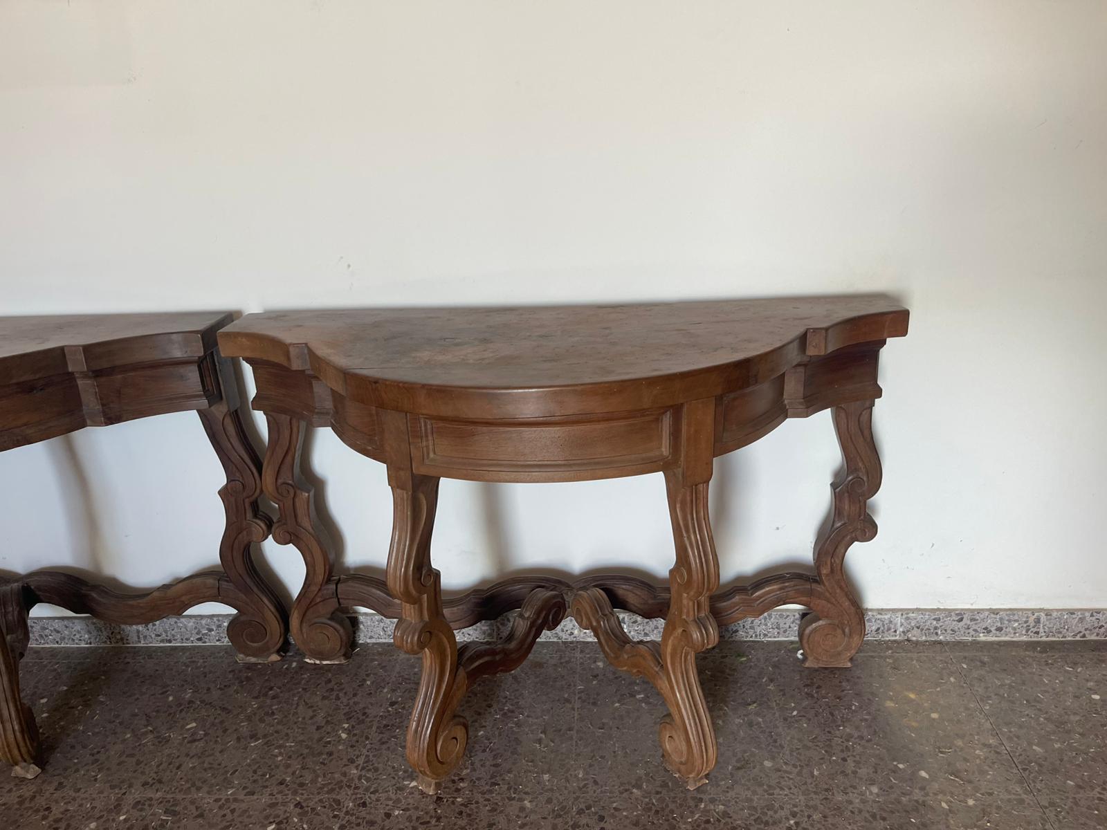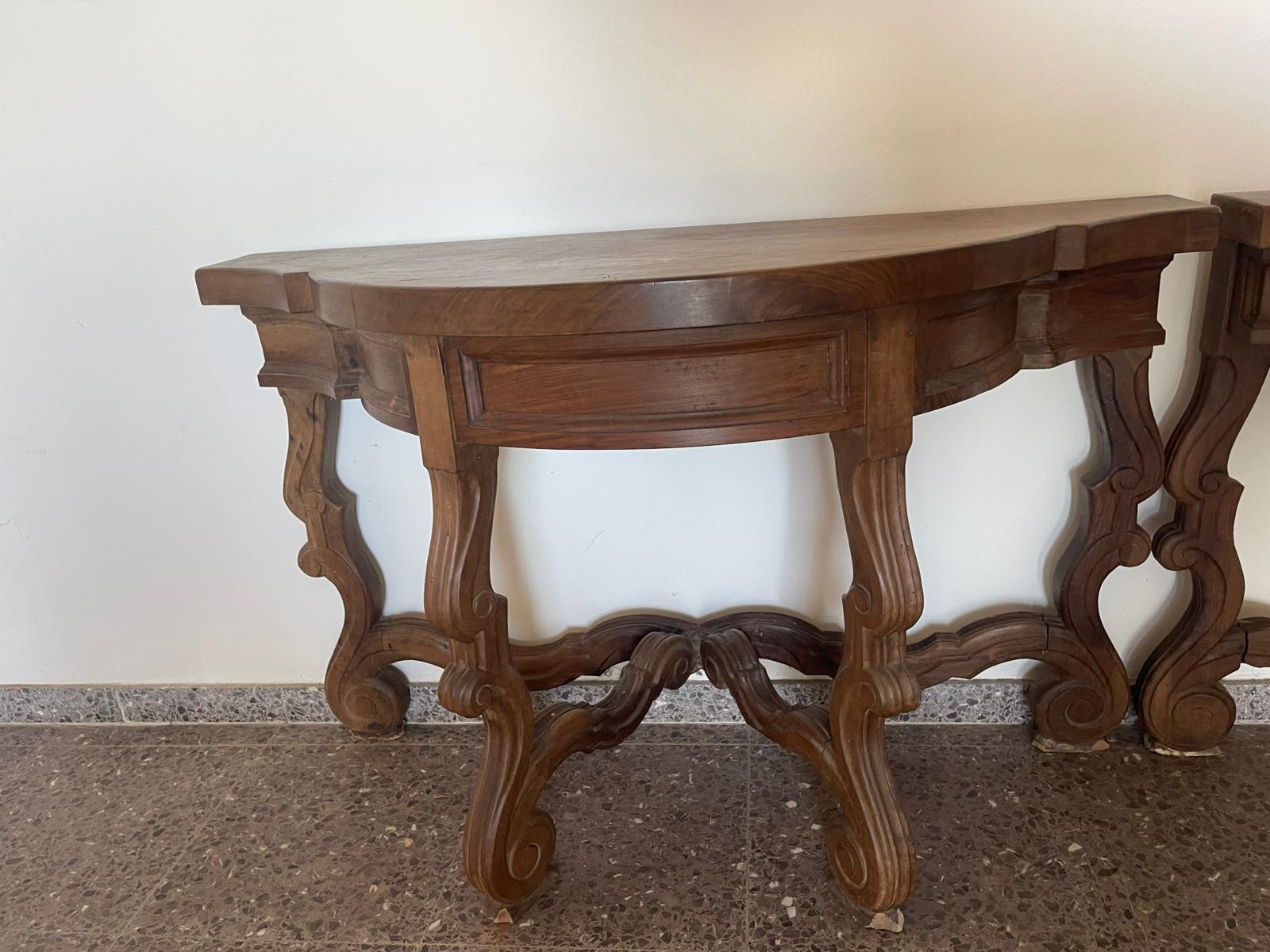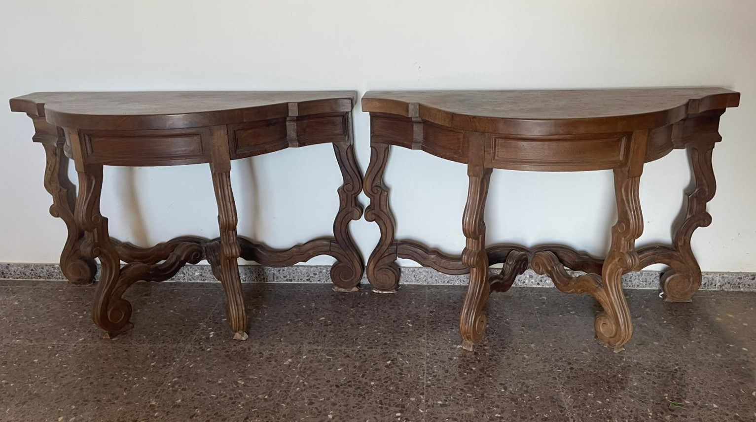 VER IMÁGENES PARA COMPROBAR EL ESTADO REAL. LAS IMÁGENES FORMAN PARTE DE LA DESCRIPCIÓN. EL PRECIO DE EXPEDICIÓN ES ORIENTATIVO. CONTACTE CON NOSOTROS PARA CALCULARLO SEGÚN SU CASO. PAREJA DE CONSOLAS O MEDIAS LUNAS. ESTILO BARROCO. MADERA DE NOGAL. CONTACTE CON NOSOTROS PARA CONOCER LAS MEDIDAS EXACTAS DE LAS PIEZAS. BUEN ESTADO GENERAL. ALGUNAS PATAS HAN SIDO RESTAURADAS. EROSIONES Y RASGUÑOS GENERALES DEBIDO AL USO.