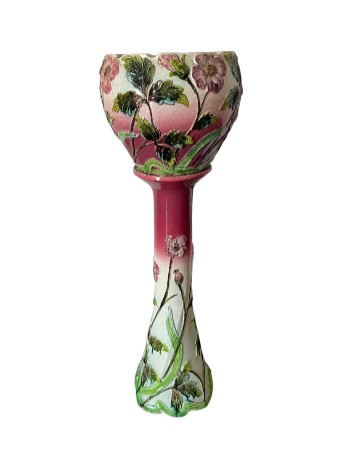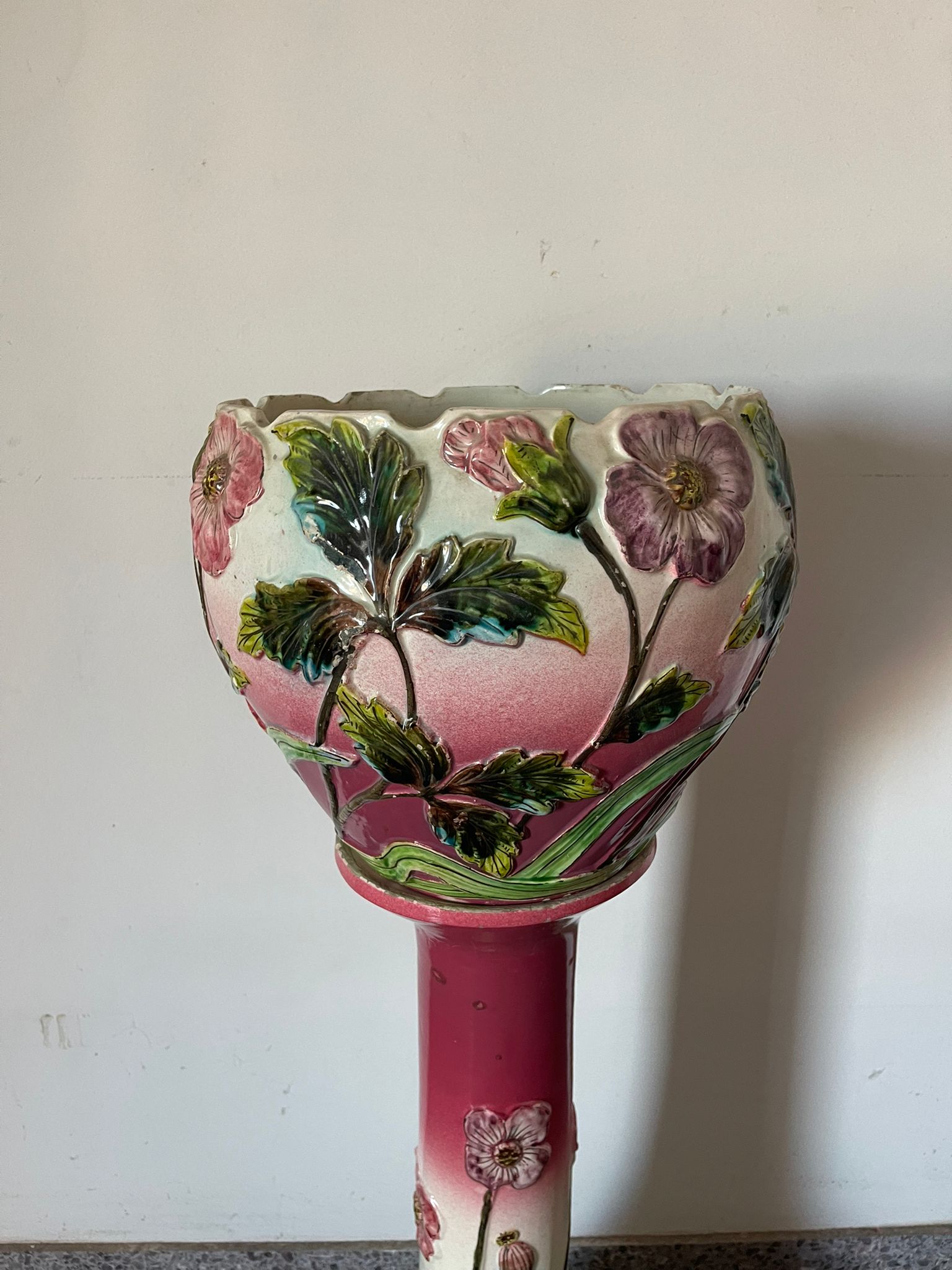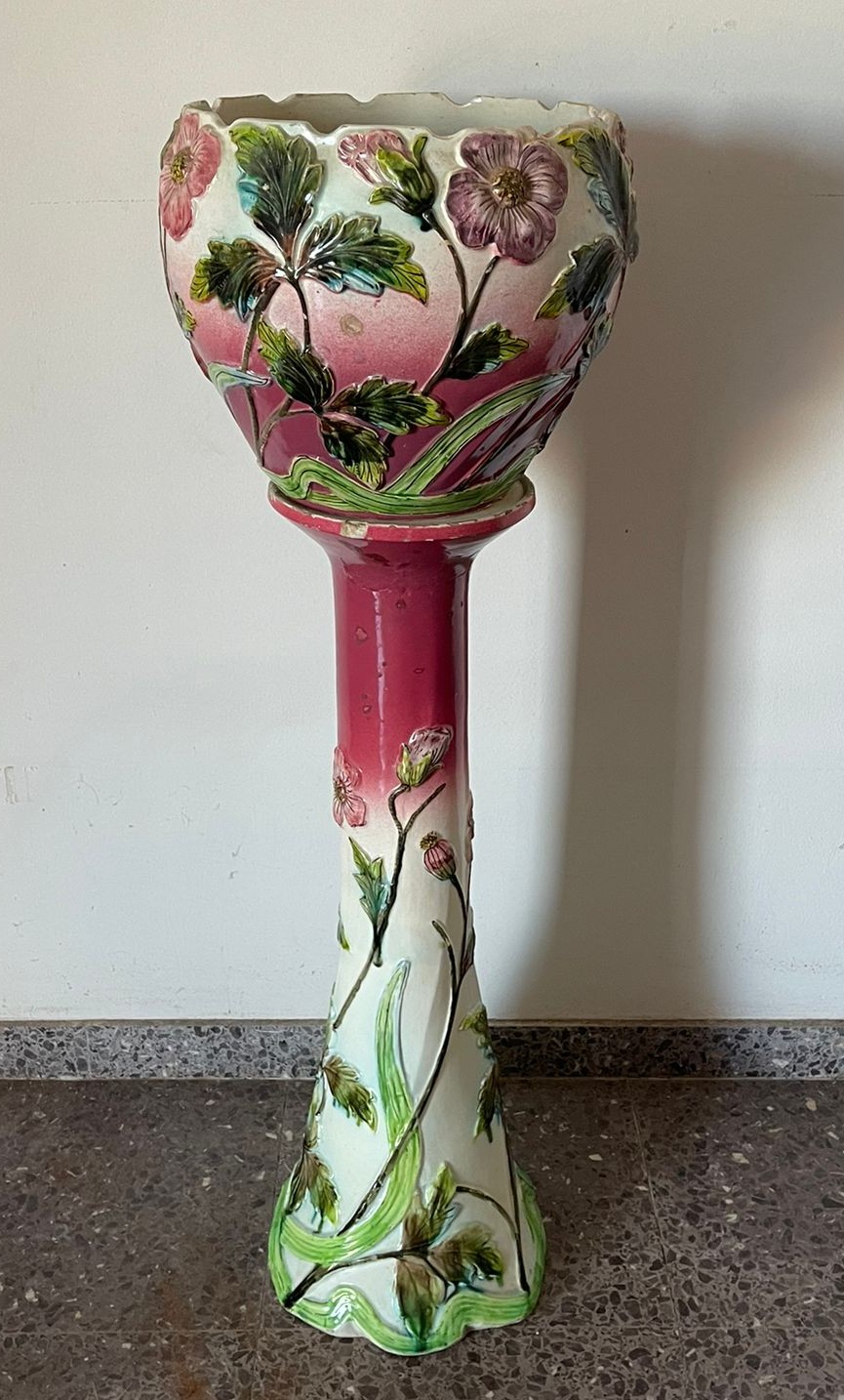 VER IMÁGENES PARA COMPROBAR EL ESTADO REAL. LAS IMÁGENES FORMAN PARTE DE LA DESCRIPCIÓN. CONTACTE CON NOSOTROS PARA CALCULAR EL PRECIO DE EXPEDICIÓN SEGÚN SU CASO. JARDINERA DE DOS CUERPOS. COPA Y FUSTE O COLUMNA. DECORADO CON MOTIVOS VEGETALES EN BAJORRELIEVE. CERÁMICA PINTADA Y ESMALTADA. SIN FIRMA NI MARCA DE AUTOR APARENTE. PRESENTA LIGERAS EROSIONES, ESPECIALMENTE EN LOS BORDES DE LA COPA Y LA PARTE SUPERIOR DEL FUSTE. ALGUNAS MANCHAS.