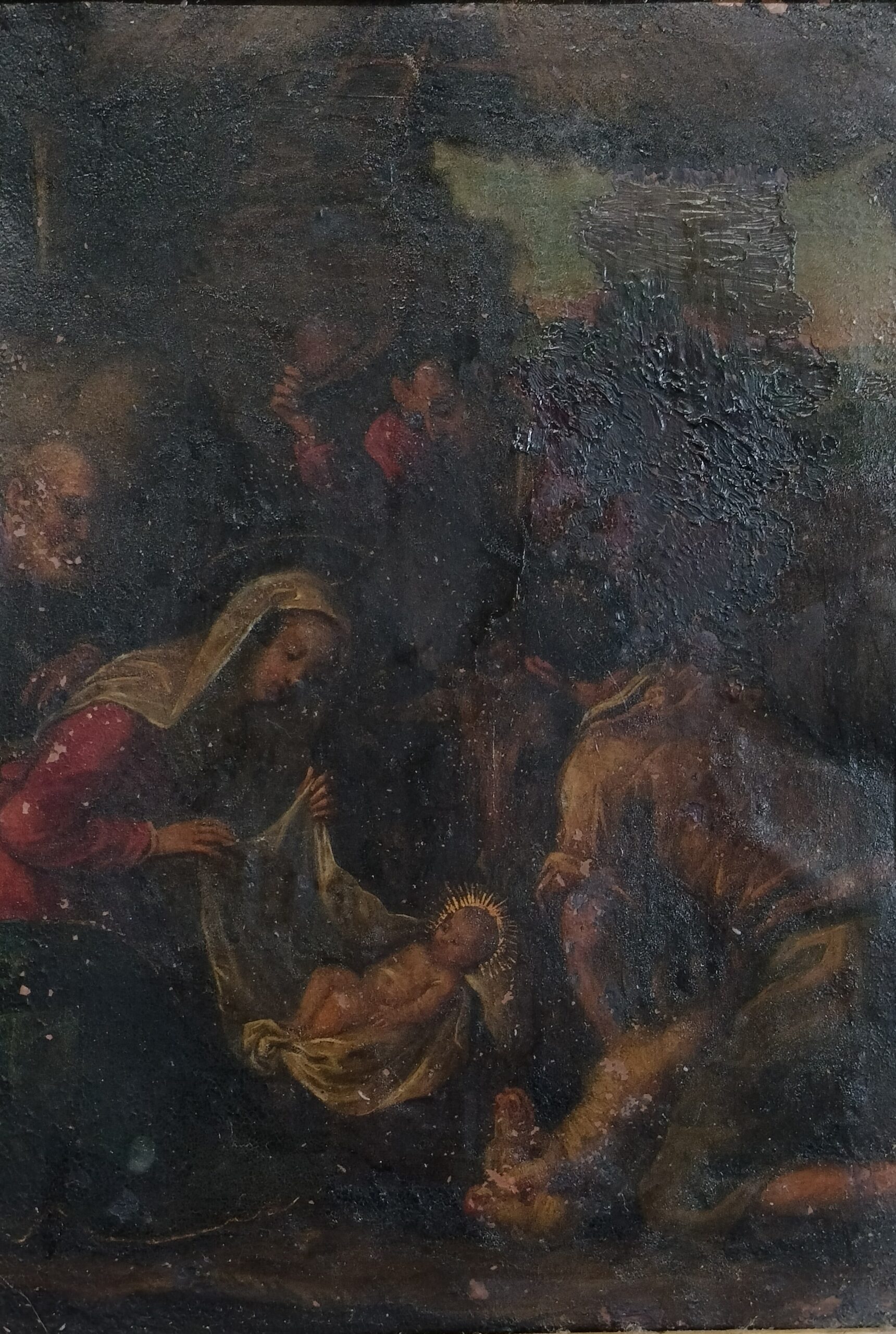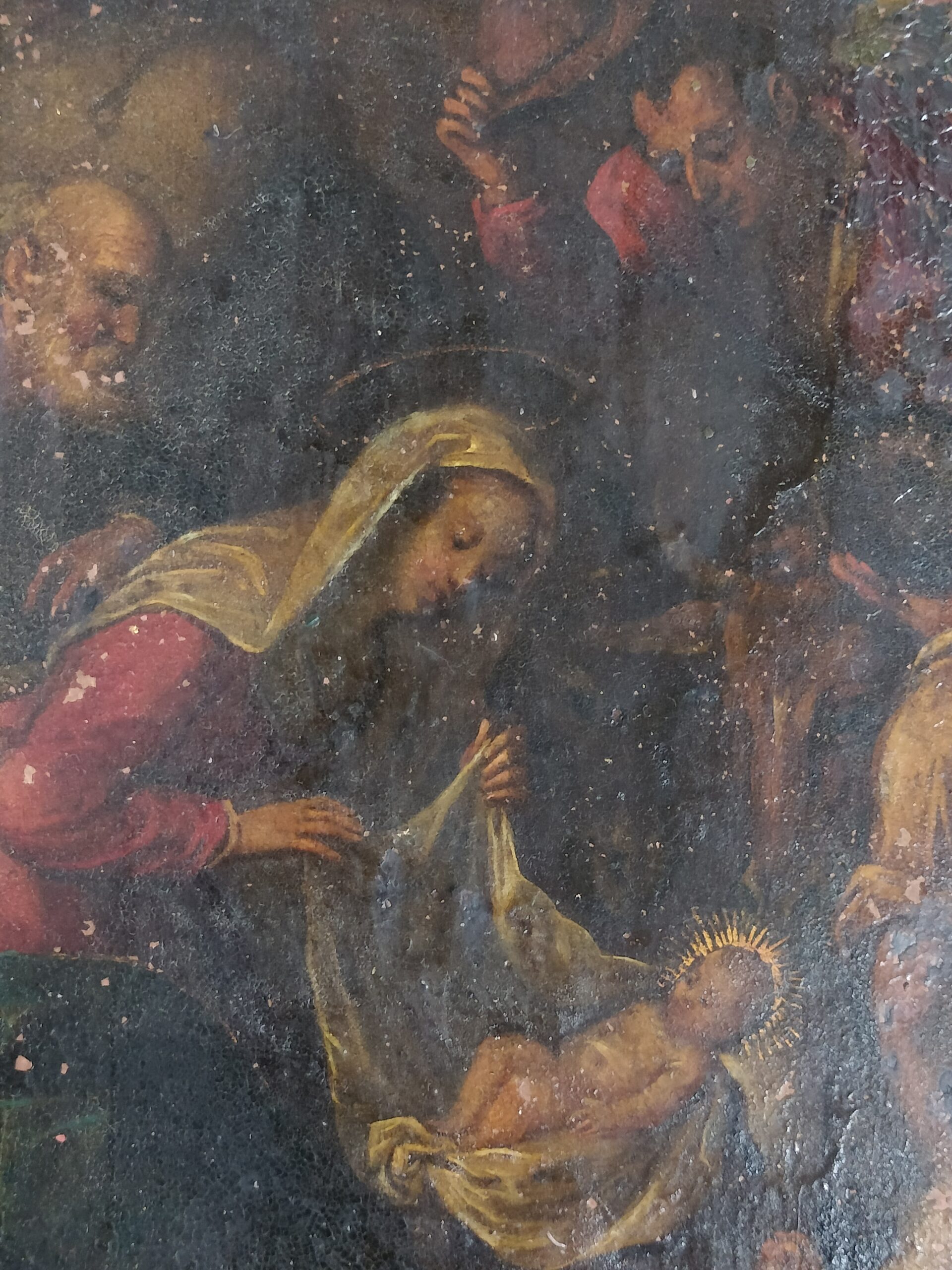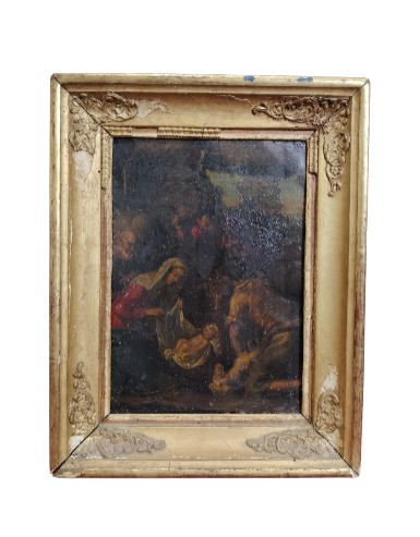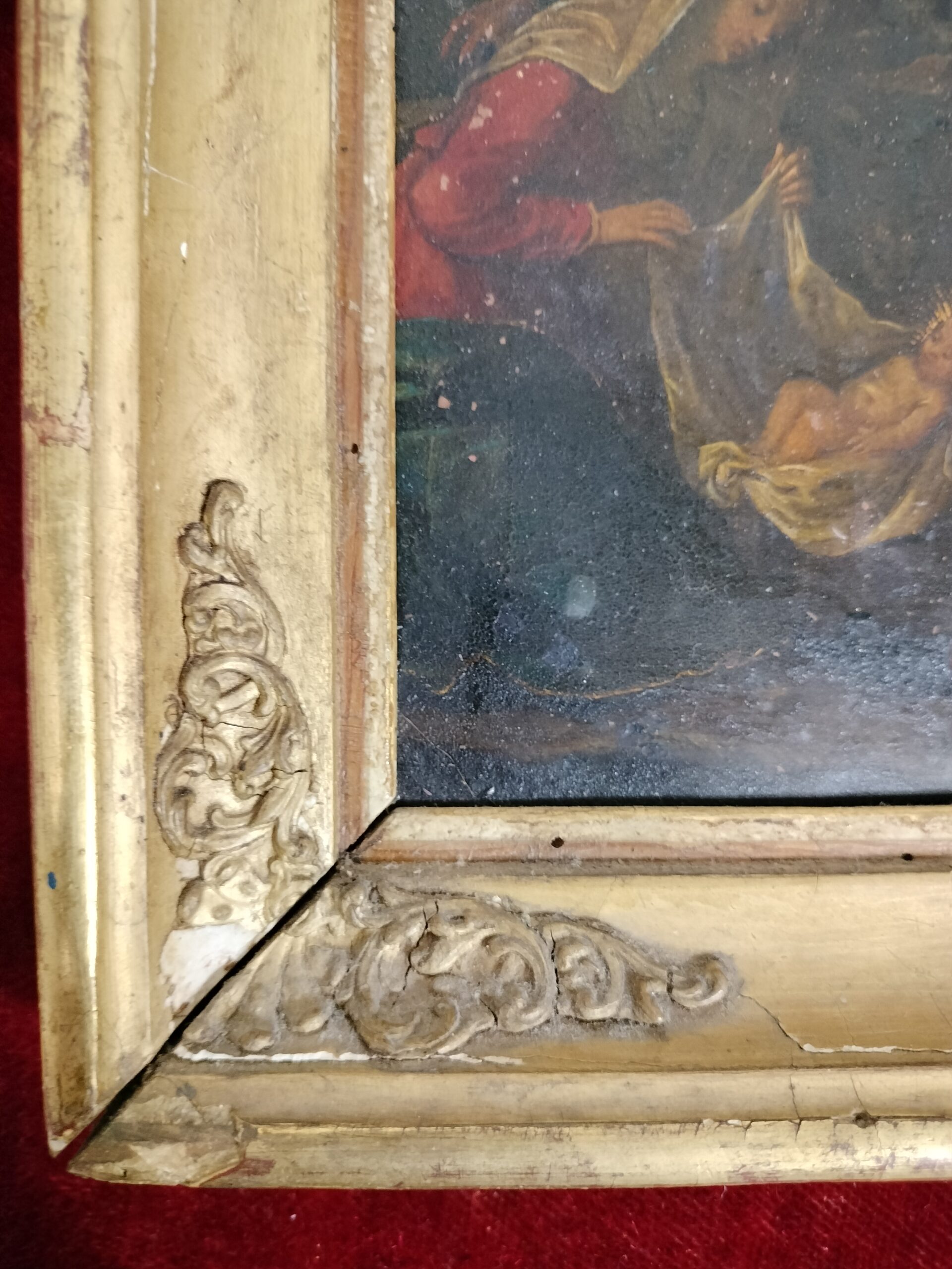 VER IMÁGENES PARA COMPROBAR EL ESTADO REAL.  LAS IMÁGENES FORMAN PARTE DE LA DESCRIPCIÓN.  NATIVIDAD DE JESÚS. ÓLEO SOBRE COBRE. ESPAÑA. XVIII-XIX.  MARCO EN MADERA DORADA. CON RESTOS DE CARCOMA Y DESPORTILLAMIENTOS.  SIN FIRMAR.  CON RESTAURACIONES POSTERIORES.  PRECISA RESTAURACIÓN. SE APRECIAN IMPORTANTES PÉRDIDAS DE PINTURA. EMPASTE IRREGULAR (O REPINTE POSTERIOR) EN LA DERECHA.  MEDIDAS APROX: CON MARCO: 27,5 X 21,5 SOLO PINTURA: 14 X 20