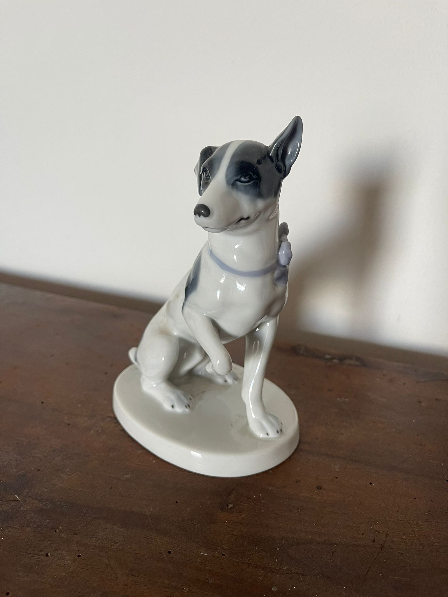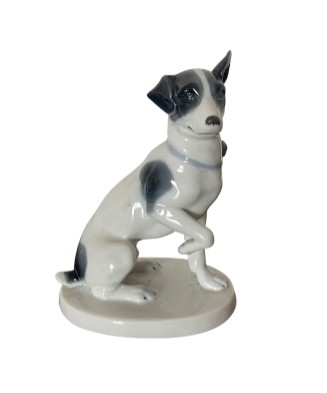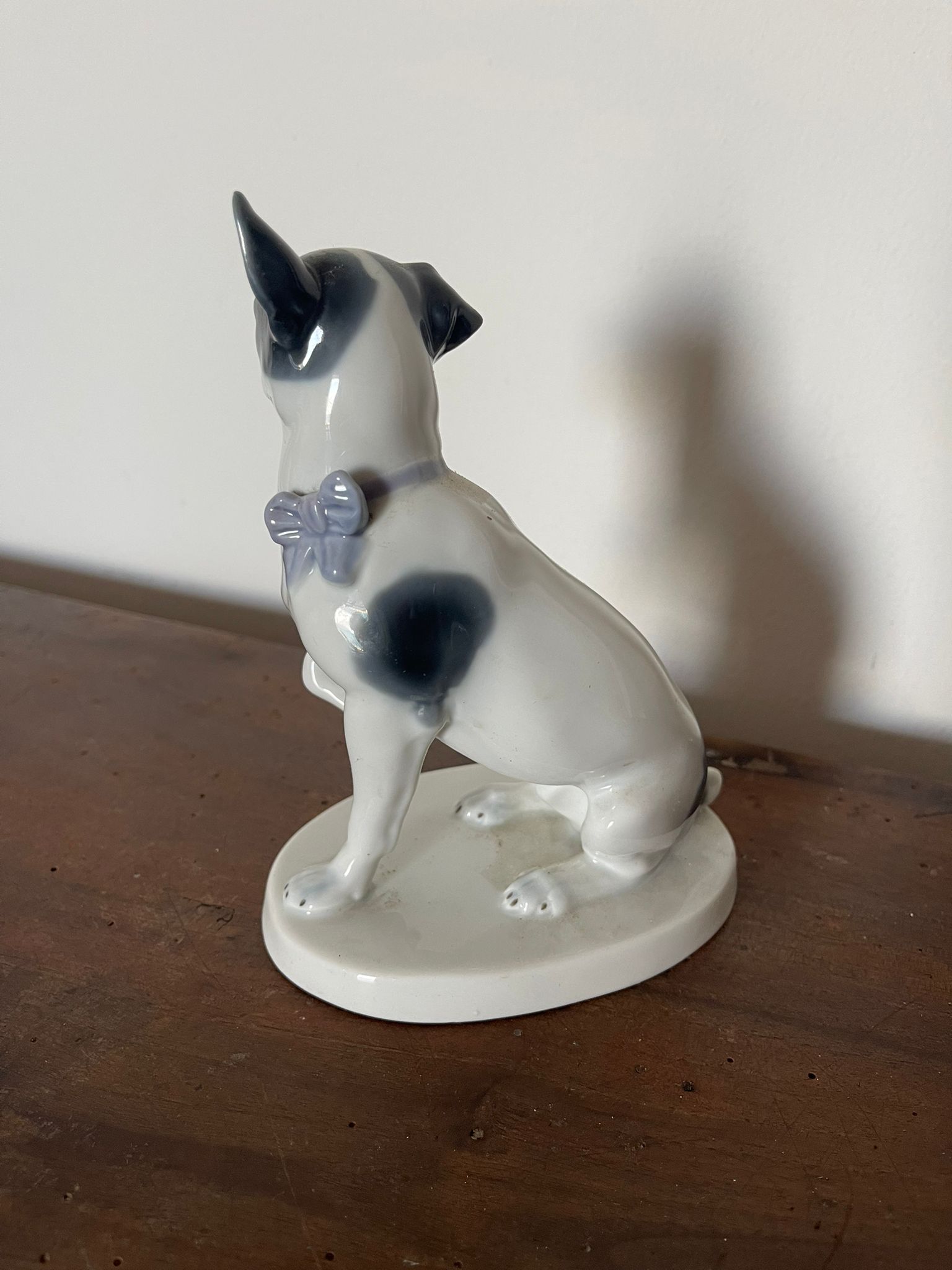 VER IMÁGENES PARA COMPROBAR EL ESTADO REAL. LAS IMÁGENES FORMAN PARTE DE LA DESCRIPCIÓN. PERRO CON LAZO. PORCELANA ALEMANA. MARCA DE AUTOR EN LA PARTE POSTERIOR. METZLER AND ORTLOFF. NÚM. 4475 BUEN ESTADO GENERAL.