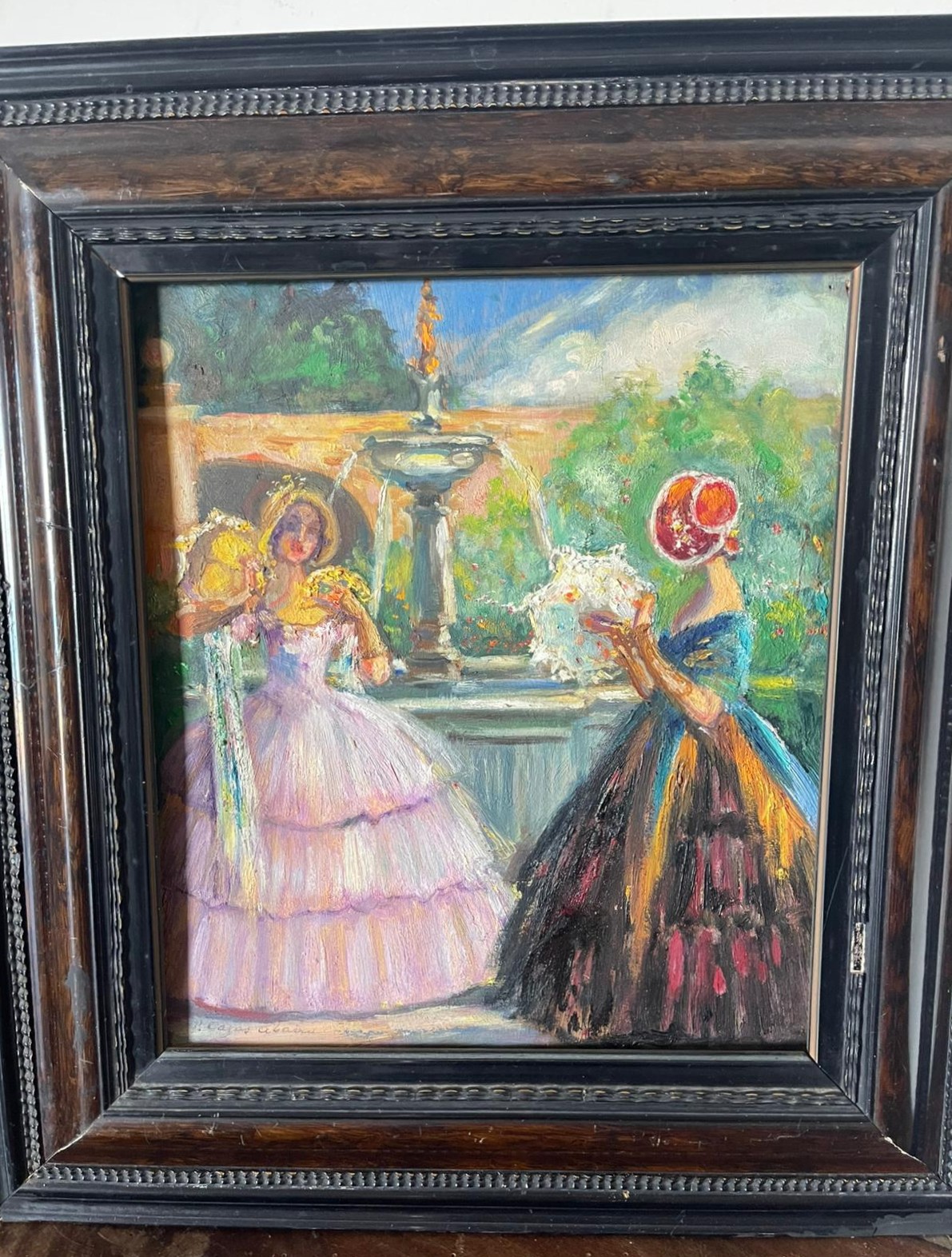 VER IMÁGENES PARA COMPROBAR EL ESTADO REAL. LAS IMÁGENES FORMAN PARTE DE LA DESCRIPCIÓN. DOS MUJERES EN EL JARDÍN. ÓLEO SOBRE TABLA. ESPAÑA. XIX-XX FIRMADO EN LA ESQUINA INFERIOR IZQUIERDA: P. CASAS ABARCA. NO DISPONEMOS DE CERTIFICADO DE AUTENTICIDAD. NO PODEMOS GARANTIZAR QUE SE TRATE DE UNA OBRA DE PERE CASAS ABARCA. MARCO DE MADERA, CON RASGUÑOS Y EROSIONES GENERALES. SIN VIDRIO PROTECTOR. TABLA DESPRENDIDA DEL MARCO EN UNO DE LOS LADOS. MEDIDAS APROX: MARCO: 49 X 45 PINTURA: 28 X 31 NOTA: Pintor, escultor y también dibujante de origen español. Inició su formación artística en la Escuela de La Lonja de Barcelona. A lo largo de su carrera desempeñó diversos cargos relevantes, entre ellos la dirección artística de la revista Mercurio, la presidencia de la Sociedad de Amigos de los Museos y del Círculo Artístico de Barcelona. Además, fue nombrado académico correspondiente por la Real Academia de Bellas Artes de San Fernando (Madrid) y por la de Santa Isabel de Hungría en Sevilla. Su labor y trayectoria fueron reconocidas con distintas distinciones, como la medalla de Alfonso X el Sabio y la medalla de oro de Ultramar. Participó con frecuencia en exposiciones y certámenes, enviando sus obras a numerosas convocatorias oficiales. En la Exposición Nacional de Bellas Artes de 1929 obtuvo una tercera medalla gracias al lienzo titulado Ingrato, y también tuvo una participación destacada en la muestra organizada por el Círculo de Bellas Artes de Madrid en 1932.