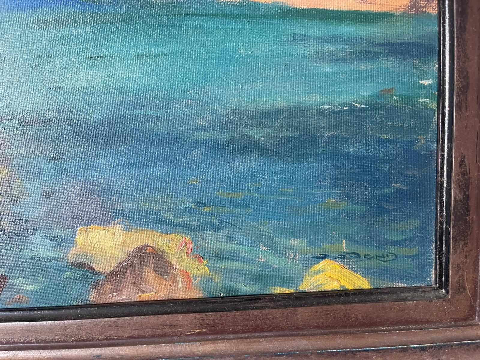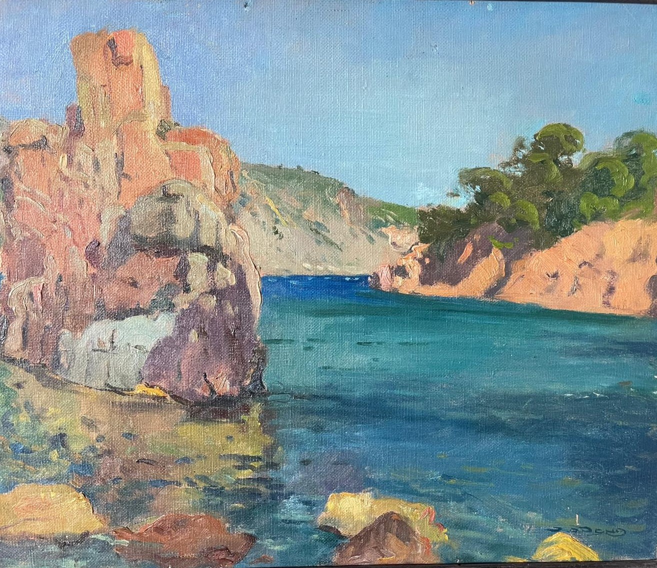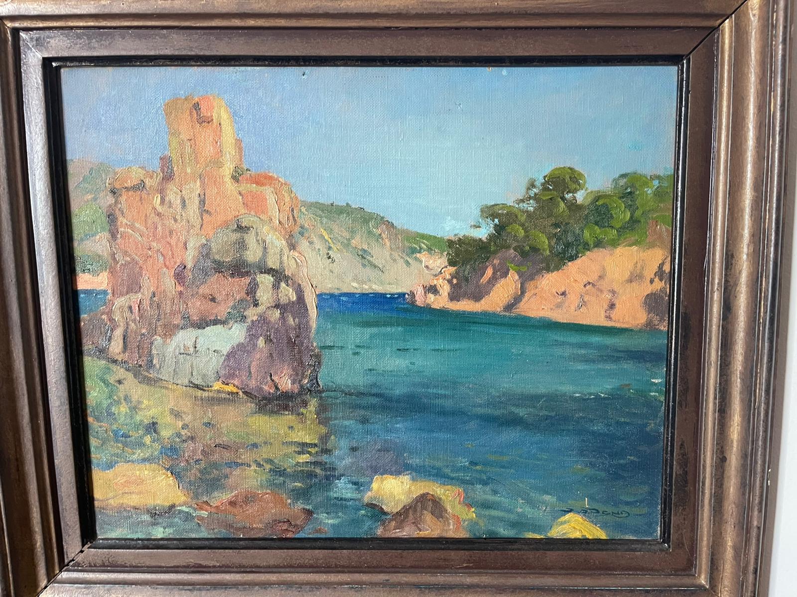 VER IMÁGENES PARA COMPROBAR EL ESTADO REAL. LAS IMÁGENES FORMAN PARTE DE LA DESCRIPCIÓN. ISIDRO ODENA. PAISAJE COSTERO O ‘AIGUA BLAVA’. ESPAÑA. XX FIRMADO EN LA ESQUINA INFERIOR DERECHA. DESGASTES EN LA PARTE SUPERIOR DEL LIENZO. PEQUEÑAS EROSIONES. MARCO DE MADERA, CON RASGUÑOS GENERALES. MEDIDAS: MARCO: 52 X 44,5 SOLO PINTURA: 40,5 X 33
