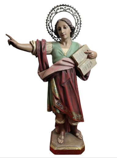 VER IMÁGENES PARA COMPROBAR EL ESTADO REAL. LAS IMÁGENES FORMAN PARTE DE LA DESCRIPCIÓN. SAN PANCRACIO. ESTUCO POLICROMADO. ESPAÑA. XIX-XX. CORONA EN METAL Y PINTADA CON PUNTOS BLANCOS. ESTILO OLOT. PEQUEÑAS QUEBRADURAS. LIGERAS PÉRDIDAS DE PINTURA. SIN FIRMA NI MARCA.