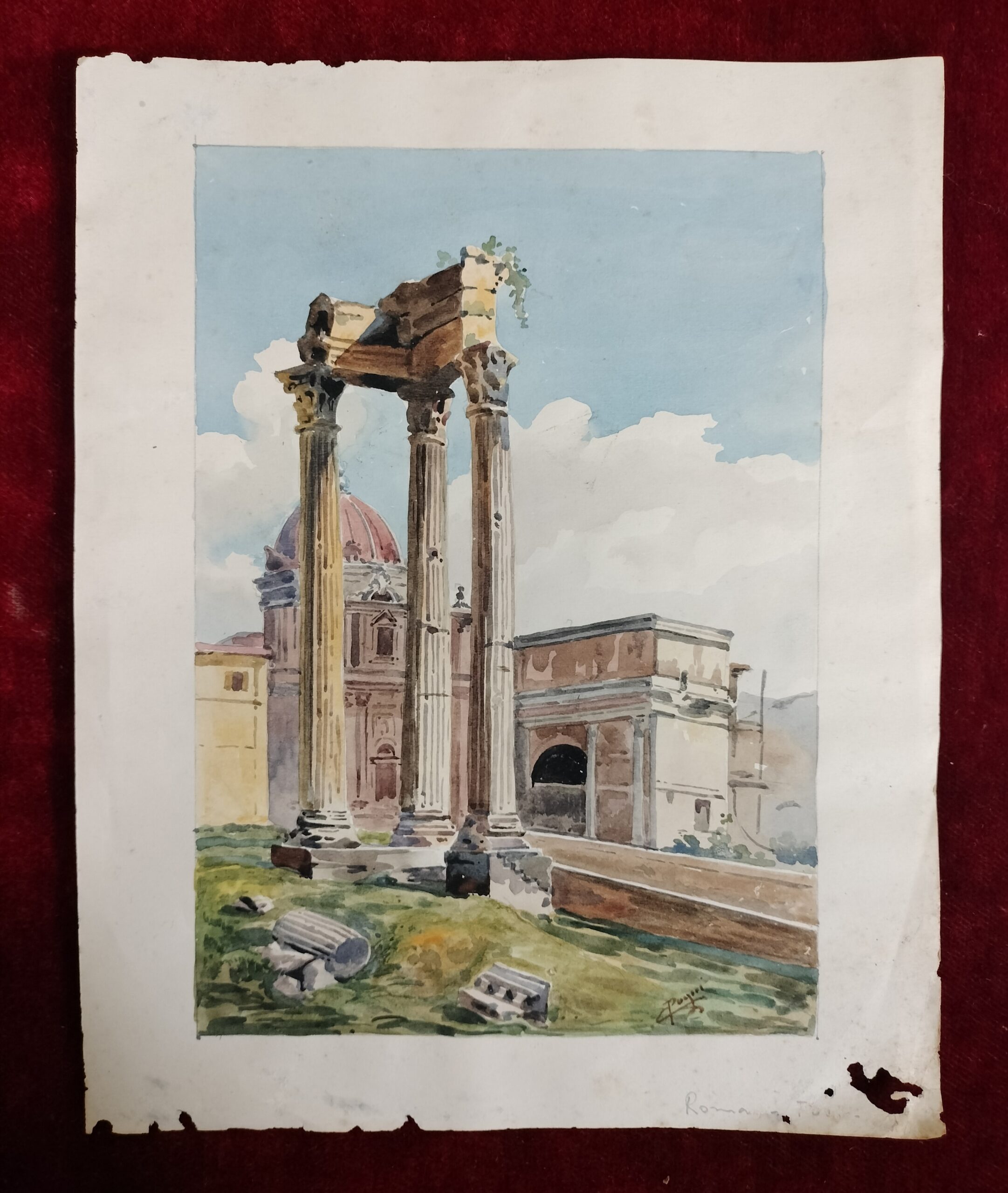 ACUARELAS DEL FORO ROMANO. TEMPLO VESPASIANO Y FORO ROMANO. ITALIA(?). XIX-XX